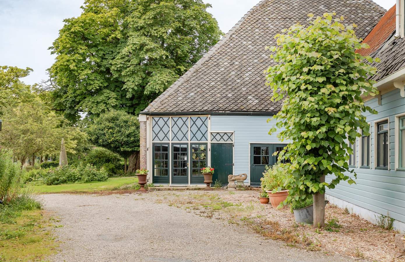 Naast de boerderij zijn de berging, kapschuur en het bijgebouw gelegen. De kapschuur is in 2000 gebouwd, biedt plaats aan twee auto’s en heeft een zolder met veel bergruimte. Het bijgebouw is getransformeerd tot een sfeervol en multifunctioneel gastenverblijf met alles erop en eraan. Goed te gebruiken als B&B, kantoor of (mantel-)zorgwoning. Aan de achter- en zijkant van het perceel zijn er eindeloze vergezichten over het typisch Noord-Hollandse landschap.