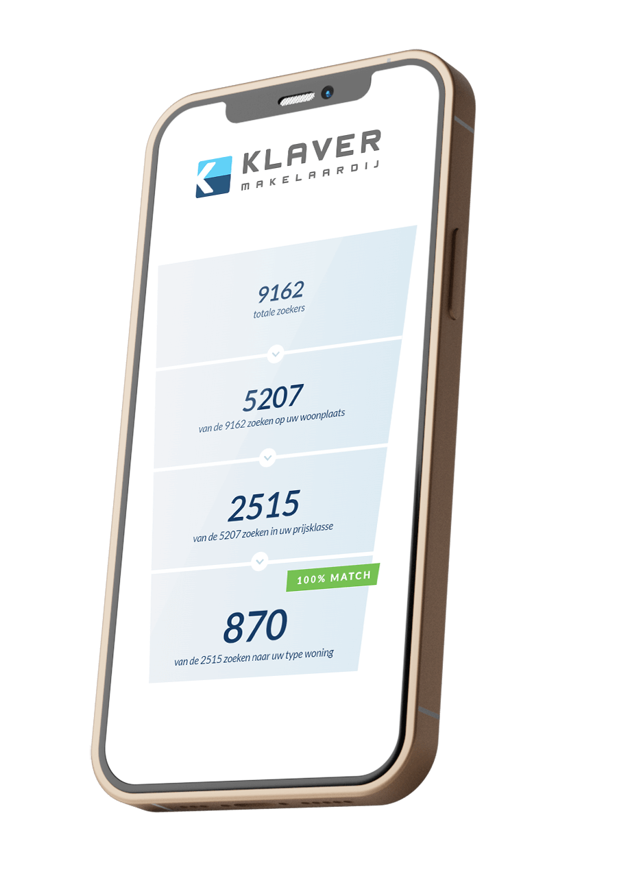 Met het verkopen van uw woning matcht ons systeem de kenmerken van uw woning aan de woonwensen van de Klaver profielen. Hierdoor zijn we in staat om de perfecte match te vinden voor uw woning.