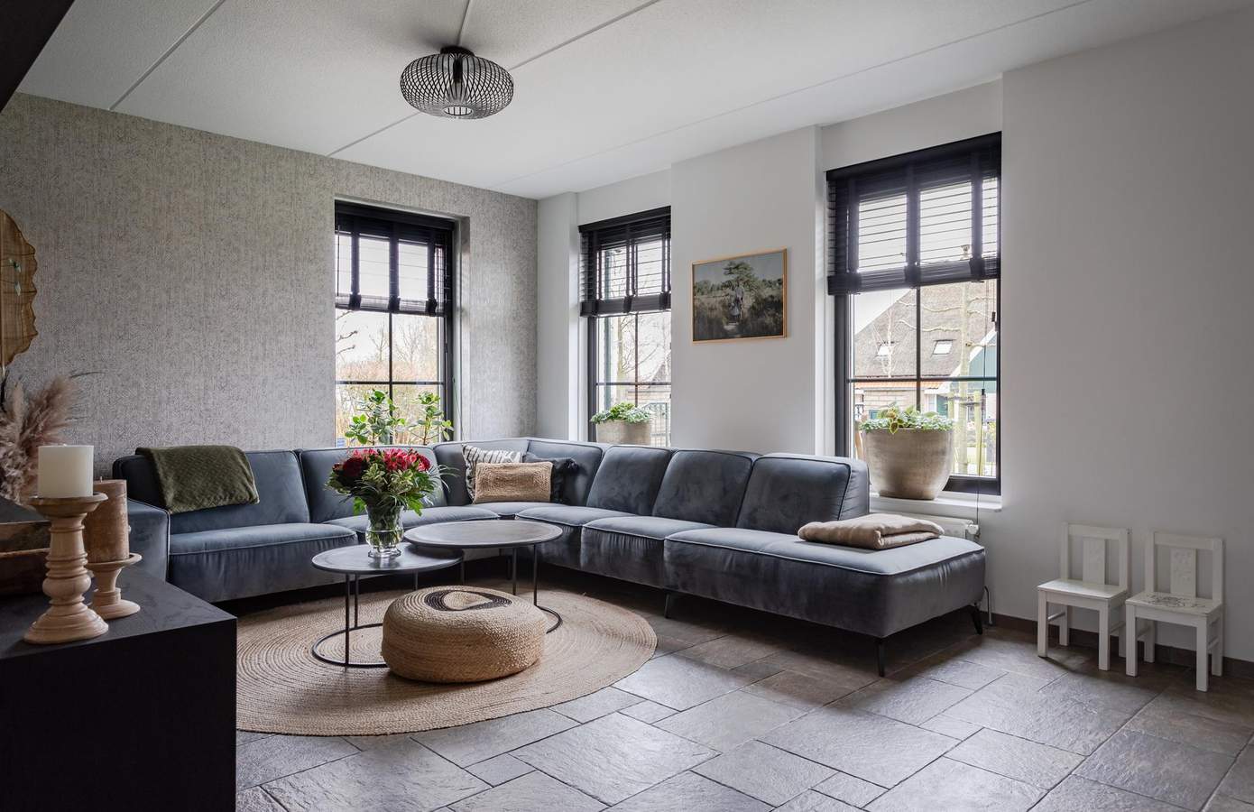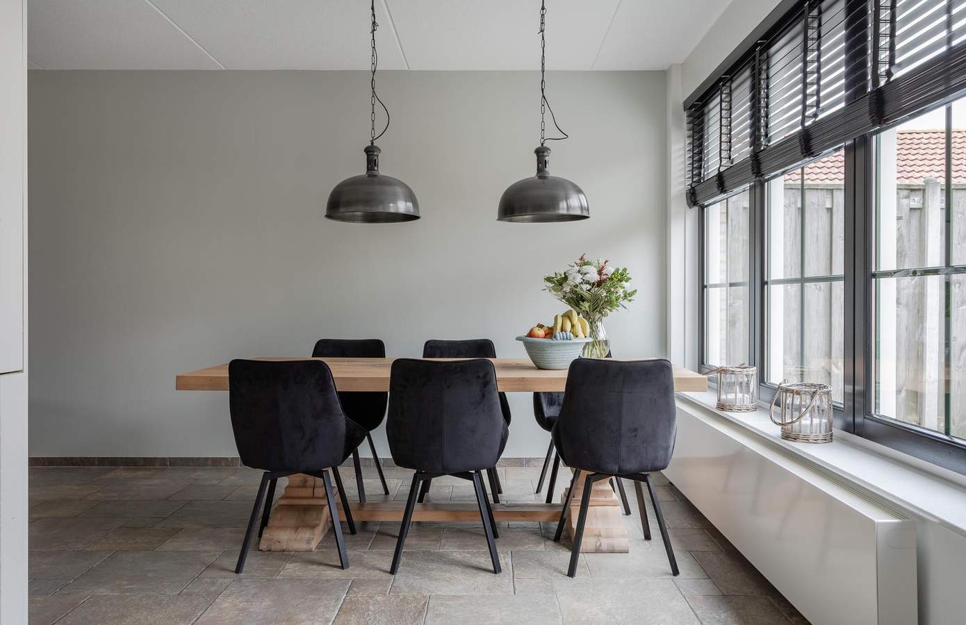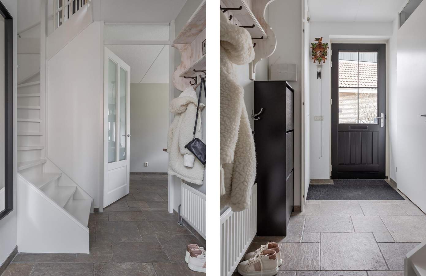 Via de zij-entree betreedt u de ruime hal, waar een separaat toilet en de trap naar de bovenverdieping te vinden zijn. De royale L-vormige woonkamer, gelegen aan de straatzijde, biedt dankzij de vele ramen een wijds uitzicht over de wijk. Het overvloedige daglicht zorgt ervoor dat deze ruimte warm en uitnodigend aanvoelt. Daarnaast is er een praktische inbouwkast, ideaal voor het opbergen van bijvoorbeeld speelgoed. Van boven tot beneden is de woning netjes en zorgvuldig afgewerkt.