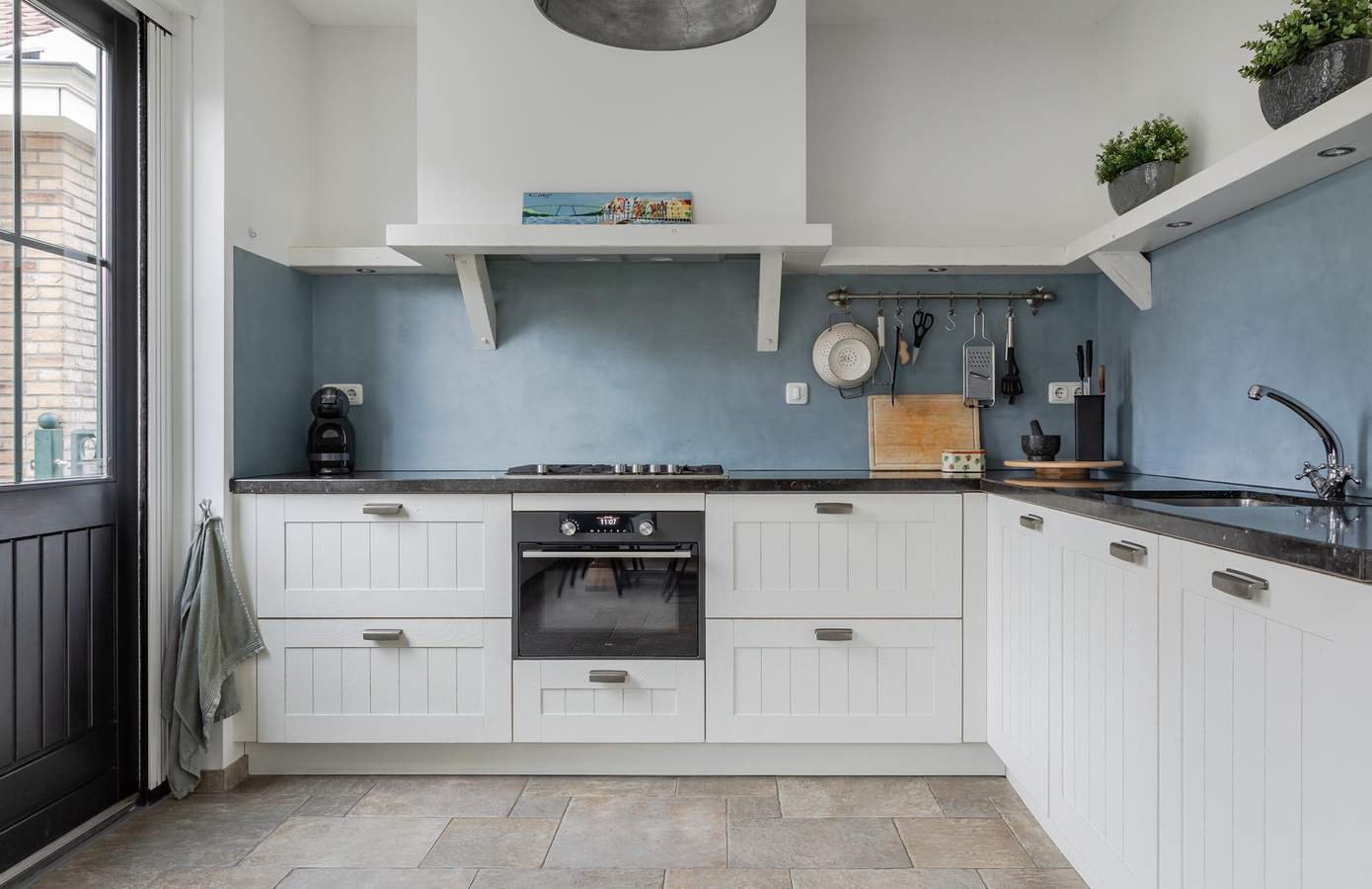 De woonkeuken is ruim opgezet en beschikt over een 5-pits gasfornuis, een vaatwasmachine en een combi-oven. Er is volop ruimte voor een grote eettafel, van waaruit u uitkijkt op de achtertuin. Vanuit de keuken leidt een achterdeur direct naar de tuin, wat zorgt voor een fijne verbinding tussen binnen en buiten. Op de eerste verdieping bevinden zich drie slaapkamers, waaronder een ruime master bedroom aan de voorzijde, voorzien van een grote kastenwand. Op de overloop is een praktische inbouwkast geplaatst, die extra opbergruimte biedt. Alle slaapkamers zijn uitgerust met rolluiken, wat zorgt voor optimale verduistering en bescherming tegen zomerse hitte. De moderne badkamer is van alle gemakken voorzien en beschikt over een ruime inloopdouche, een wastafel, een toilet en vloerverwarming voor extra comfort.