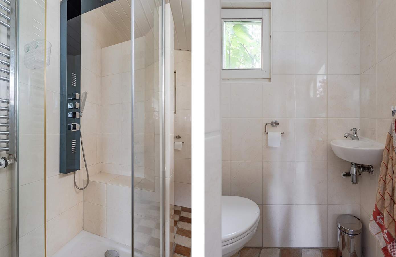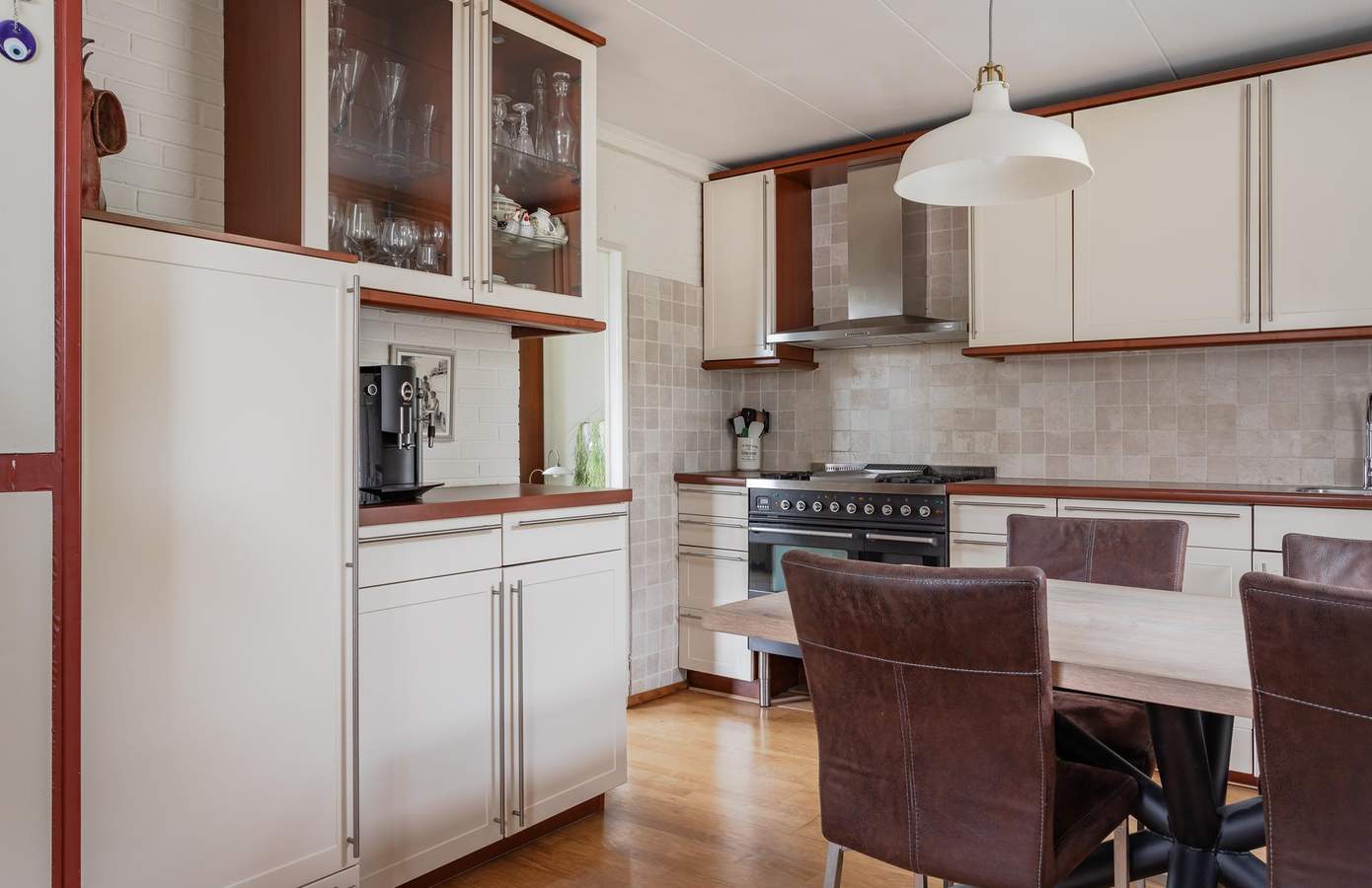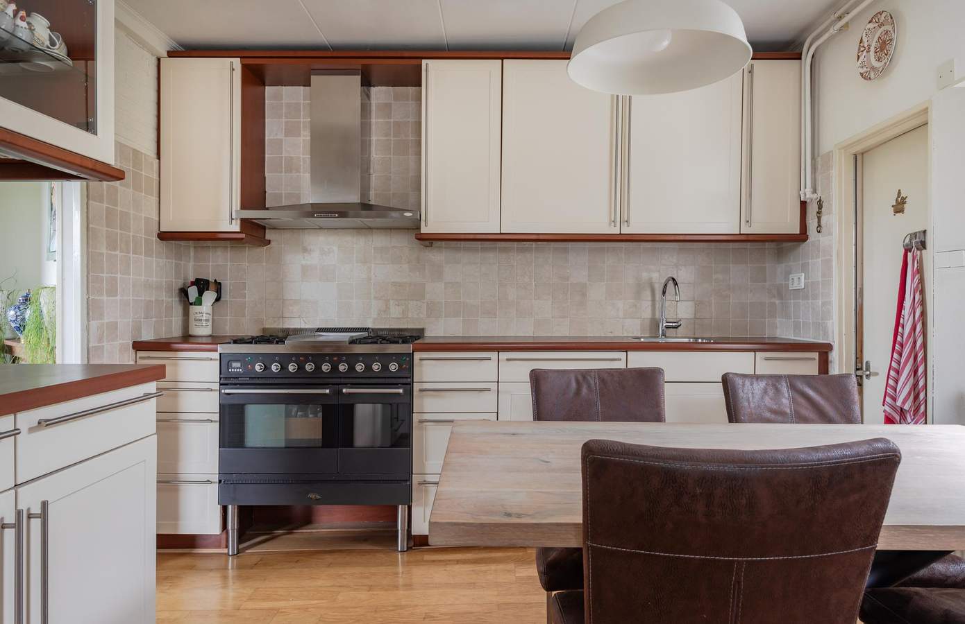 Vanaf de oprit loopt u om de woning heen en betreedt u het huis via de glazen uitbouw aan de achterzijde. Vanuit de entree komt u direct in de woonkeuken, waar ook de trap naar de verdieping zich bevindt. De keuken is voorzien van apparatuur, zoals een Boretti 5-pits gasfornuis, vaatwasser en koelkast. Vanuit de keuken loopt u door naar de woonkamer, die dankzij de grote raampartij veel natuurlijk licht biedt. De gezellige gaskachel zorgt voor extra warmte en sfeer. Terug in de keuken vindt u de toegang tot de compacte badkamer, uitgerust met een douche, toilet en aansluiting voor de wasmachine. Op de verdieping is er een ruime overloop, ideaal als werkplek, en beide slaapkamers beschikken over een eigen wastafel. Vanaf de overloop is er toegang tot de vliering, perfect voor extra opbergruimte.