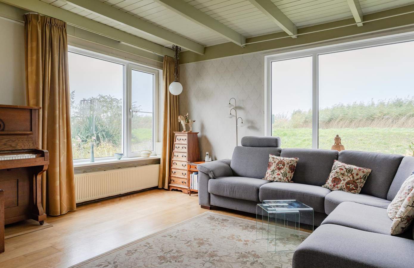 De achtertuin ligt op het zuidwesten, waardoor u hier de hele dag van de zon kunt genieten. Op het aangelegde terras heeft de huidige eigenaar een houten windscherm geplaatst, zodat u heerlijk beschut zit tegen de wind. De gemetselde muur aan de achterzijde van de tuin vormt de erfgrens en zal nog verder worden gebouwd om de afscheiding duidelijker te maken. De betonplaat aan de zijkant van de woning biedt een stevige basis voor het plaatsen van bijvoorbeeld een schuur. Aan de overkant van de woning, bij het water, staat tussen het riet een kleine aanlegsteiger. Hier kunt u bijvoorbeeld met een bootje varen richting het kanaal Alkmaar-Kolhorn.