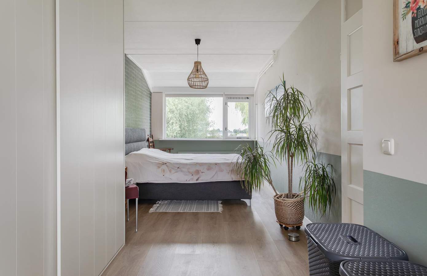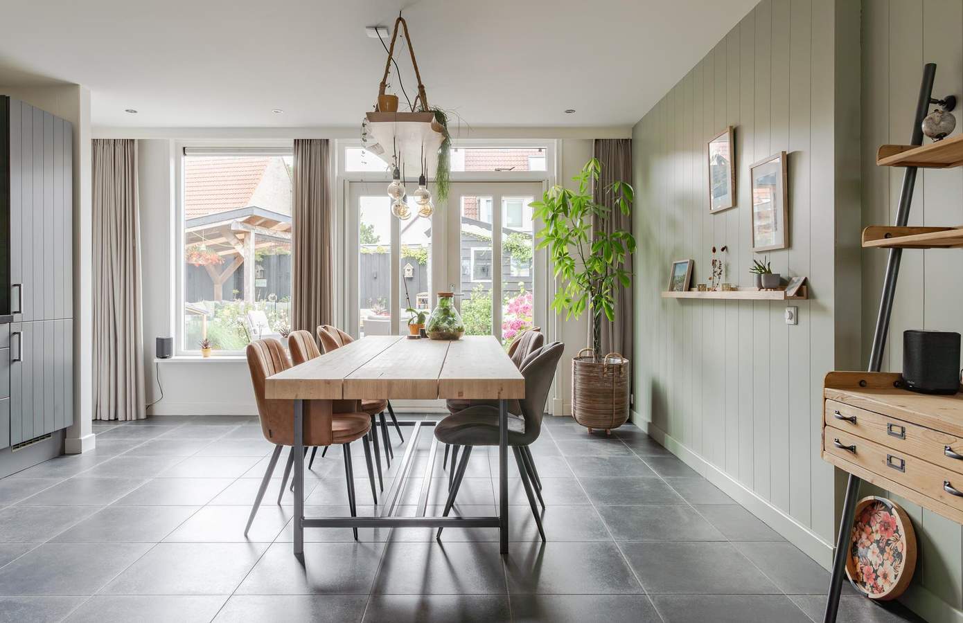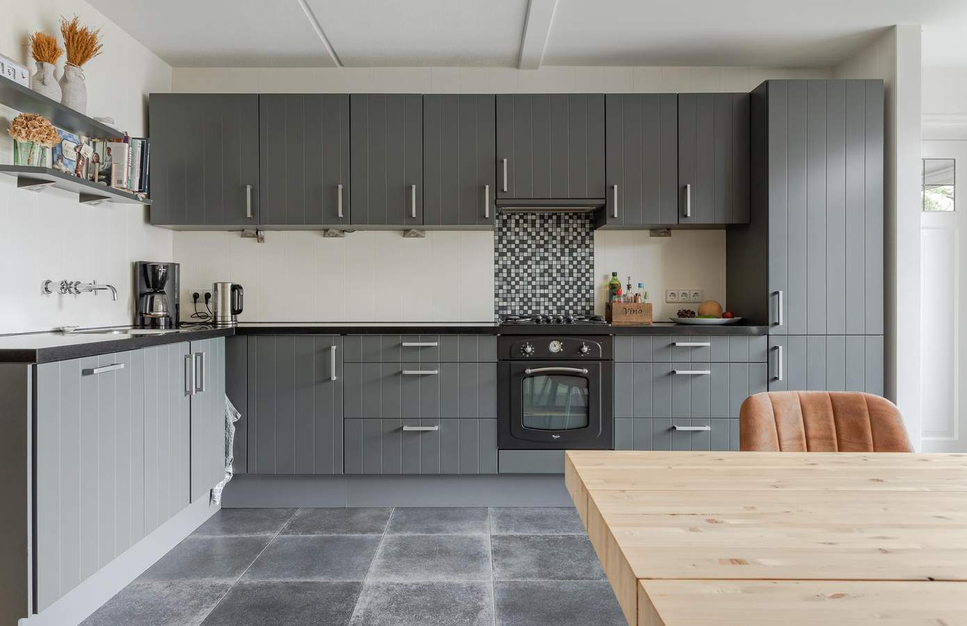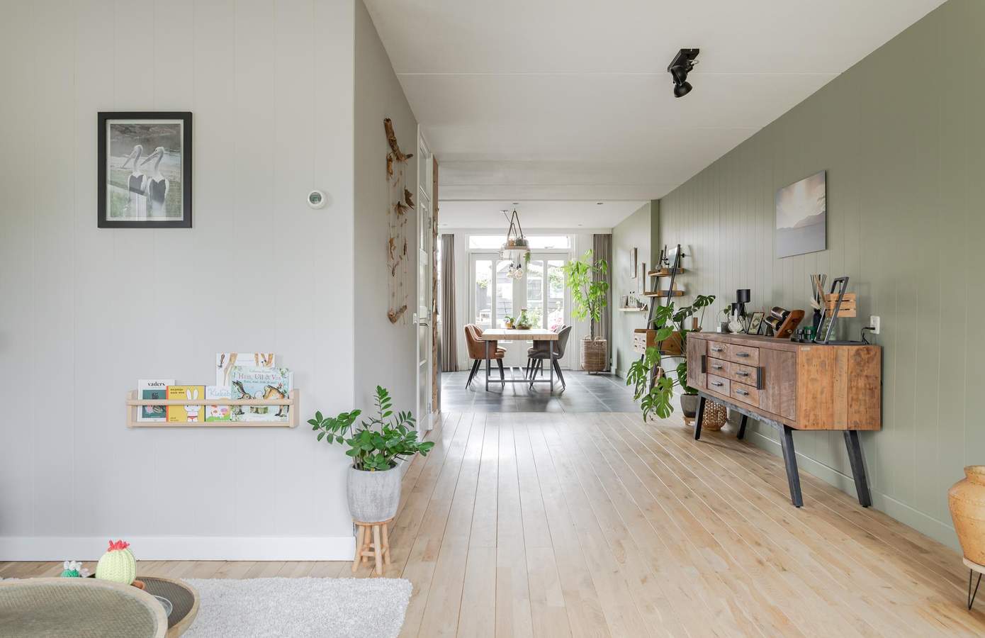 De woning is aan de achterzijde uitgebouwd, waardoor er een royale leefkeuken is ontstaan met openslaande deuren naar de tuin. De keuken is uitgevoerd in landelijke stijl en voorzien van een composiet werkblad, diverse inbouwapparatuur en plavuizen met vloerverwarming. De woonkamer vindt u aan de voorzijde en is een lichte plek dankzij de grote raampartijen. De massieve eikenhouten vloer geeft de woonkamer sfeer. Op de eerste verdieping vindt u twee slaapkamers, waarbij de grootste slaapkamer eenvoudig kan worden opgesplitst in twee kamers. De badkamer is in 2021 vernieuwd en biedt een moderne uitstraling met een ligbad, inloopdouche en dubbele wastafel, designradiator en vloerverwarming. De dakkapel aan de achterzijde zorgt voor extra ruimte. De tweede verdieping is bereikbaar via een vaste trap en beschikt over een voorzolder met de cv-opstelling en een derde slaapkamer. Deze kamer kan ook uitstekend als kantoor of thuiswerkplek worden gebruikt. Achter de knieschotten op de tweede verdieping is veel bergruimte.