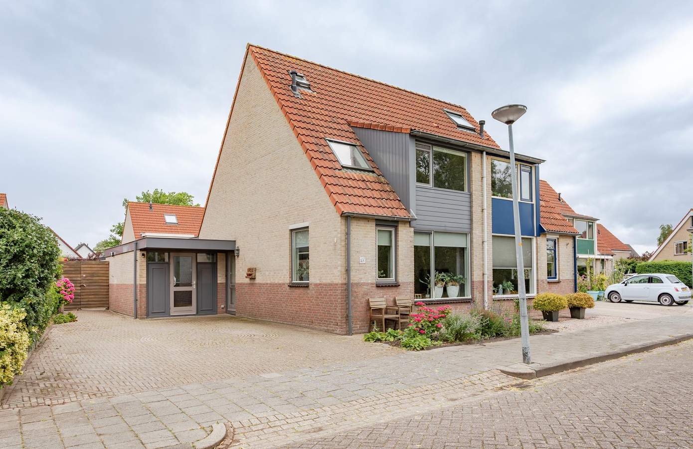 Welkom aan de Hornven 8, een verrassend ruime twee-onder-een-kapwoning met alle voorzieningen op korte afstand. De woning ligt aan een rustige straat en biedt aan de voorzijde een fraai uitzicht op een groenstrook en water, waardoor u hier dagelijks van een groen en ruimtelijk gevoel geniet. Binnen treft u aan de voorzijde een lichte woonkamer en aan de achterzijde is de woning uitgebouwd, waardoor er een zeer ruime leefkeuken is ontstaan met openslaande deuren naar de achtertuin. De woning heeft in totaal drie slaapkamers verdeeld over twee verdiepingen. In 2021 is de badkamer vernieuwd. Met de multifunctionele inpandig bereikbare berging op de begane grond behoort ook levensloop bestendig wonen tot de mogelijkheden. Parkeren is hier nooit een probleem met parkeergelegenheid voor drie auto’s op eigen erf. Hier geniet u elke dag van ruimte, comfort en een fijne leefomgeving, ideaal voor gezinnen en ook voor wie op zoek is naar comfortabel wonen met alle voorzieningen op korte afstand.