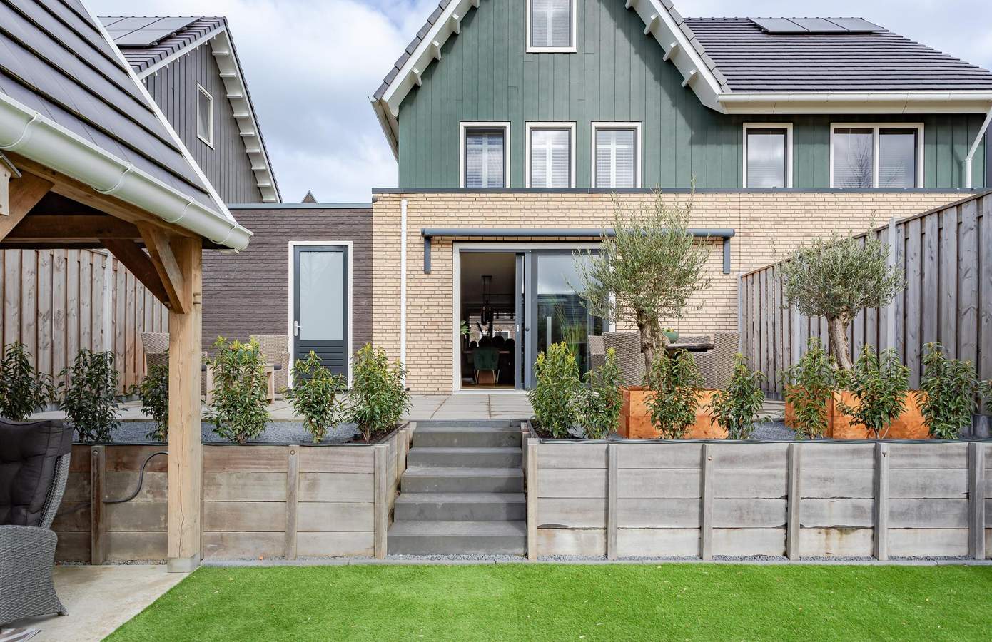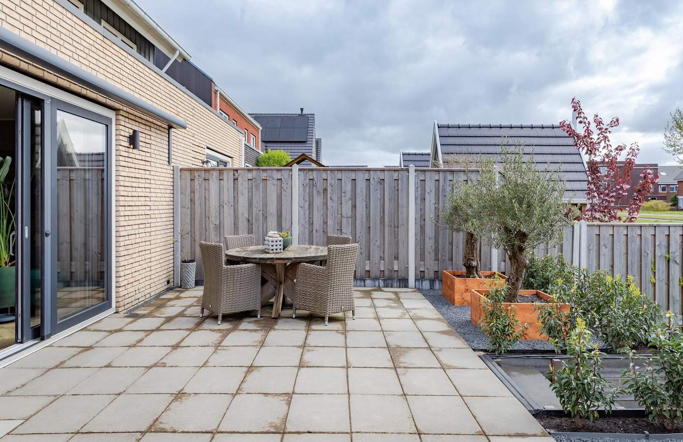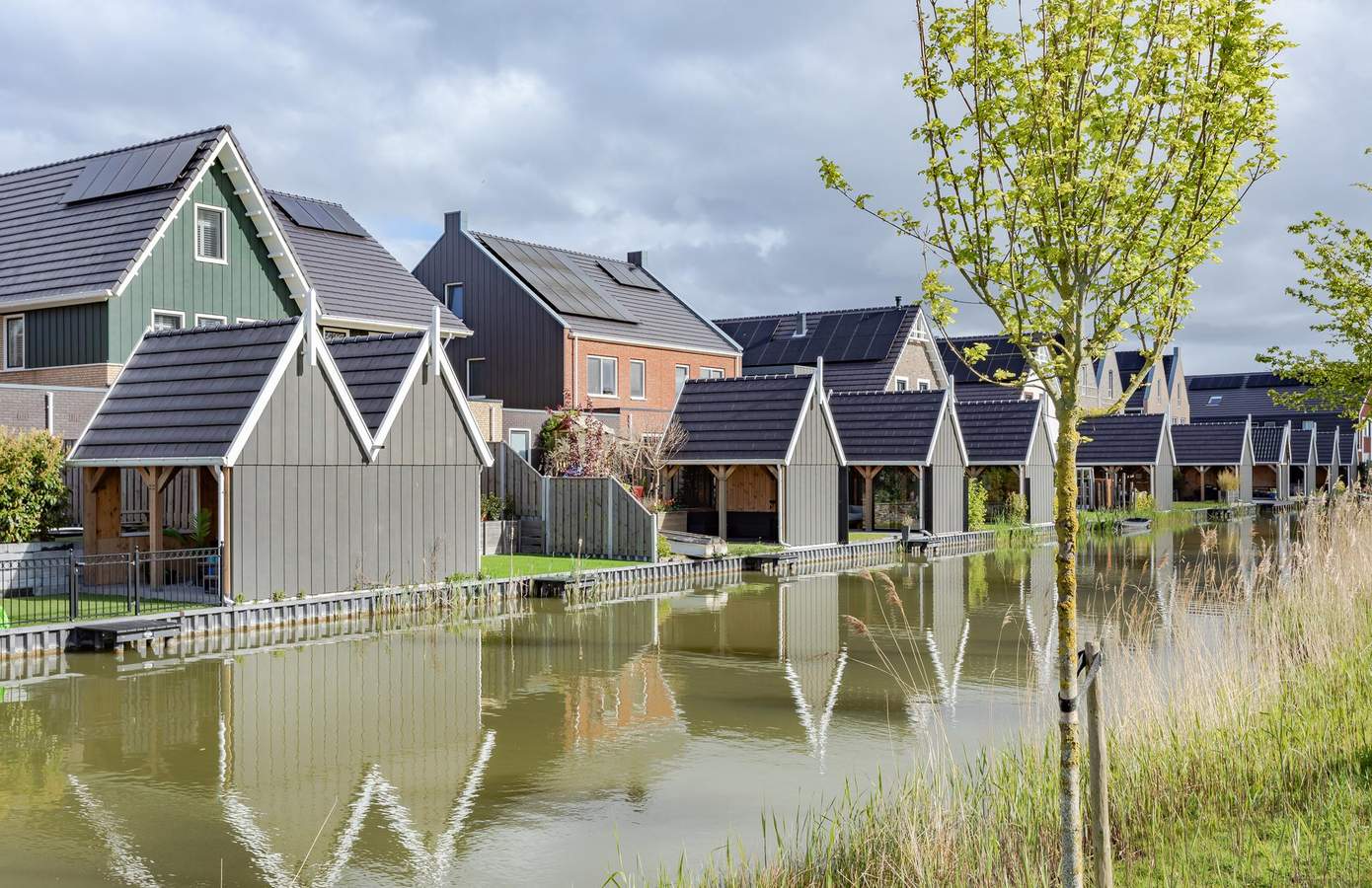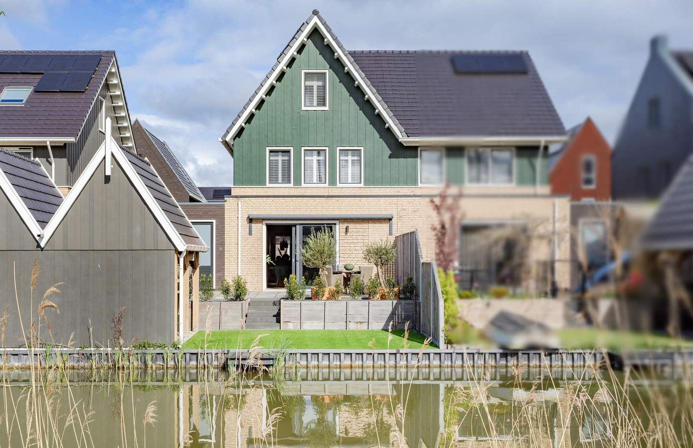 Een fijn pluspunt van deze woning is de achtertuin die op het zuiden ligt en direct aan het water grenst. Hier kunt u de hele dag genieten van de rust en de zon. Het ruime terras aan de woning biedt een perfecte plek om te ontspannen. Via een trap bereikt u het tweede terras aan het water met een sfeervolle veranda. Onder deze moderne veranda kunt u heerlijk zitten, aangenaam in de schaduw en beschermd tegen de wind terwijl u uitkijkt over het water.