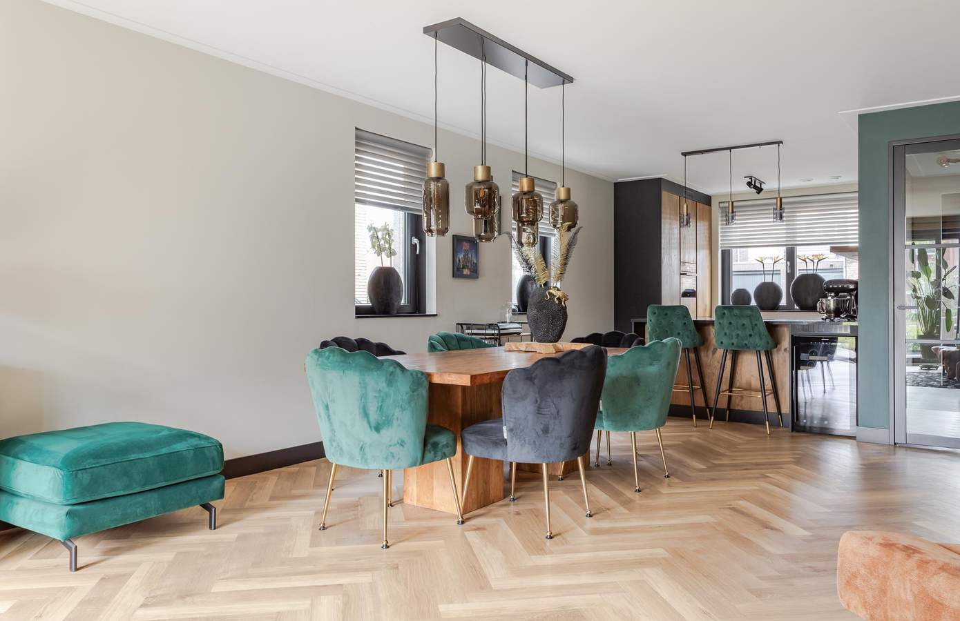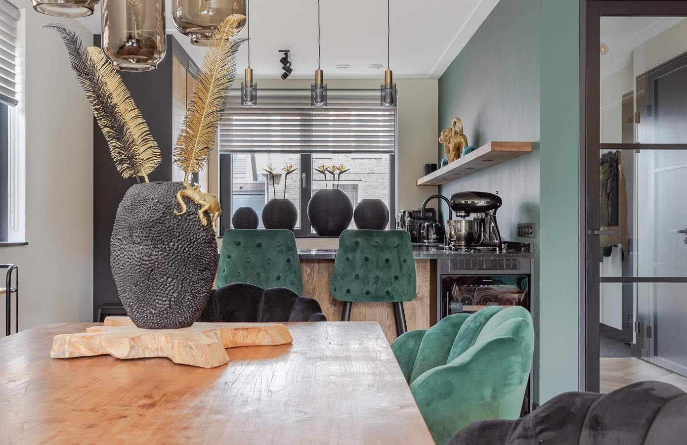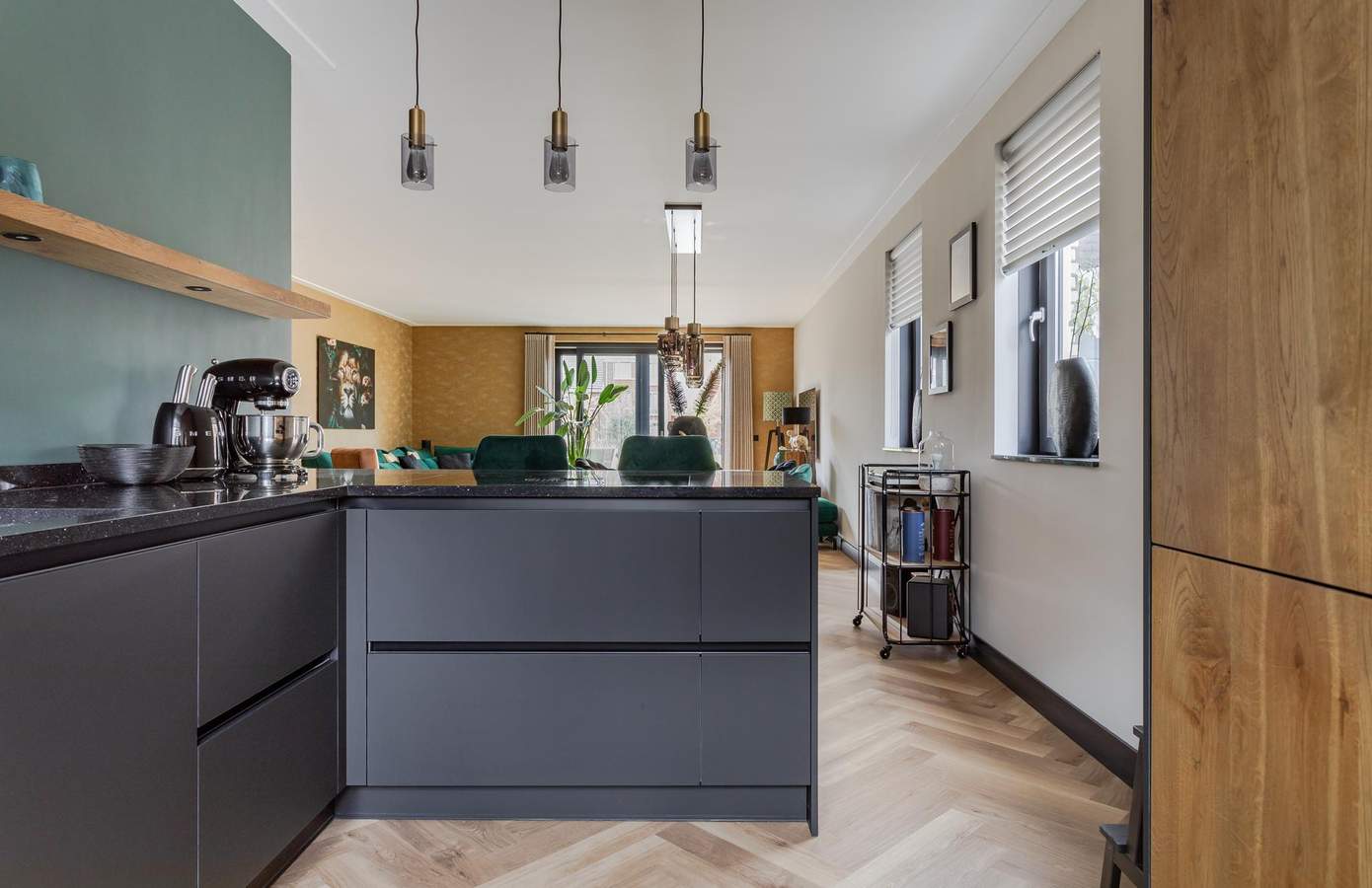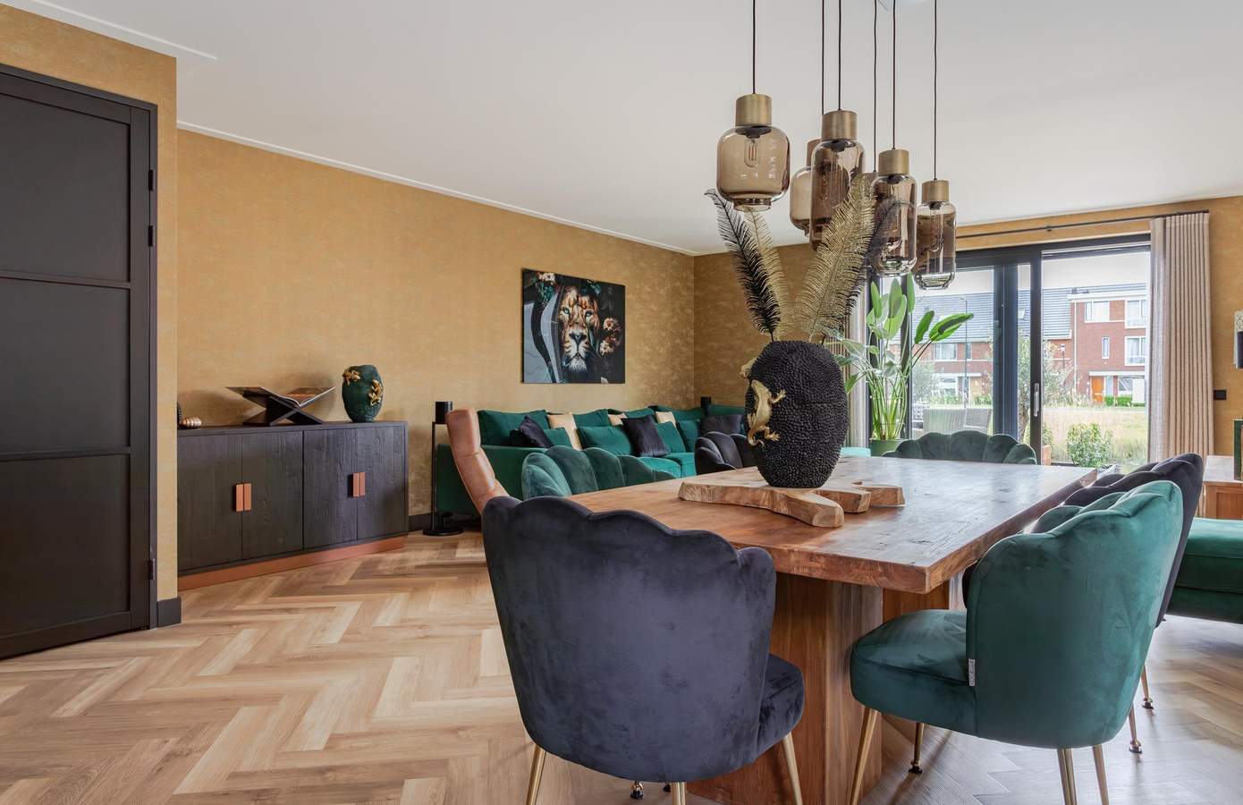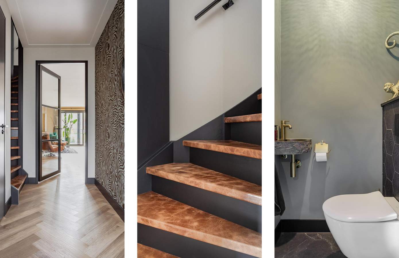 Bij het betreden van deze woning valt direct het hoogwaardige afwerkingsniveau op, van de plinten tot aan de kozijnen. De gebruikte materialen zijn van uitstekende kwaliteit en doorgevoerd tot de nok van woning. De woonkamer is gelegen aan de tuinzijde, en heeft een ruime en luxueuze uitstraling. De woning straalt warmte en comfort uit en profiteert van veel natuurlijk licht dankzij de schuifpui naar de tuin, alle ramen zijn voorzien van op maat gemaakte raambekleding. De keuken aan de straatzijde is een absolute eyecatcher, alles is op maat gemaakt, met een gezellige bar om aan te zitten. Deze keuken is uitgerust met een klimaatkast, inductiekookplaat met geïntegreerd afzuigsysteem en a-klasse inbouwapparatuur. Vanuit de hal springt de trap direct in het oog, met zijn hoogwaardige bekleding van leer die de trap een prachtige doorleefde uitstraling geeft. Op de eerste verdieping bevinden zich drie slaapkamers, waarvan één dienstdoet als walk-in closet.