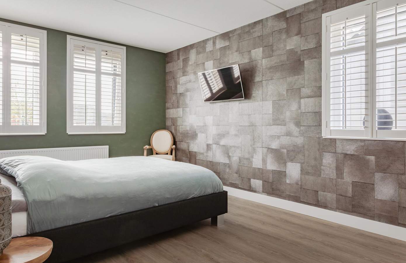 De master bedroom is gelegen aan de kant van de tuin, waardoor de reflecties van het water op de muren te zien zijn. De badkamer is een oase van luxe, met prachtige betonlook tegels, ingebouwde spotverlichting, een ligbad en een inloopdouche met vloerverwarming. De zolder is opgedeeld in twee royale kamers, waarvan één dienstdoet als wasruimte, slim ingericht met de wasmachine en droger op een verhoogd aanrecht. Beide kamers zijn prachtig afgewerkt en bieden veel ruimte. Als extra bergruimte is er vanaf de overloop van zolder nog toegang tot de vliering welke over de gehele lengte van de woning loopt.