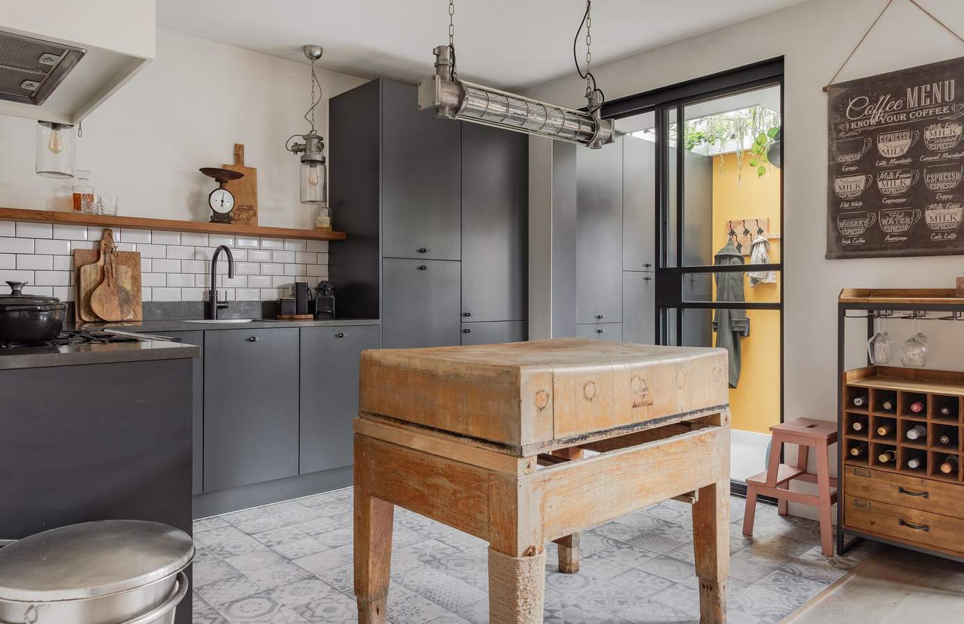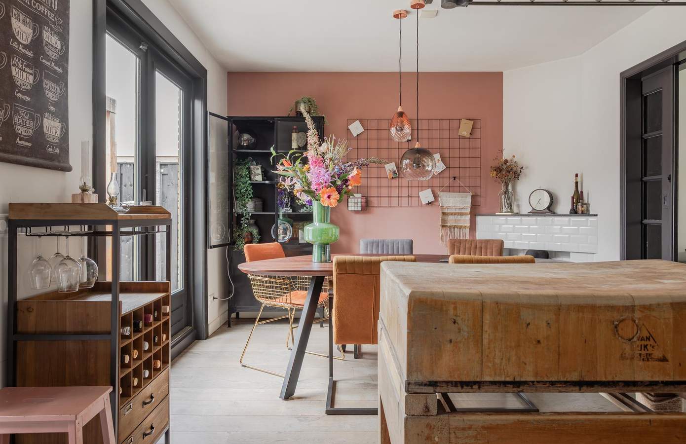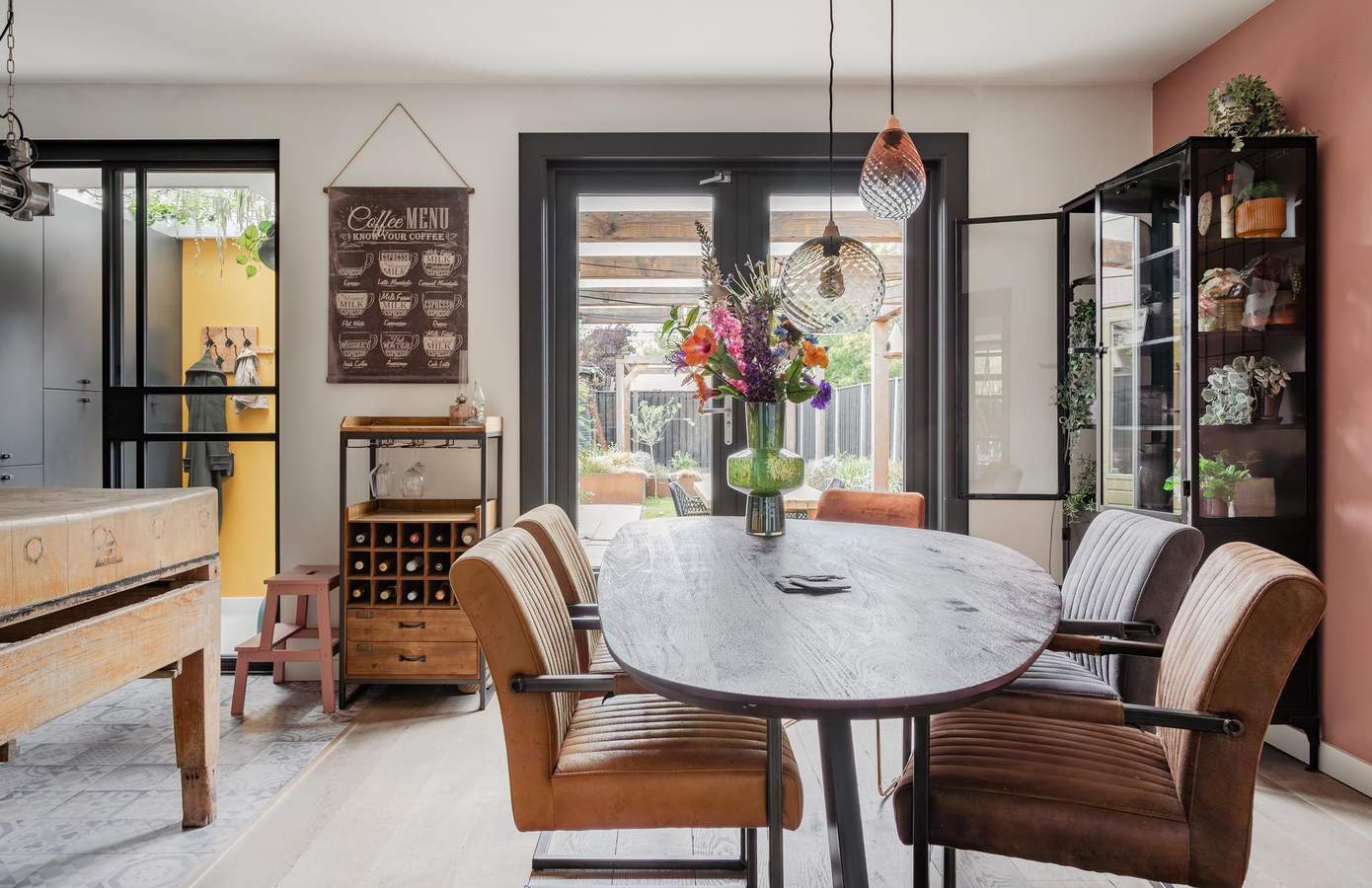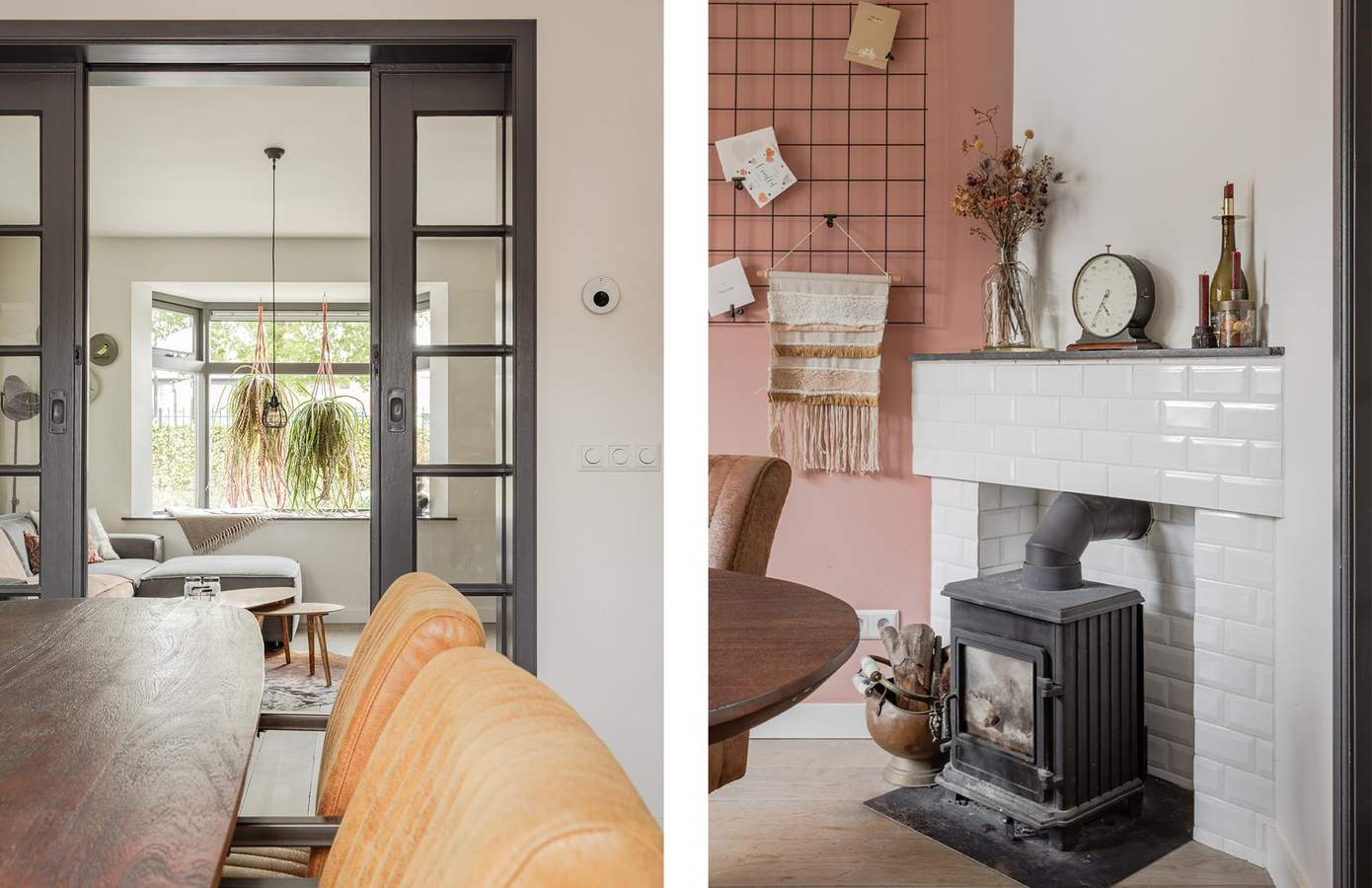 Wanneer u binnenstapt, valt direct de warme sfeer en het hoogwaardige afwerkingsniveau op. De woonkamer met nieuwe erker (2025) is licht en sfeervol en wordt gescheiden van de eetkamer door stijlvolle ensuite deuren. In de eetkamer zorgt een gezellige houtkachel voor warmte en sfeer. De keuken is een echte blikvanger: uitgevoerd in donkere tinten, voorzien van hoogwaardige apparatuur en afgewerkt met stoere materialen. De Quooker en vaatwasmachine zijn in 2024 vernieuwd. Achter de keuken vindt u een praktische bijkeuken met toegang tot een extra kamer. Deze ruimte is ideaal als kantoor, hobby- of speelkamer voor kinderen en maakt de woning extra veelzijdig.