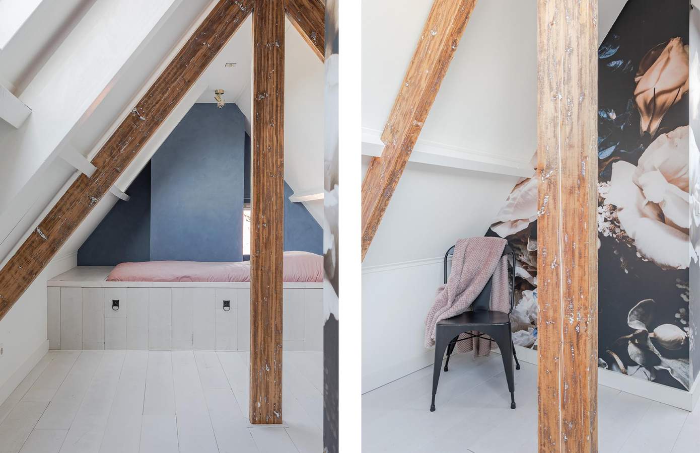 De tweede verdieping is in 2020 volledig verbouwd en omgetoverd tot een sfeervolle slaapkamer. De schuine kap met authentieke houten balken geeft deze verdieping een bijzonder karakter en maakt het een heerlijke plek om te slapen, te werken of juist te ontspannen.