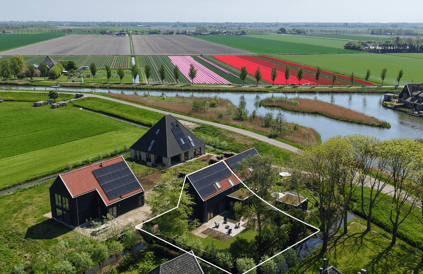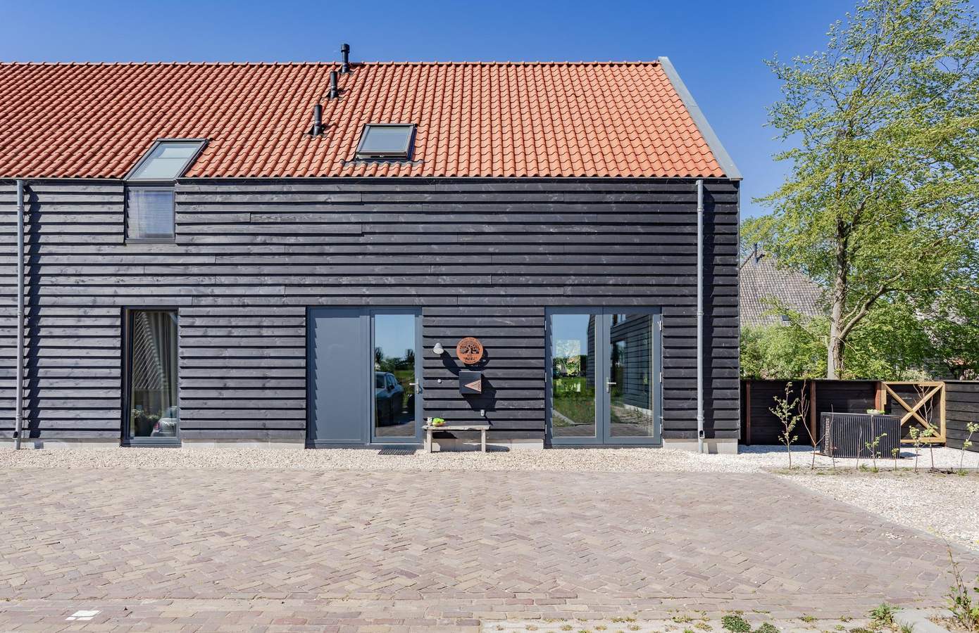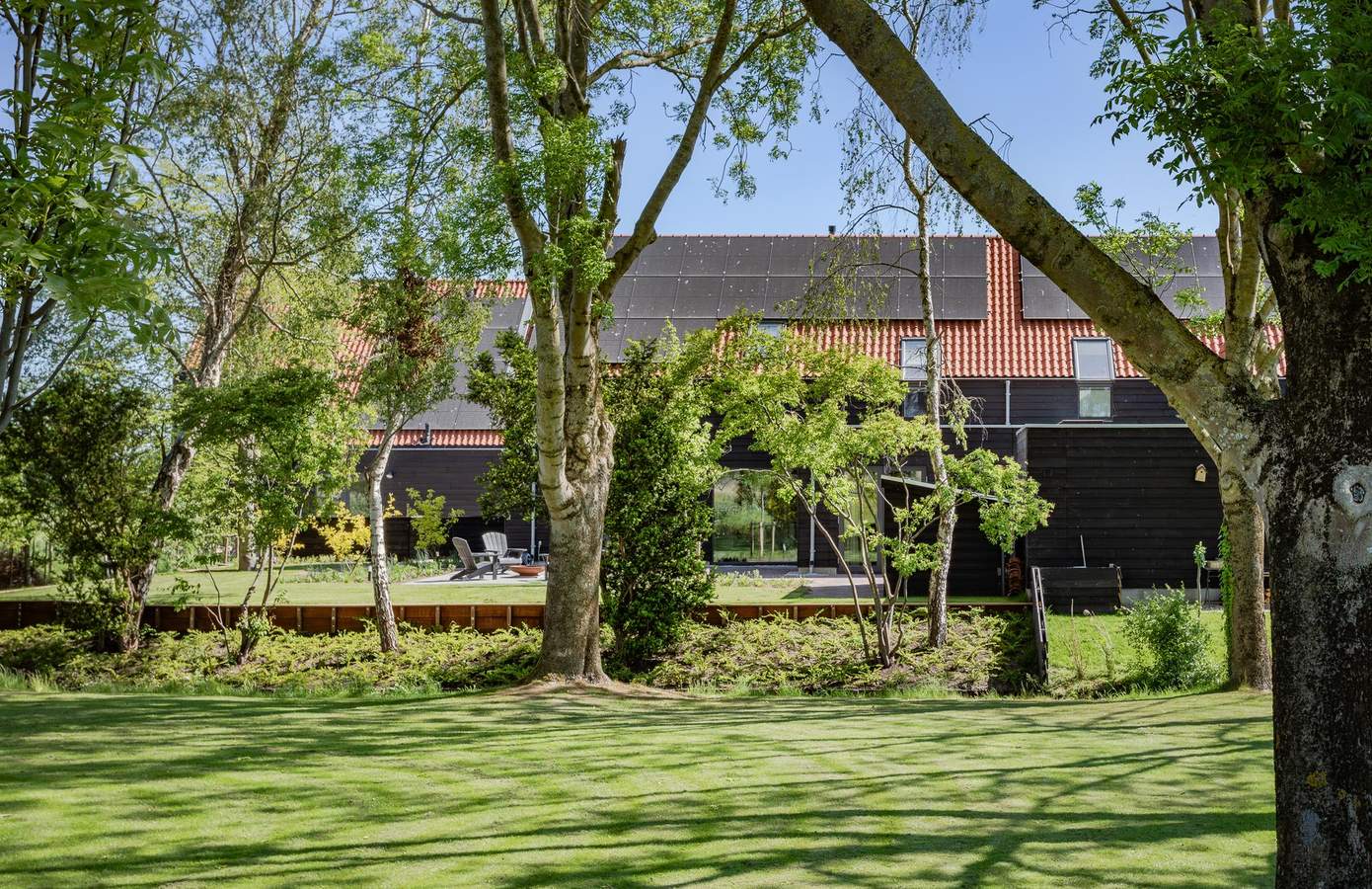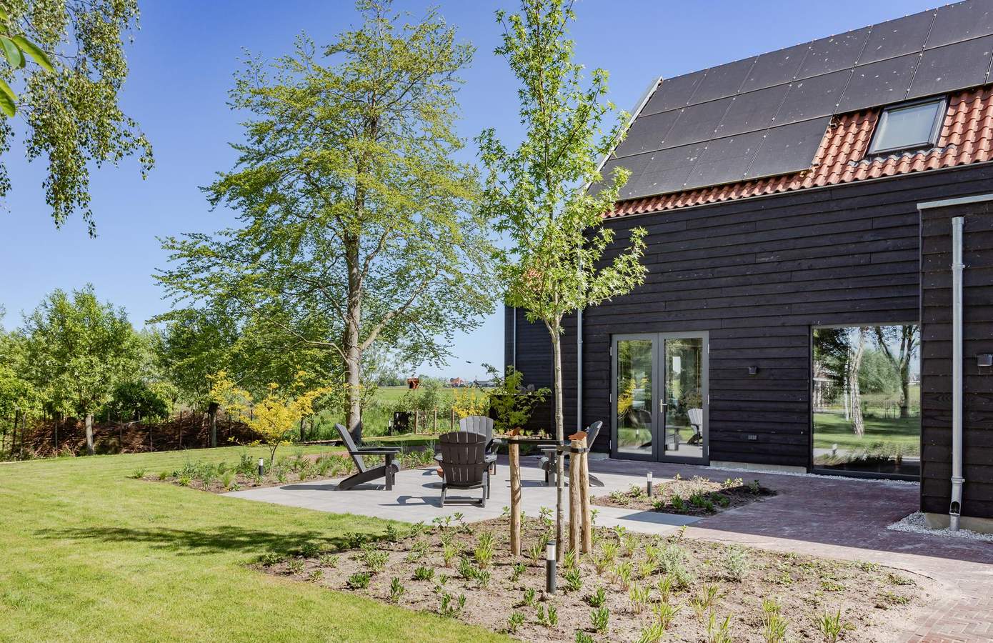 De zijtuin en achtertuin van de woning sluiten naadloos aan op het landelijke karakter van de omgeving. Deze tuin is in 2025 opgeleverd door John Komen hoveniers. Dankzij de grote schuifdeuren vanuit de woonkamer en de keuken loopt u zo het terras op. De volwassen bomen, jonge aanplant en de vrije ligging zorgen voor ultieme privacy en rust. Aan de voorzijde heeft u twee parkeerplaatsen. De zongerichte tuin op het westen biedt ruimte om te loungen, te spelen of te tuinieren – en met een knapperend vuurtje bij de vuurplaats wordt elke avond een moment om naar uit te kijken. In 2024 is er in de achtertuin nog een fietsenschuur geplaatst.