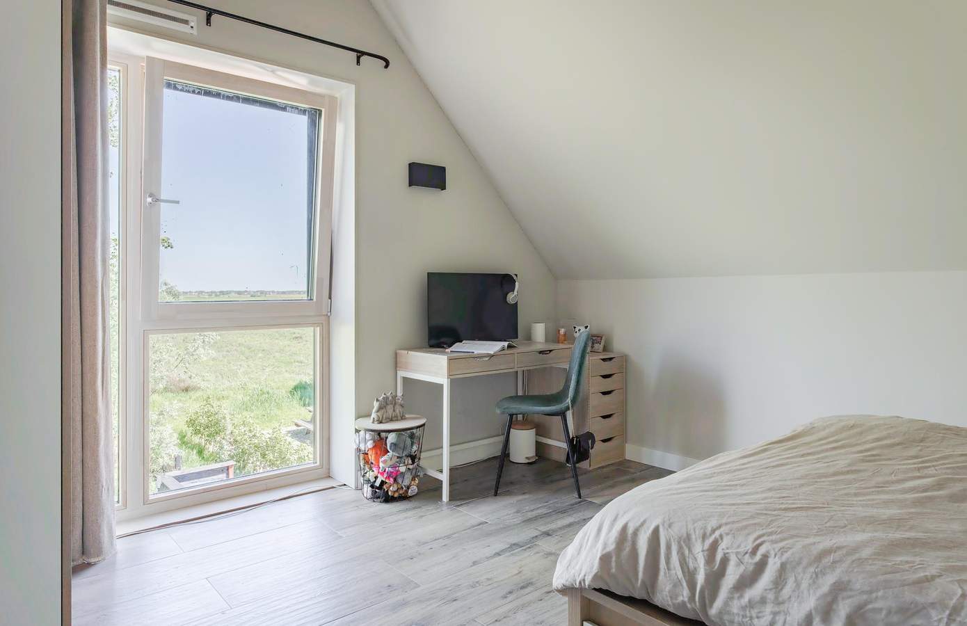 Deze woning is niet alleen gasloos, maar ook volledig nul-op-de-meter (NOM). De 22 zonnepanelen op het dak wekken voldoende energie op voor verwarming, koeling, koken, wassen en verlichting – op jaarbasis. Dankzij het houtskeletbouw-systeem is de woning uitzonderlijk goed geïsoleerd. In combinatie met drievoudig glas geniet u van een aangenaam binnenklimaat: behaaglijk warm in de winter en heerlijk koel in de zomer.