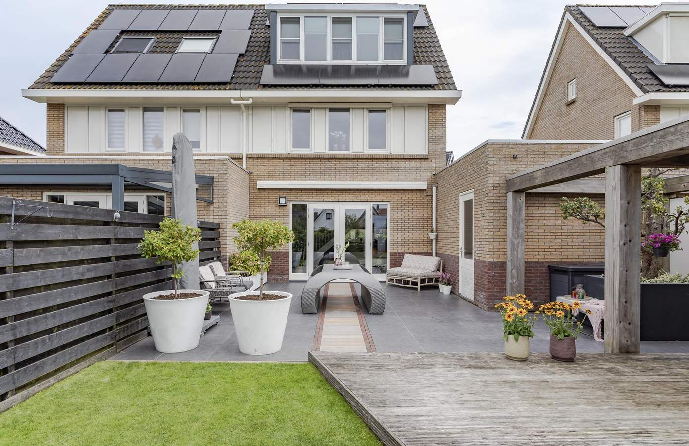 In een heerlijk rustig en autoluw hofje in het Waarland staat deze fraaie twee-onder-een-kap woning met zeer ruime garage. Duurzaamheid staat centraal in deze woning, met een modern klimaatsysteem met een geavanceerde koeling die zowel de begane grond als de bovenverdieping koel houdt tijdens warme maanden, volledig gasloos en maar liefst 16 zonnepanelen komen comfort en duurzaamheid perfect samen. De woning is tot in de puntjes afgewerkt en biedt u volop woon- en leefcomfort. Binnen is alles bijzonder smaakvol en strak afgewerkt. Dit is typisch een woning waar u binnenkomt en u zich direct thuis voelt. De living is tuingericht en heeft openslaande deuren naar het terras waardoor u het buitenleven perfect met binnen verbindt. In de ruime, op het zuidwesten gelegen tuin, is het van vroeg op de dag tot s’avonds laat heerlijk vertoeven. Dit alles maakt het plaatje compleet zodat u hier na een dag hard werken volledig tot rust kunt komen!