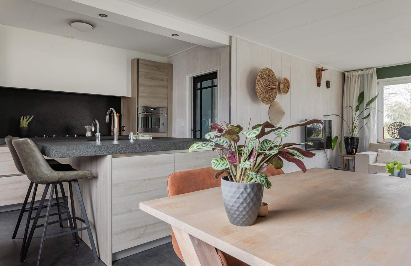 Bij binnenkomst in de woning kom je in de entree, hier is een toiletruimte, trapopgang, de meterkast en een handige provisie-/kelderkast. De woonkamer heeft een pvc vloer, een sfeervolle allesbrander en veel lichtinval via de grote ramen. Vanuit de woonkamer loopt u zo door naar de open keuken, deze is compleet met moderne inbouwapparatuur: een combi-oven, stoomoven, quooker, vaatwasmachine, koelkast, vriezer en kookplaat. Direct aansluitend bevindt zich de bijkeuken met een opstelplaats voor wasmachine en droger, en de CV-ketel. Grenzend aan de bijkeuken is de aangebouwde berging, een praktische opbergruimte voor bijvoorbeeld gereedschap en fietsen.