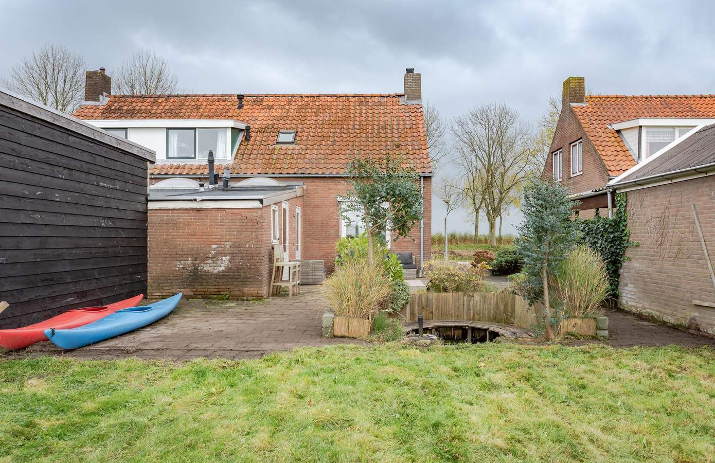 Op de oprit is plek om 3 auto’s te parkeren. En er zijn meer dan voldoende openbare parkeerplaatsen. De achtertuin is ruim met een diepte van maar liefst 18 meter. Hier geniet je de hele dag van de zon, van zonsopkomst aan de voorzijde tot zonsondergang in de achtertuin. Er is een terras, gazon en een zitkuil met groene beplanting, waar je je kunt terugtrekken. Kortom een heerlijke plek om te ontspannen en genieten van lange zomeravonden met vrienden en familie. Vanuit de achtertuin zijn er schitterende vergezichten over de achtergelegen landerijen. Hier geniet je van de seizoenswisselingen met alle bijbehorende fauna.