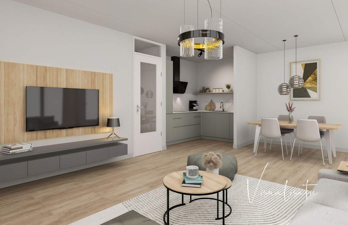 Dit ruime appartement van 78 m² bevindt zich op de tweede verdieping en geniet van veel natuurlijke lichtinval dankzij de grote raampartijen in de woonkamer. Vanuit de woonkamer stapt u direct het balkon op, met een royale oppervlakte van circa 24 m² vormt dit balkon een verlenging van uw leefruimte. De open keuken is stijlvol ingericht en voorzien van diverse inbouwapparatuur, waaronder een kookplaat, afzuigkap, oven en vaatwasmachine. De twee slaapkamers zijn goed van formaat. Verder biedt het appartement een moderne badkamer, een separaat toilet en een praktische bergruimte met de cv-opstelling.