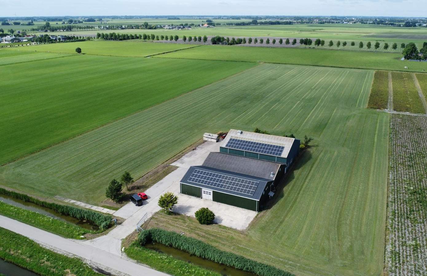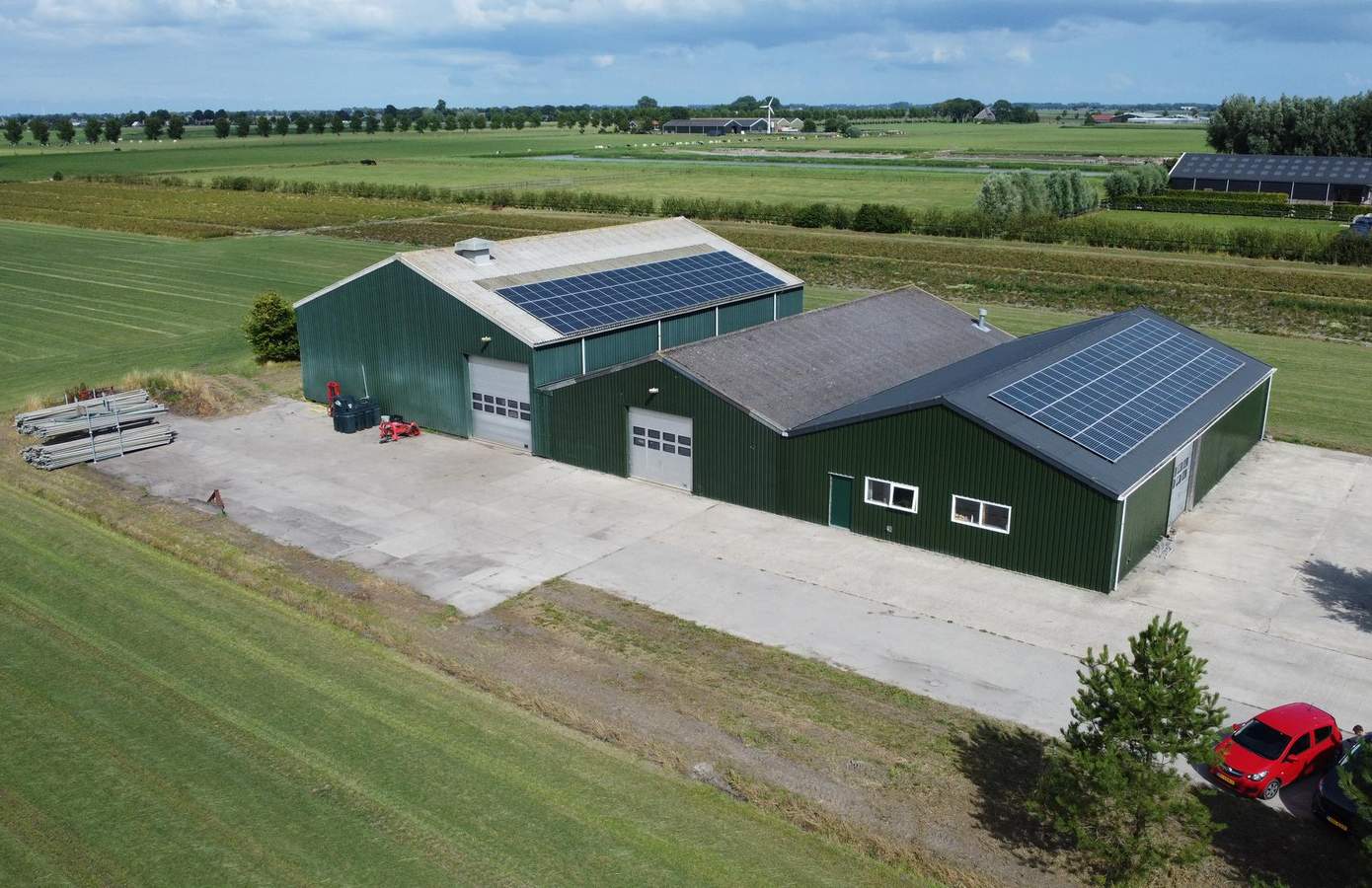 De agrarische loodsen zijn deels ingericht met warmte-/koelcellen. Het te verkopen agrarisch erf is circa 10.000 m² en optioneel nog 4 hectare.