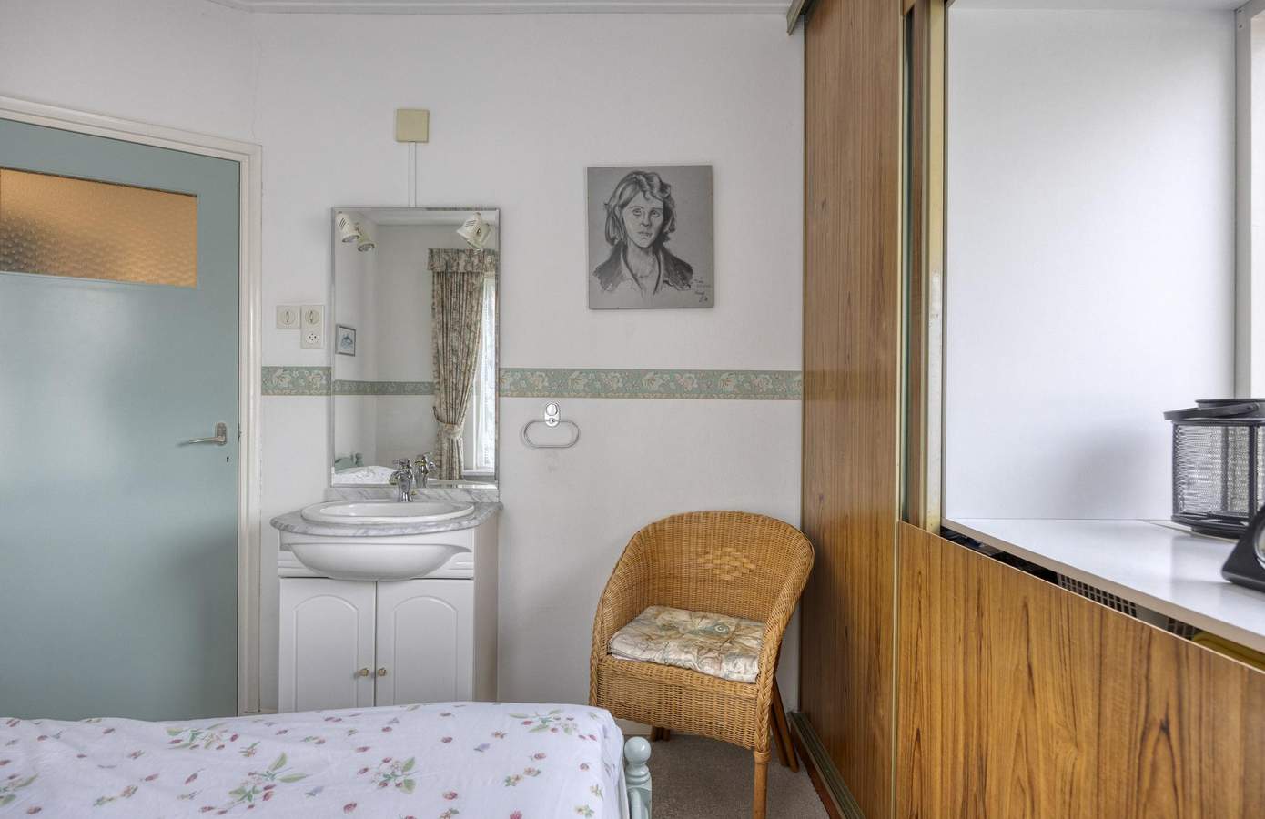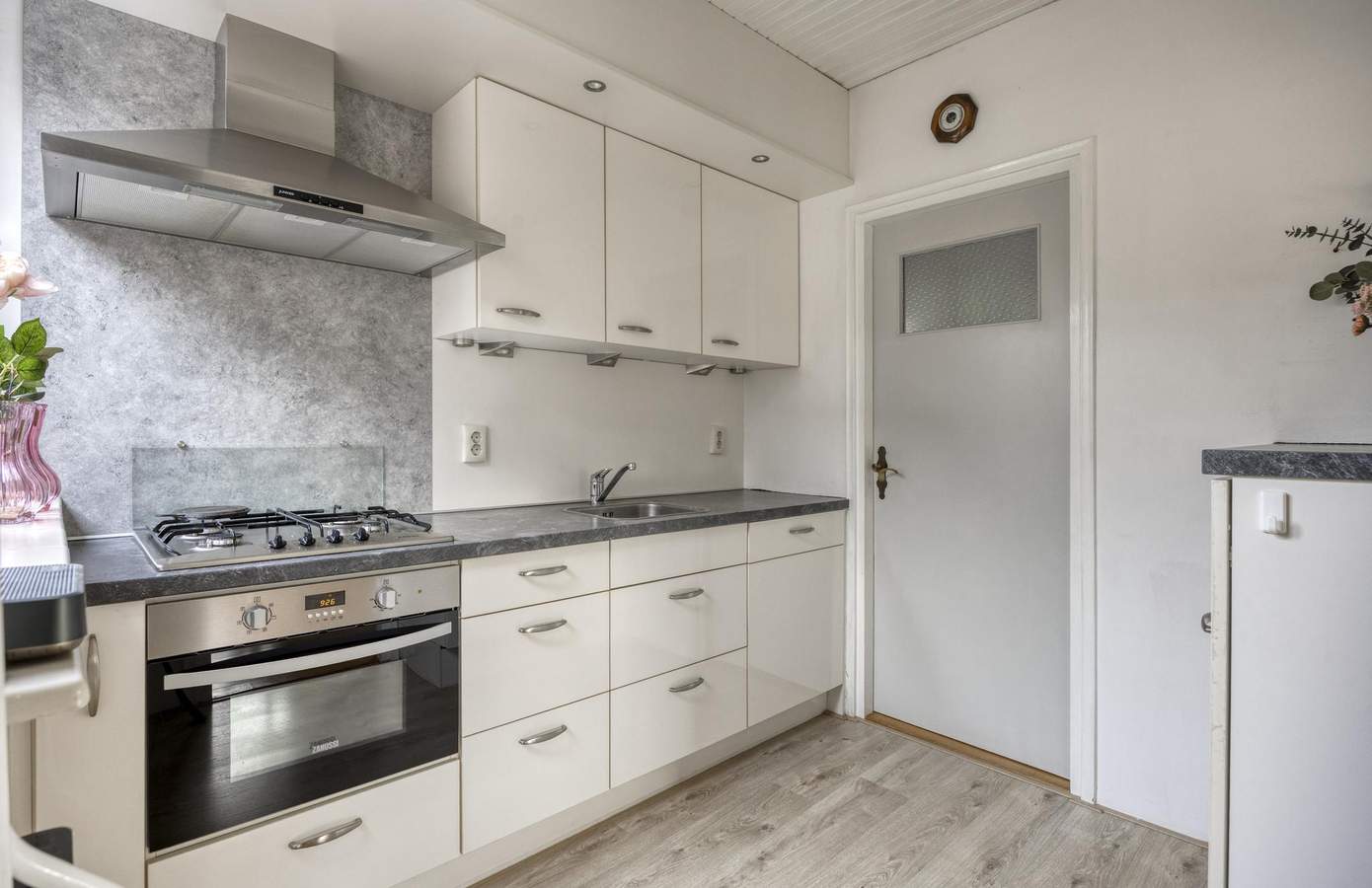 Via de entree komt u in de hal die toegang geeft tot de lichte woonkamer. De grote ramen zorgen voor een fijne lichtinval en een open verbinding met de groene tuin. De keuken is overzichtelijk en functioneel ingedeeld, voorzien van inbouwapparatuur en voldoende kastruimte. Er zijn in totaal drie slaapkamers, allemaal op de begane grond gelegen, waardoor er volop mogelijkheden zijn om een werkkamer, logeerkamer of hobbyruimte te creëren. De badkamer is praktisch ingericht en heeft een douche en wastafel. De inpandige garage is een echte meerwaarde: droog binnenkomen met de boodschappen of extra ruimte voor fietsen, tuinmeubilair en gereedschap.