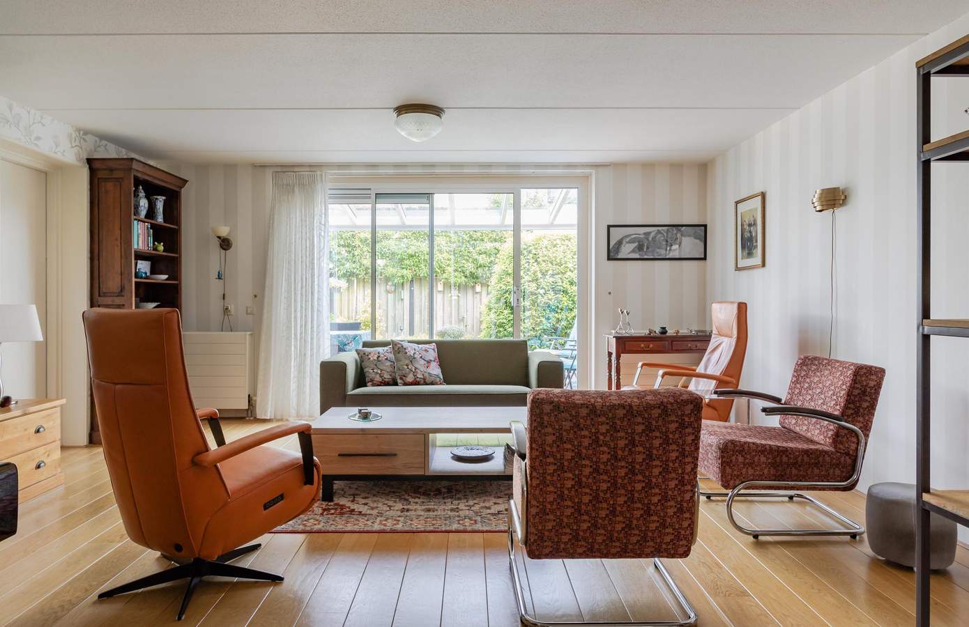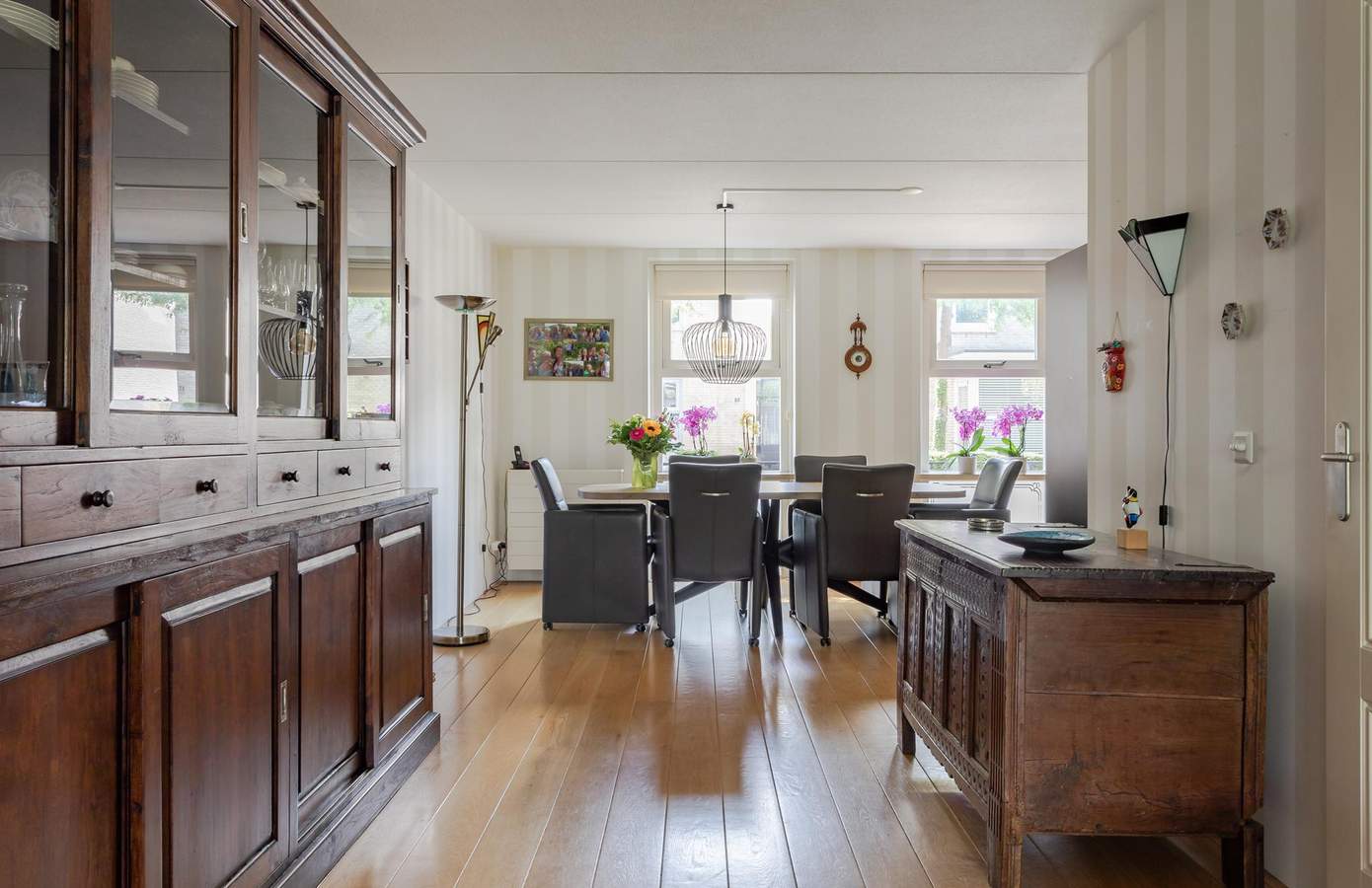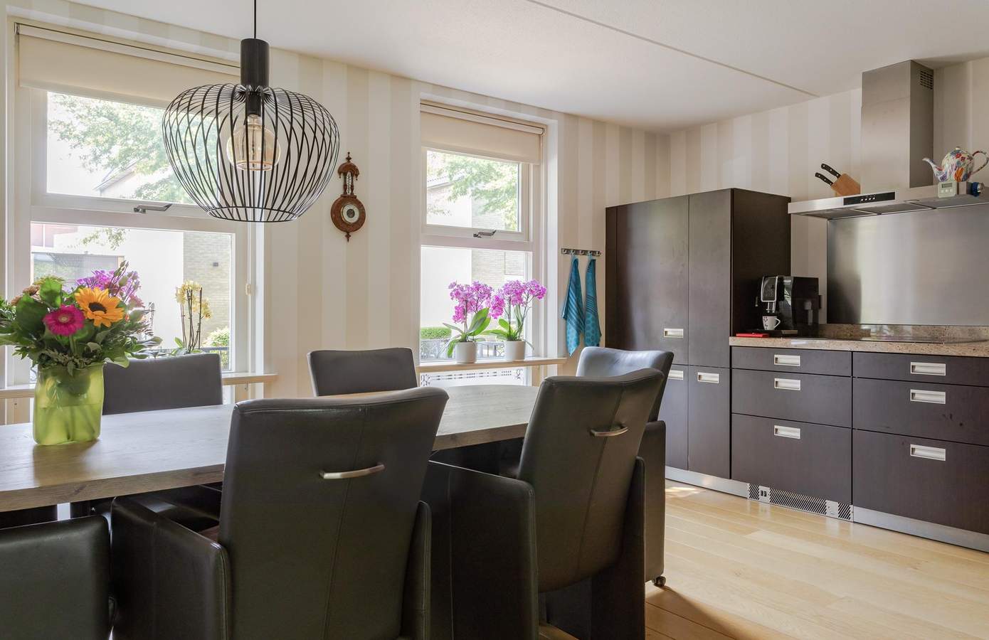 Betreed de woning via de zij-ingang onder de carport en stap binnen in een ruime hal, waar zich een apart toilet en de trap naar boven bevinden. Aan de voorzijde van het huis vindt u een half open keuken, ideaal om gezellig aan de eettafel te zitten terwijl er gekookt wordt. De keuken is volledig uitgerust met moderne inbouwapparatuur. Vanuit de lichte woonkamer aan de achterkant heeft u directe toegang tot de glazen tuinkamer. Deze tuinkamer, met schuifwanden aan alle zijden, kan in de zomer volledig geopend worden, terwijl u in de winter kunt genieten van de tuin met behulp van heaters. Deze tuinserre is een fijne toevoeging aan het huis, waardoor u het hele jaar door van deze extra leefruimte kunt genieten.