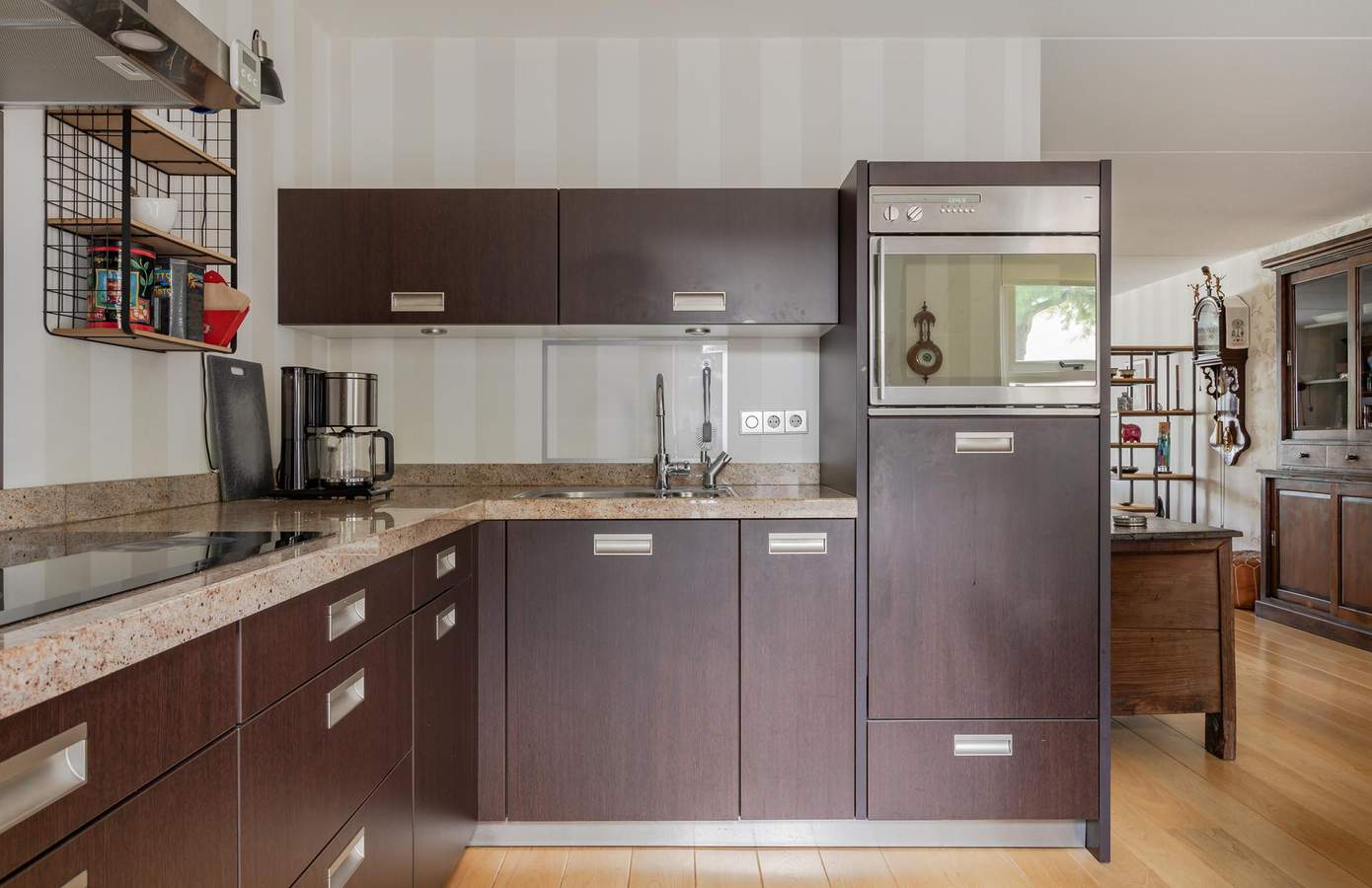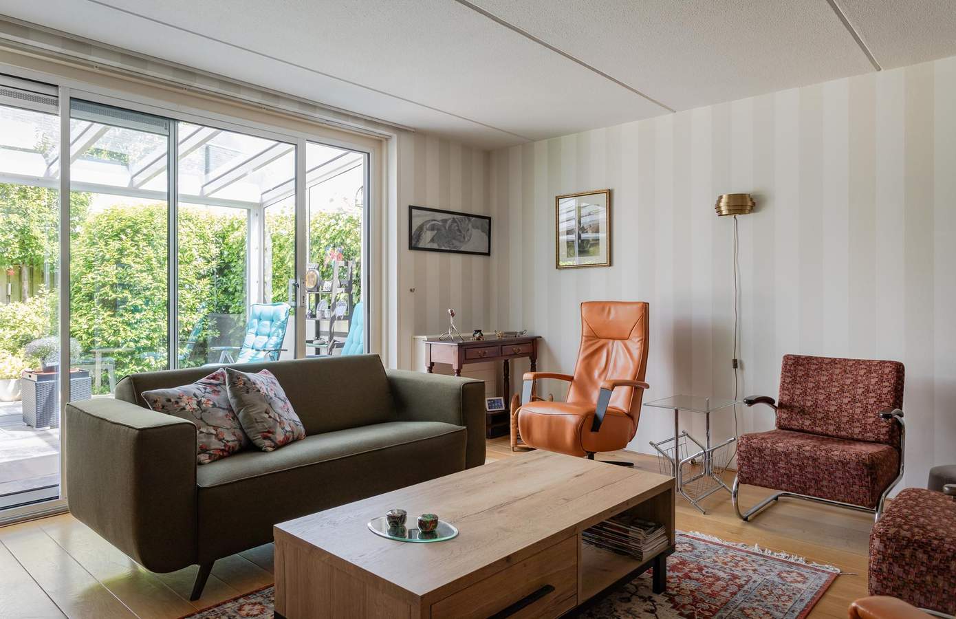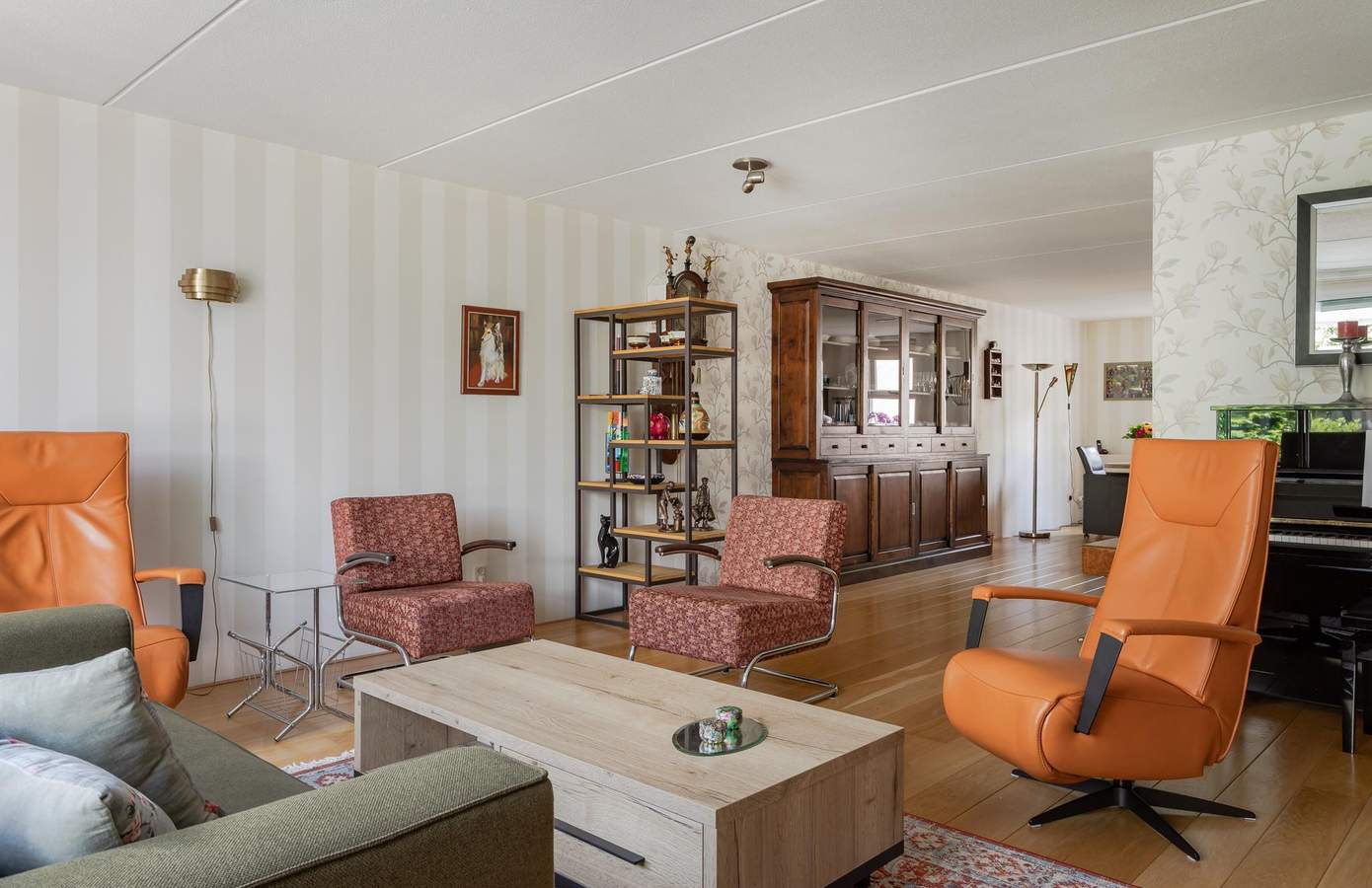 Betreed de woning via de zij-ingang onder de carport en stap binnen in een ruime hal, waar zich een apart toilet en de trap naar boven bevinden. Aan de voorzijde van het huis vindt u een half open keuken, ideaal om gezellig aan de eettafel te zitten terwijl er gekookt wordt. De keuken is volledig uitgerust met moderne inbouwapparatuur. Vanuit de lichte woonkamer aan de achterkant heeft u directe toegang tot de glazen tuinkamer. Deze tuinkamer, met schuifwanden aan alle zijden, kan in de zomer volledig geopend worden, terwijl u in de winter kunt genieten van de tuin met behulp van heaters. Deze tuinserre is een fijne toevoeging aan het huis, waardoor u het hele jaar door van deze extra leefruimte kunt genieten.