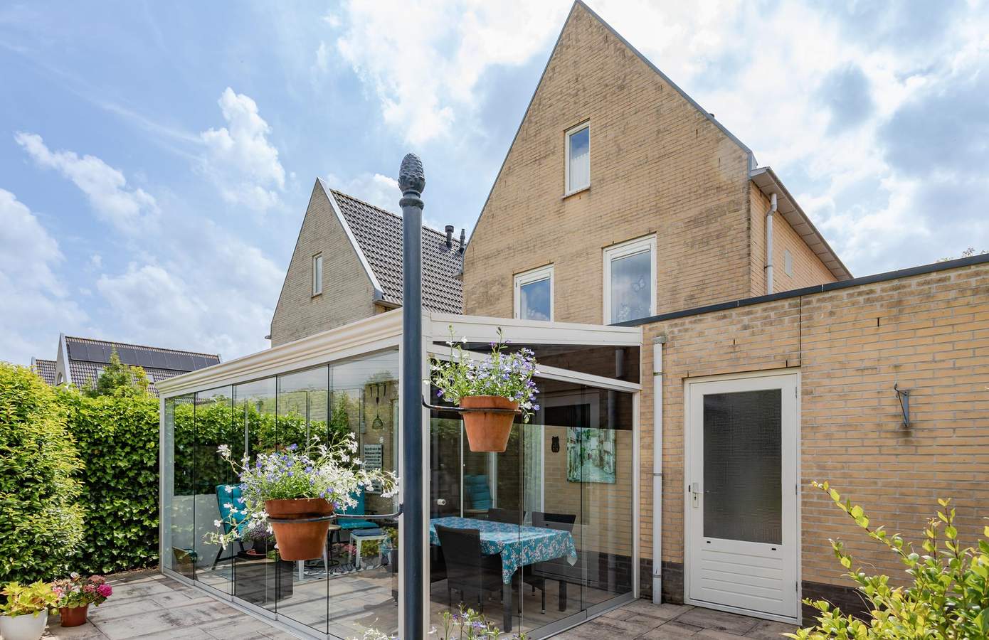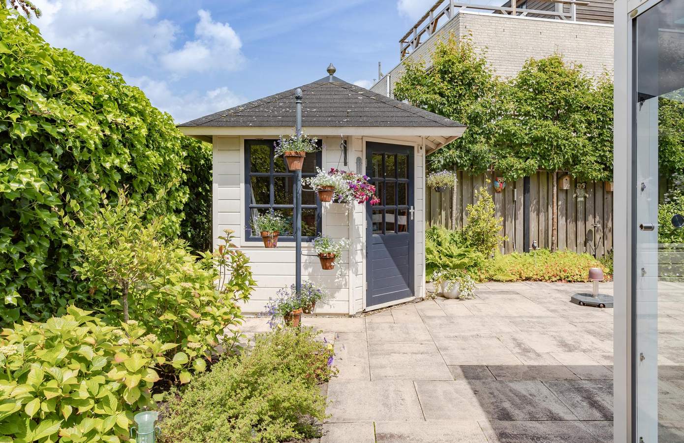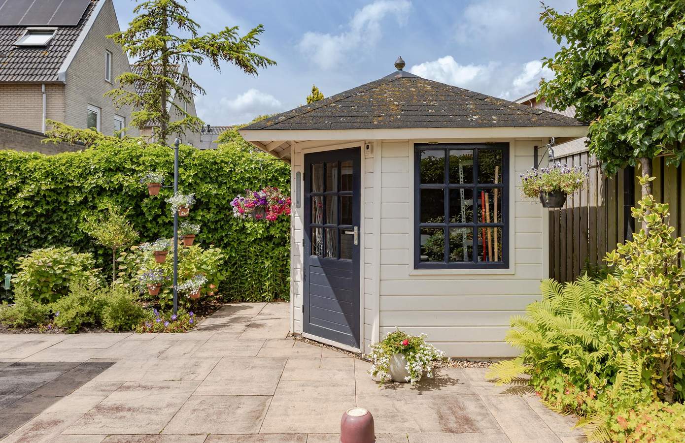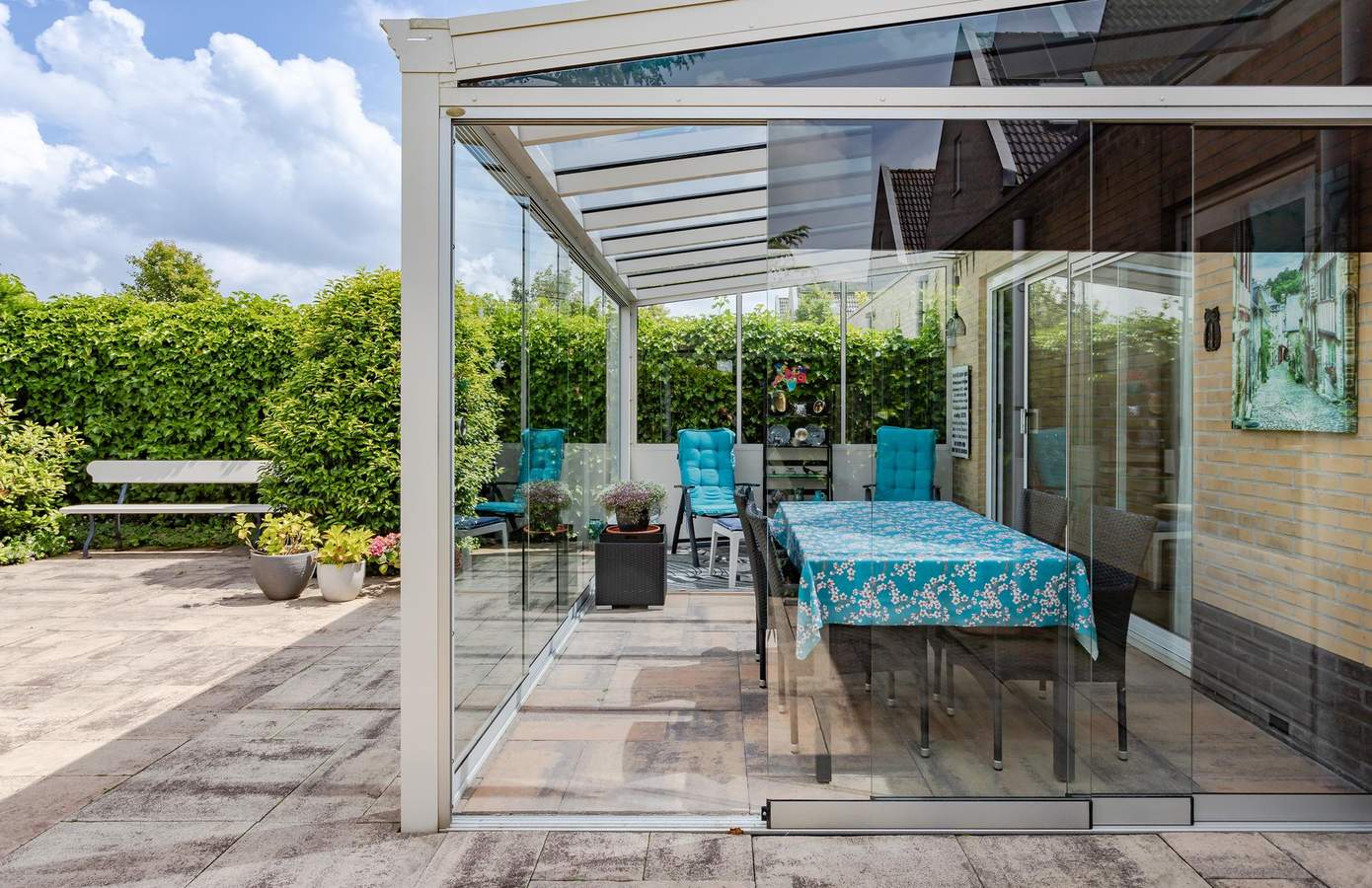 Wie wil dat nou niet? Een tuin waar u het hele jaar door van kunt genieten. Of het nu regent, koud is, waait of de zon schijnt, u kunt altijd heerlijk gebruikmaken van de tuin dankzij de fijne glazen tuinkamer. De tuinkamer is volledig voorzien van glas en alle wanden kunnen worden opengeschoven. Met verlichting en heaters is dit een comfortabel verlengstuk van de woning. De tuin zelf heeft mooie bloemenperken, ligt beschut en is goed onderhouden. Daarnaast is er een handig tuinhuisje voor het opbergen van uw tuinspullen. De voortuin ligt aan een straat met alleen bestemmingsverkeer, waar u uw auto droog kunt parkeren onder uw eigen carport. Vanaf daar kunt u direct naar de garage of naar de voordeur.