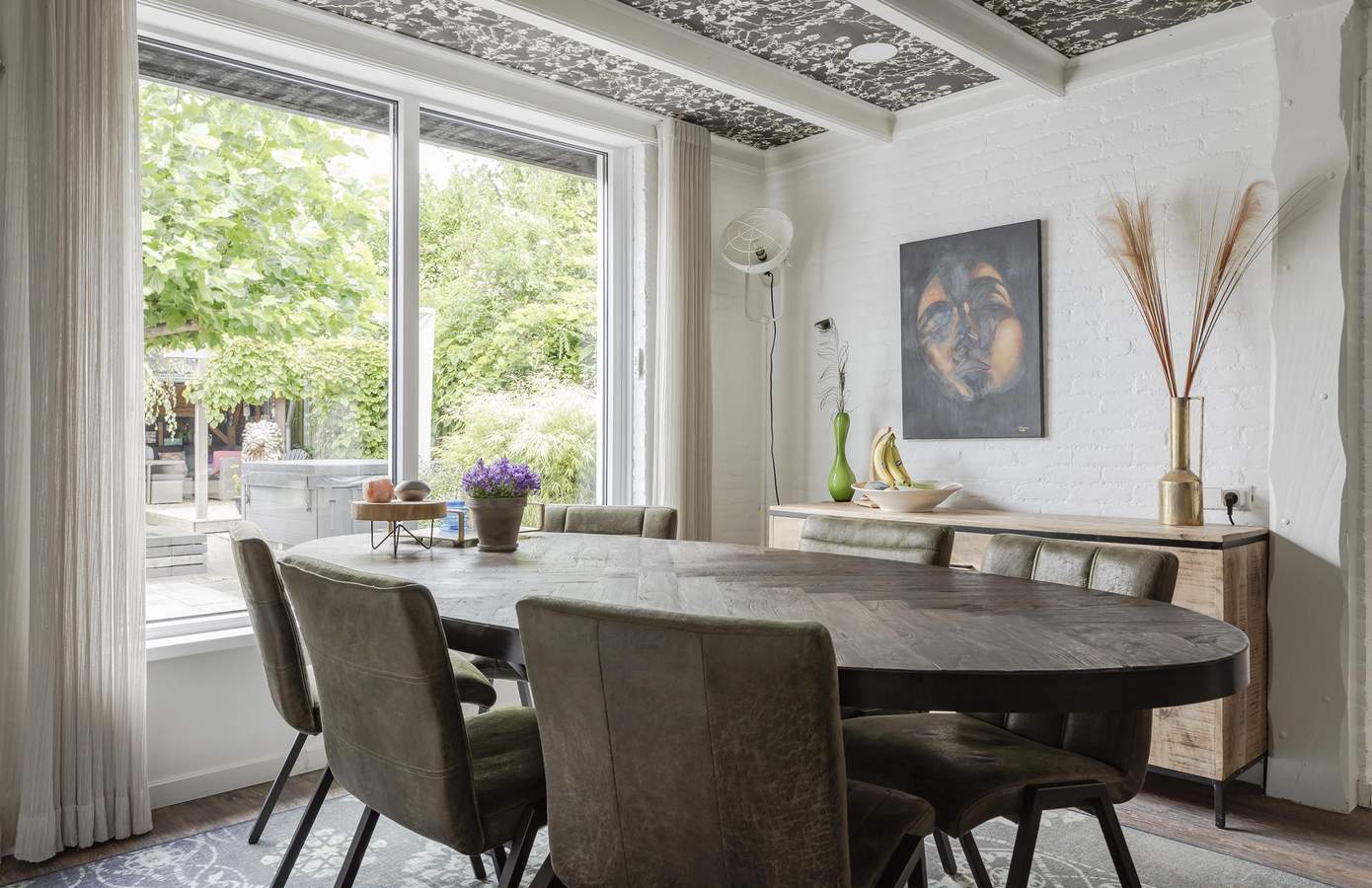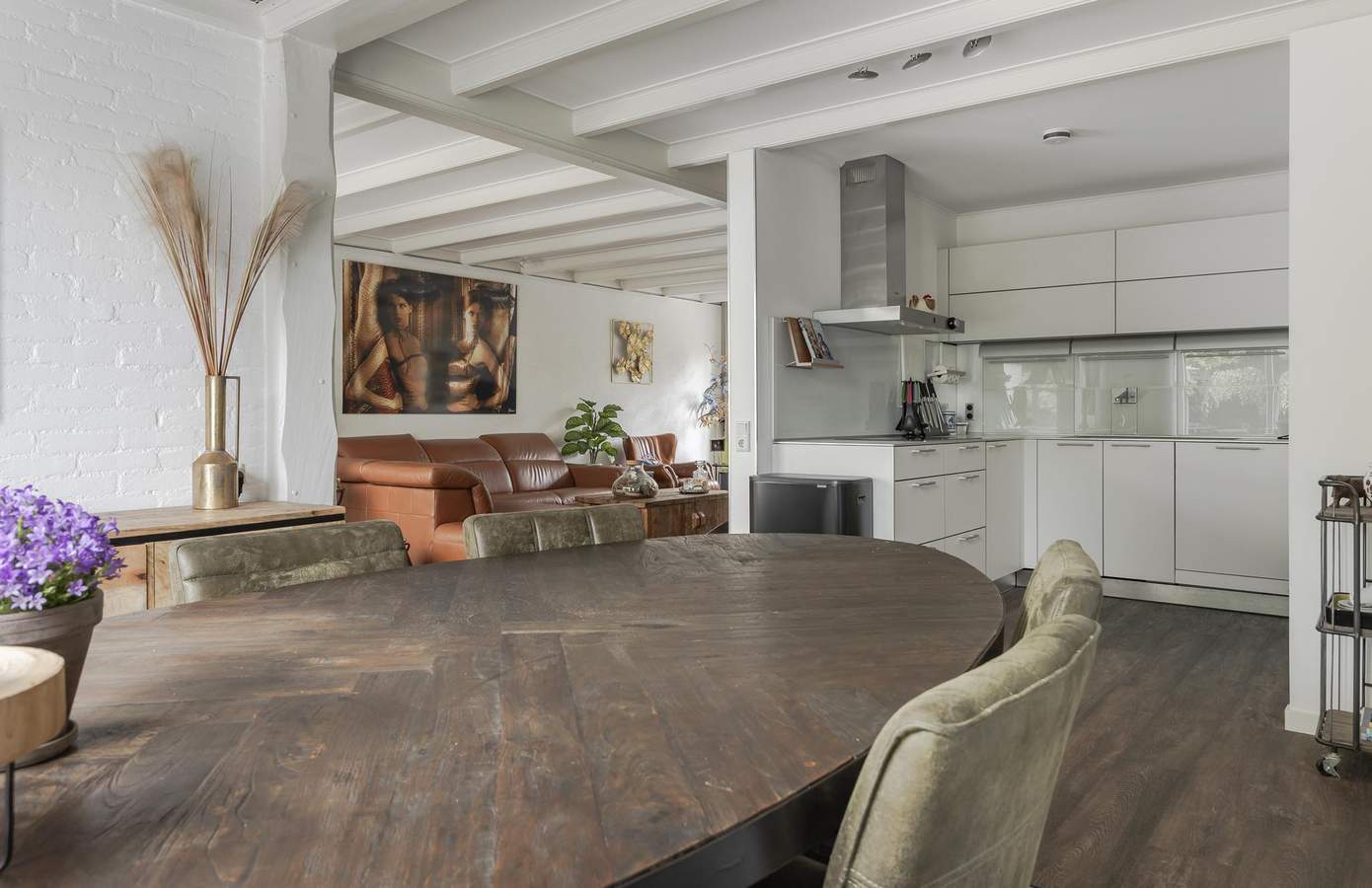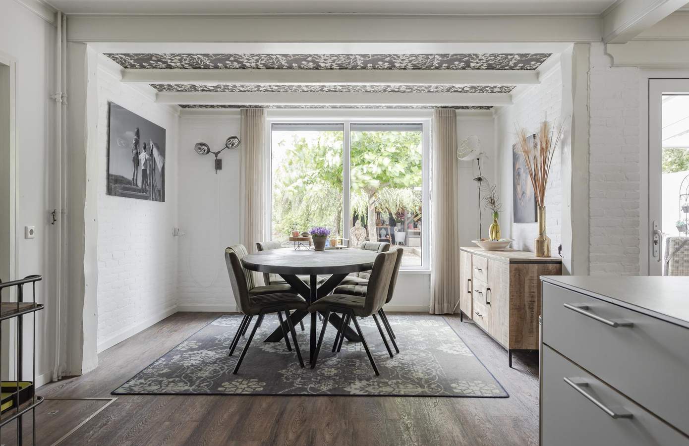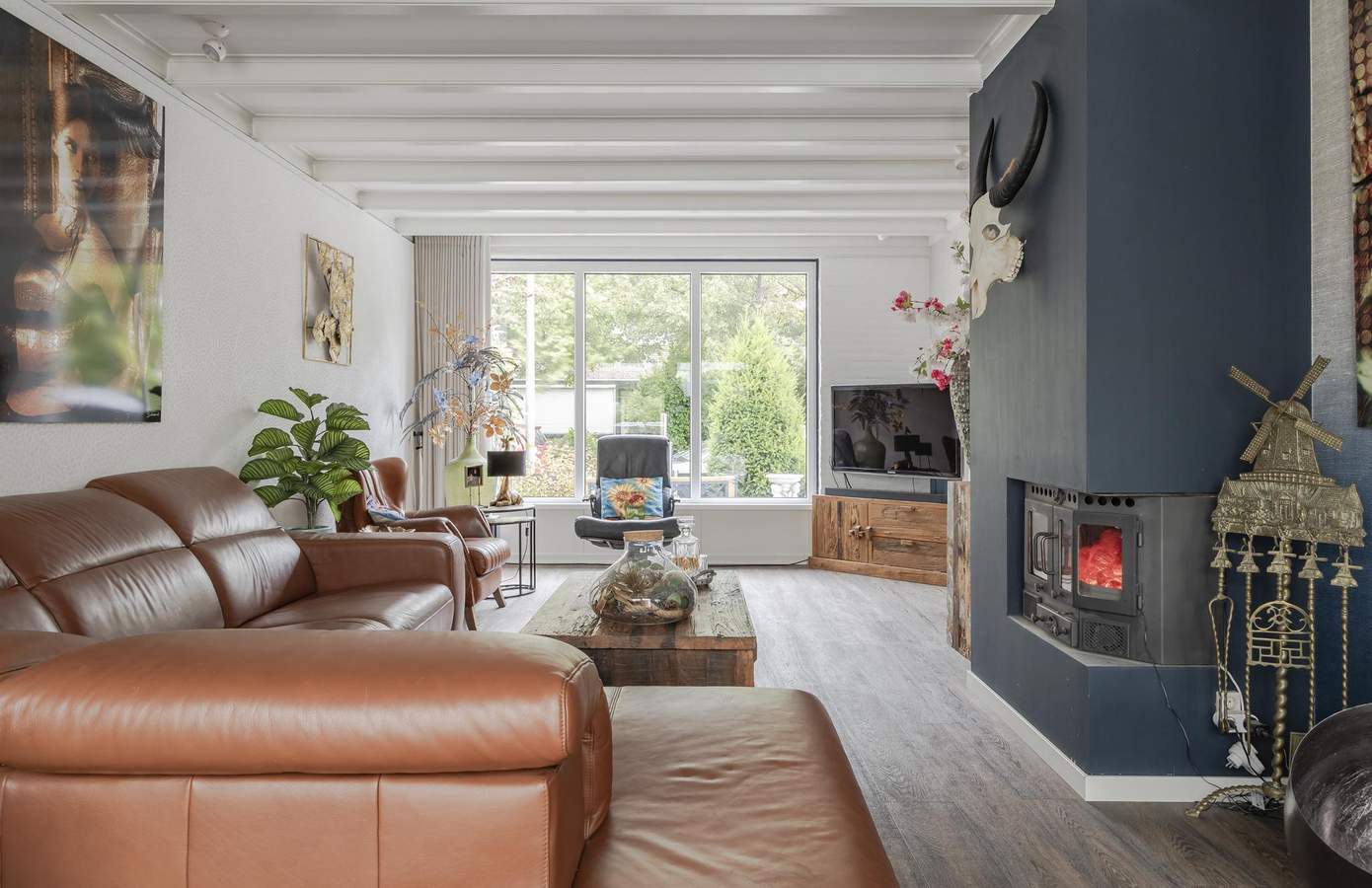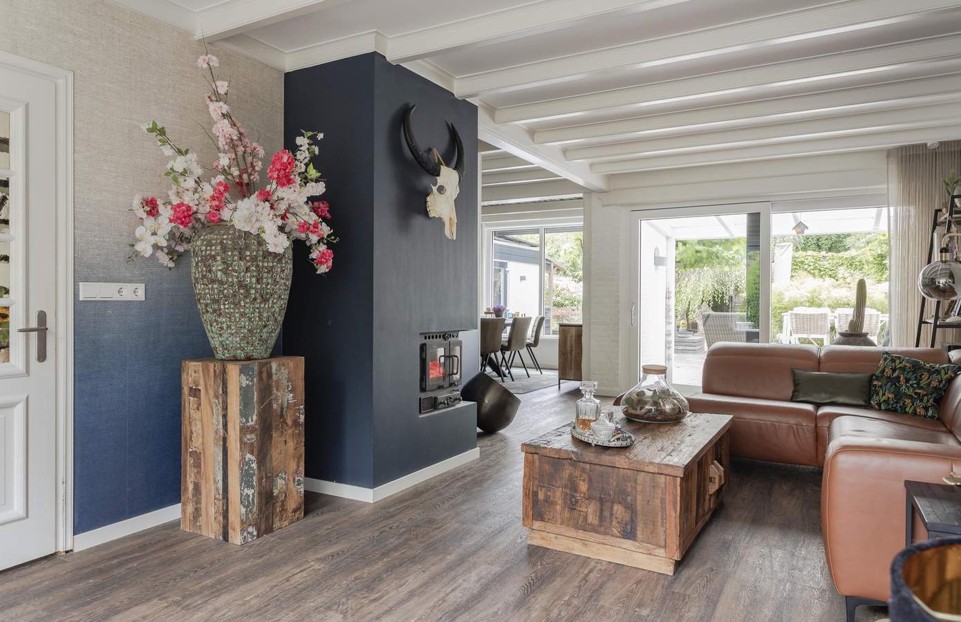 Bij binnenkomst via de ruime hal wordt u verwelkomd in de woonkamer, gelegen aan de voorzijde van de woning. Deze sfeervolle ruimte met een houtkachel loopt door naar de achterzijde, waar een schuifpui toegang geeft tot de terras overkapping in de achtertuin. Hier kunt u de dag in alle rust beginnen met een kopje koffie. De eetkamer sluit aan op de halfopen keuken, die is uitgerust met moderne inbouwapparatuur. In de eetkamer geniet u van een grote raampartij richting de achtertuin, waardoor binnen en buiten gemakkelijk in elkaar overgaan en u volop van uw tuin kunt genieten. De keuken is bovendien verbonden met de inpandige garage en de veelzijdige salon-/praktijkruimte, een plek met tal van mogelijkheden.