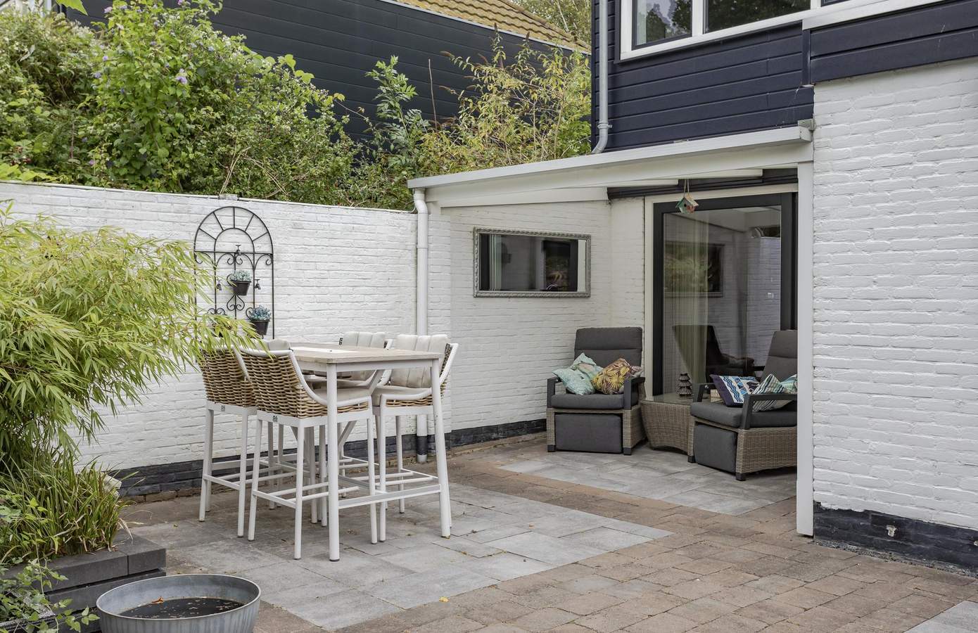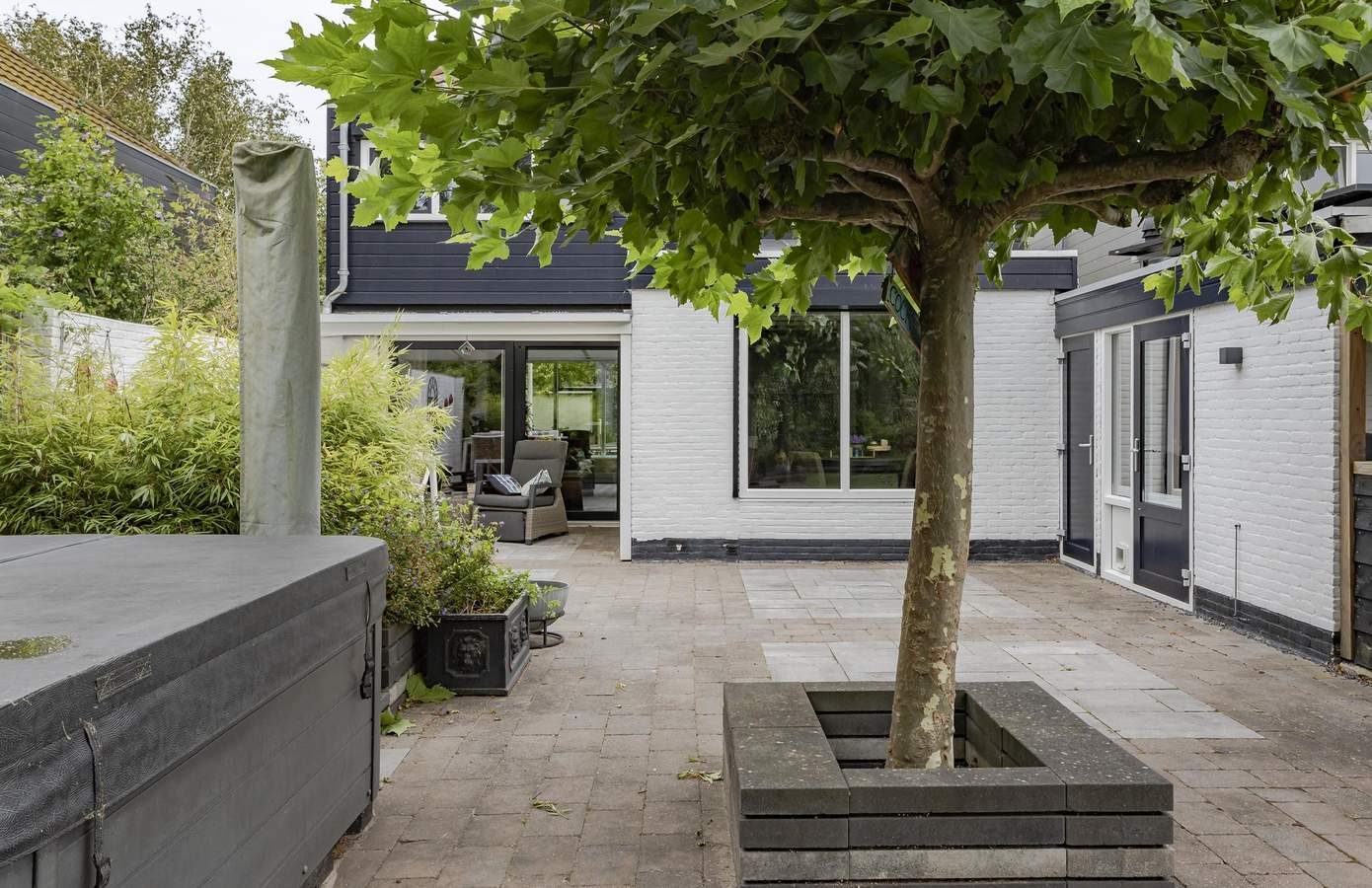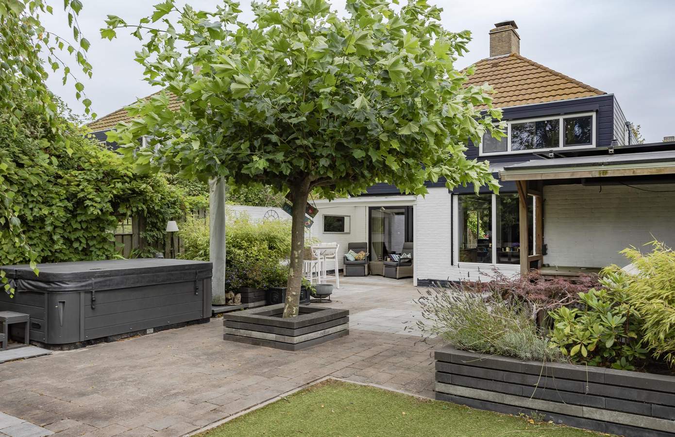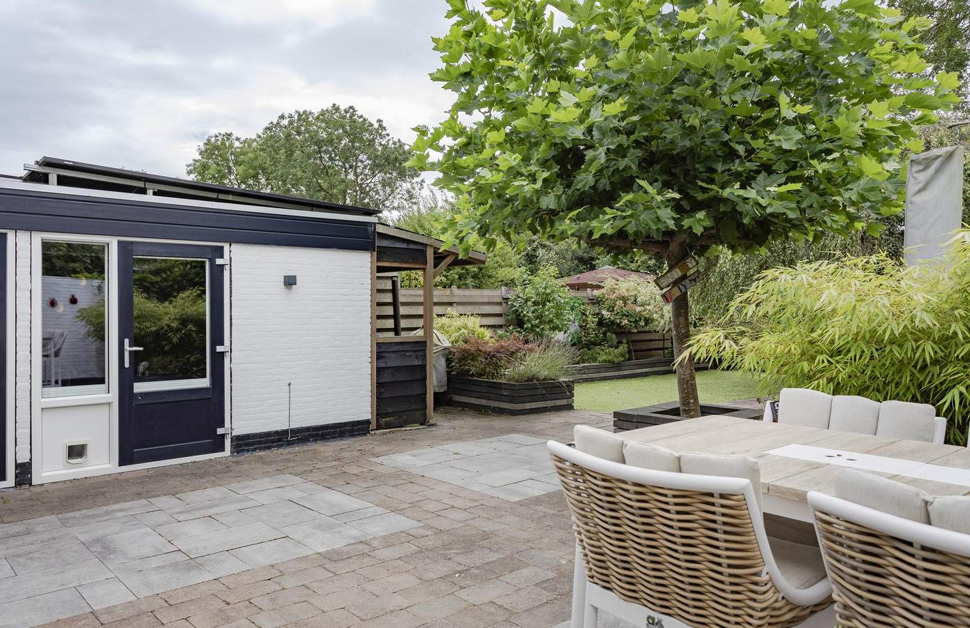 Deze woning staat op een ruim perceel van 341m² en heeft een grote achtertuin op het zonnige zuidwesten. Dankzij het groen aan de achterzijde is er geen inkijk en ervaart u volop privacy. Hier kunt u de hele dag van de zon genieten dankzij de verschillende zitplekjes verspreid door de tuin. Direct aan de woning is een comfortabele terrasoverkapping, en verder achterin de tuin vindt u een ruime overkapping, momenteel ingericht met een sfeervolle buitenhaard en heaters, waar u ook in de koelere maanden van het buitenleven kunt genieten. Voor liefhebbers van barbecueën is er een plek ingericht voor een buitenkeuken. Vanuit de achtertuin heeft u ook directe toegang tot de salon, wat het gebruik van de woning en tuin extra veelzijdig maakt. De tuin biedt veel privacy, comfort en luxe, en is perfect voor elk seizoen.