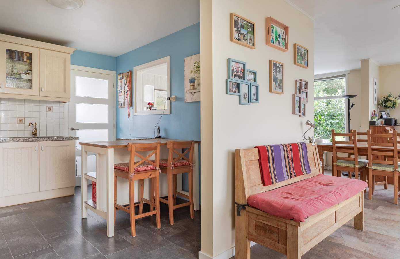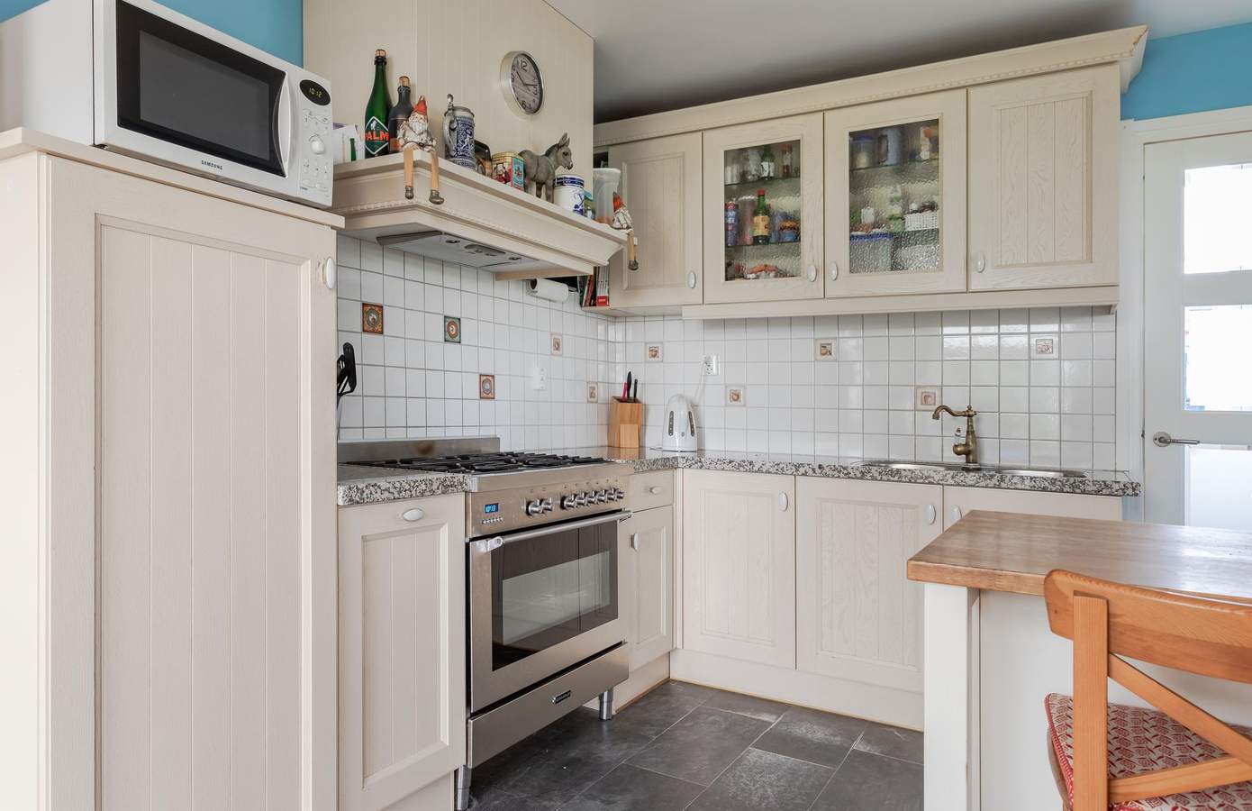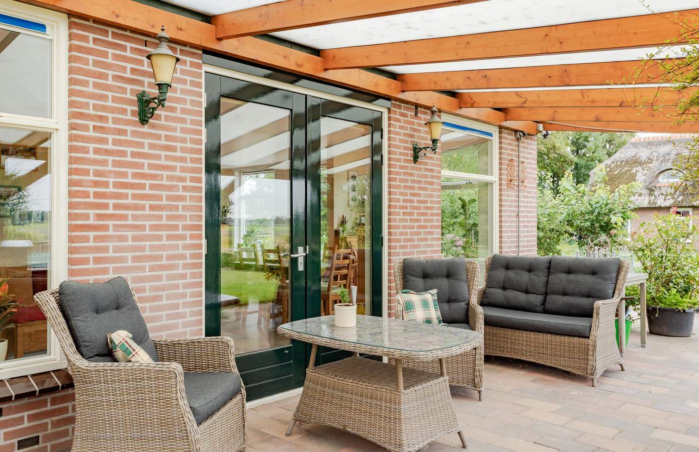 Dat kan hier uiteraard via de voordeur, maar zoals gebruikelijk in dorpen, is de toegang eigenlijk via de tuin aan de achterzijde. Via de openslaande deuren stapt u binnen in de L-vormige woonkamer. Aan de linkerkant bevindt zich de toegang tot de inpandige berging. Dankzij de royale raampartijen heeft de woning veel daglicht en geniet u overal van het uitzicht. De landelijke keuken heeft veel opbergruimte en heeft een opvallend groot 6-pits gasfornuis met oven. Via de keuken betreedt u de ruimte die momenteel dienstdoet als hondentrimsalon, maar ook perfect is voor een eigen praktijk aan huis, met een aparte ingang om werk en privé te scheiden. Via de hal bereikt u de eerste verdieping met 3 slaapkamers, een badkamer met inloopdouche en toilet. De hoofdslaapkamer biedt toegang tot de ruime vliering, hier is nog extra ruimte, ideaal ivoor het opbergen van uw spullen.