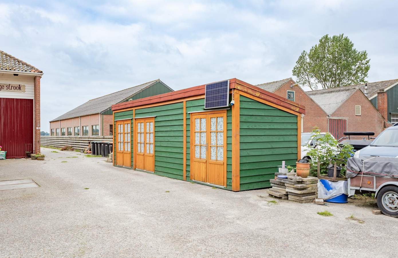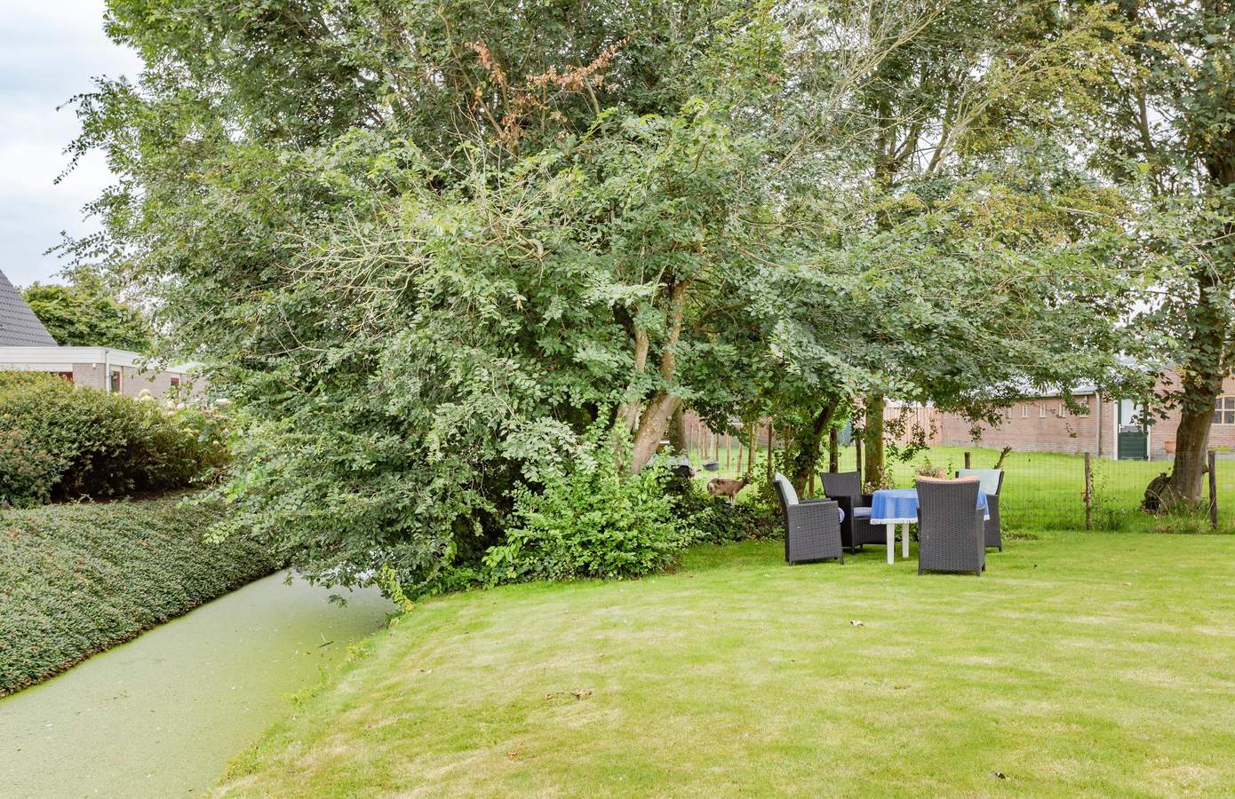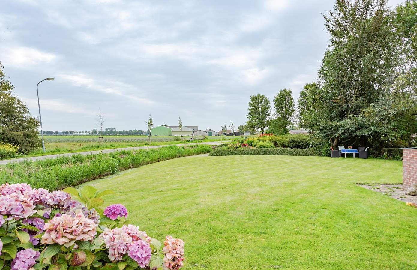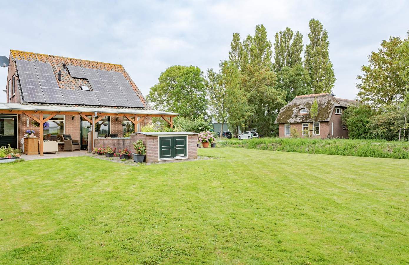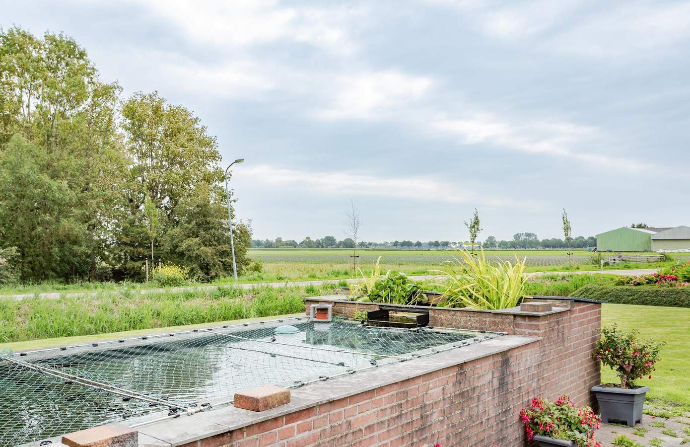 Via de openslaande deuren betreedt u direct de tuin, waarlangs een overkapping over de gehele linkerzijde loopt, hierdoor geniet u altijd van het buitenleven. Een opvallend kenmerk is de aangelegde stenen vijver met een natuurlijke, mechanische filter, een ware lust voor liefhebbers van vissen. De tuin verder is royaal en diep, en biedt een prachtig uitzicht over de aangrenzende landerijen, hier ervaart u echt rust. Vanaf de oprit verleent u het recht van overpad aan de bewoners van nummer 11A. Op de oprit staat een ruime schuur (20 m²), opgedeeld in drie delen, ideaal voor fietsen, tuingereedschap en bijvoorbeeld uw motor.