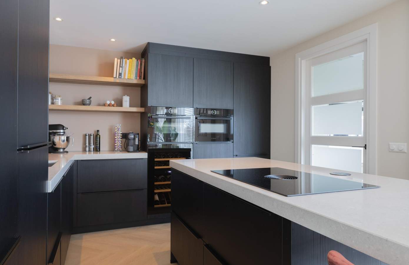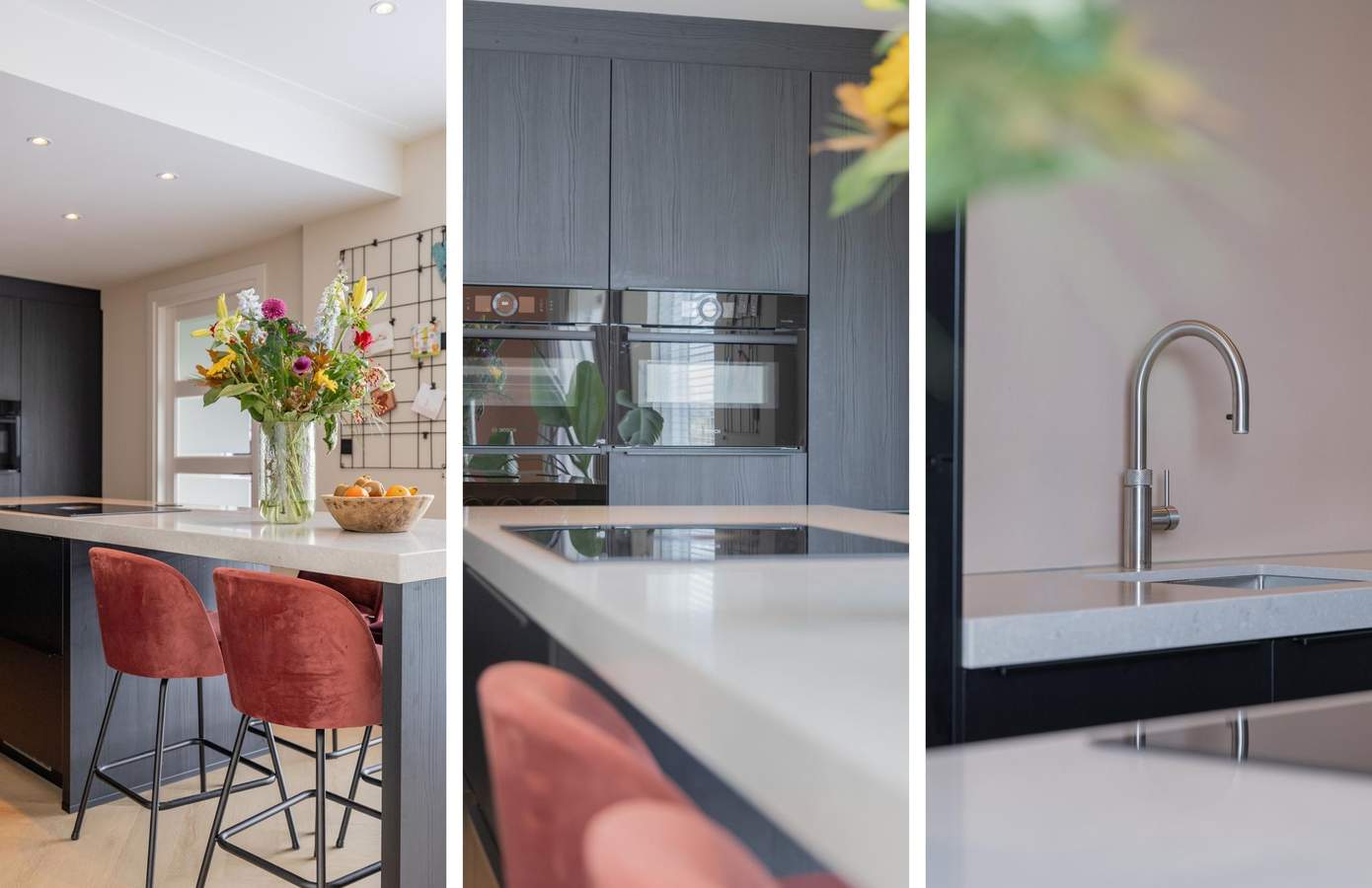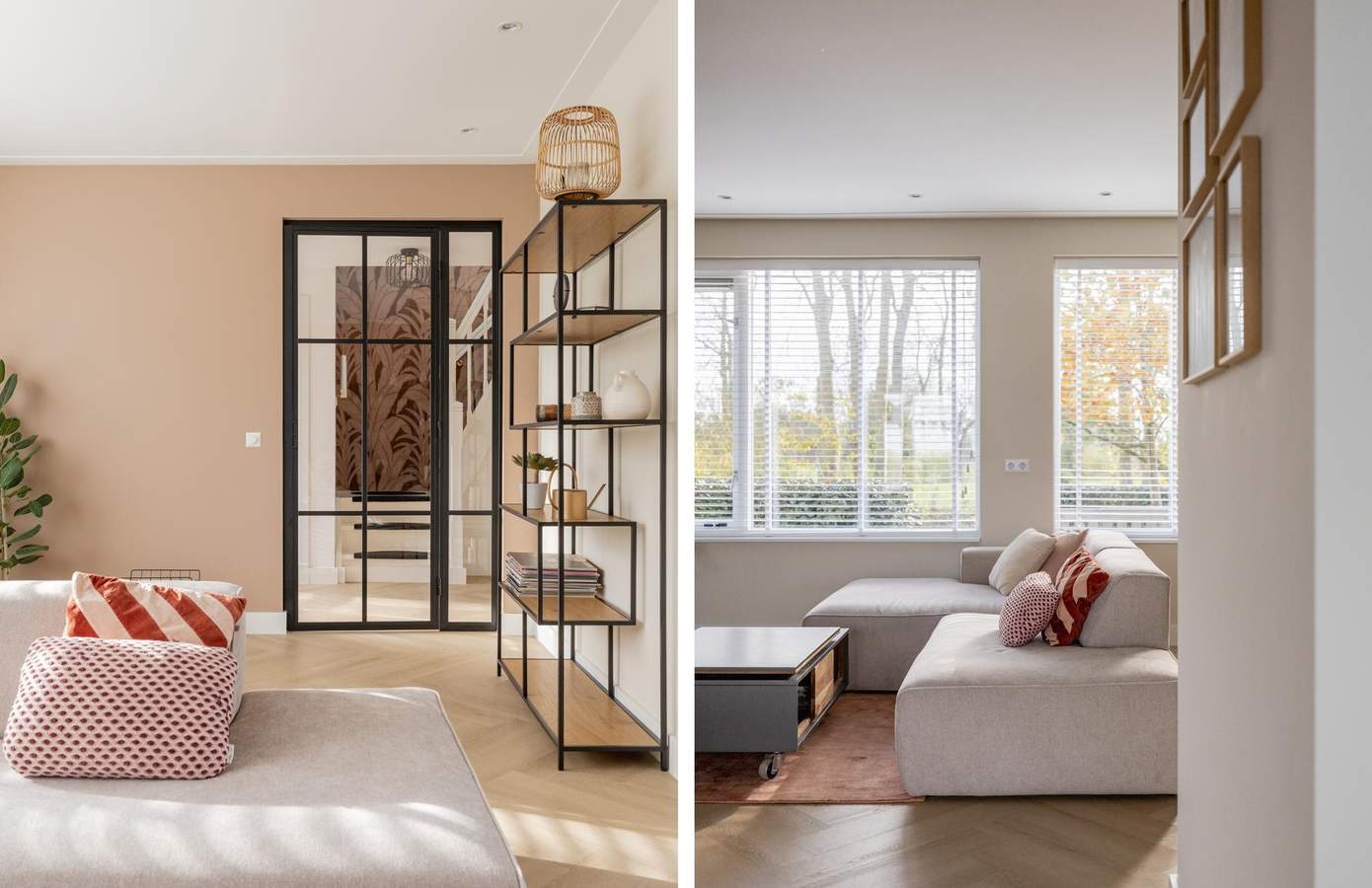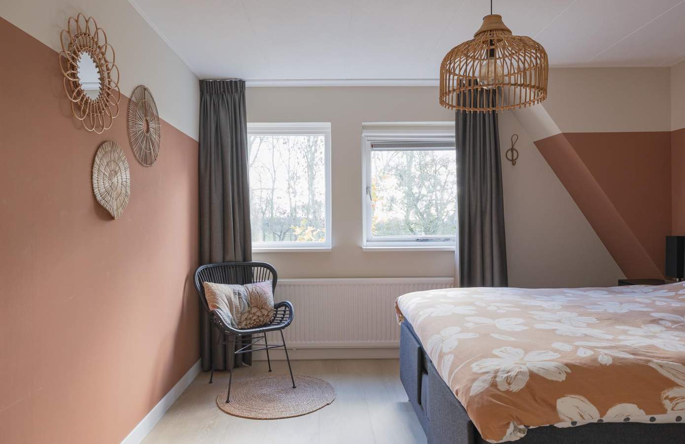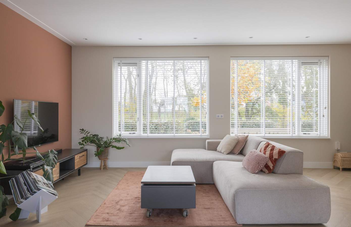 Bij binnenkomst voelt u direct de moderne en warme sfeer die dit huis kenmerkt. In 2021 is de gehele begane grond tot in detail gerenoveerd: van vloeren tot plafonds, van indeling tot verlichting. De stijlvolle visgraatvloer, gladde wanden, inbouwverlichting en hoogwaardige afwerking zorgen voor een eigentijdse en moderne uitstraling. De keuken is strak vormgegeven met een kookeiland, luxe inbouwapparatuur en een prettige verbinding met de eethoek. Vanuit de eethoek heeft u aan de achterzijde een adembenemend uitzicht over de landerijen. Grenzend aan de keuken bereikt u de bijkeuken, ook deze is naast dat de ruimte functioneel is, ook stijlvol. Een op maat gemaakt meubel biedt ruimte aan een koelkast, de wasmachine en droger en er is een aparte wasbak.