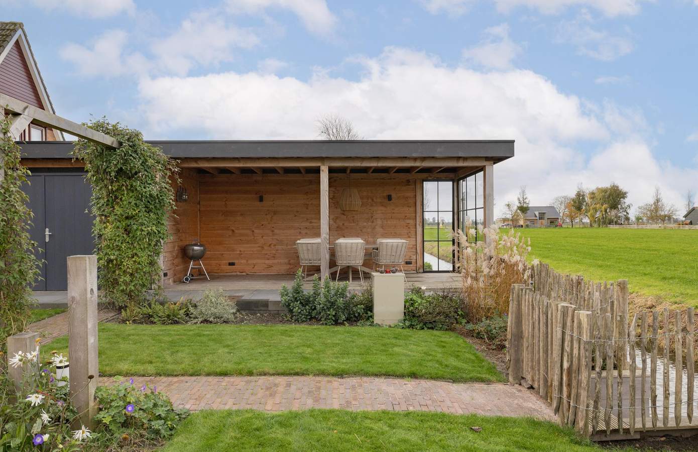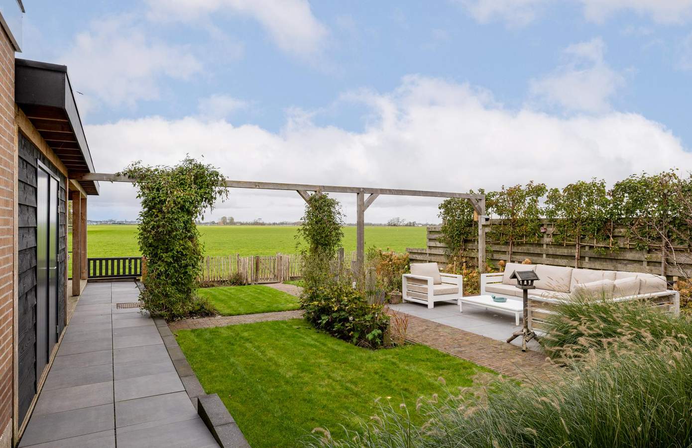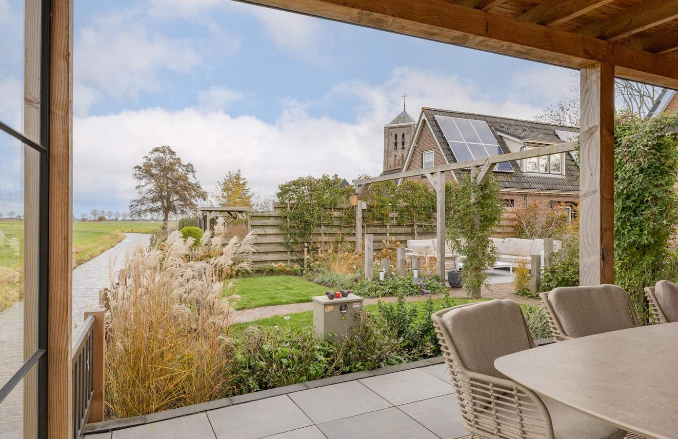 De tuin, aangelegd in 2023, sluit perfect aan op het omringende landschap. De combinatie van strakke bestrating, sierlijke beplanting en open zichtlijnen creëert een gevoel van vrijheid en rust. Aan de achterzijde vindt u een robuuste veranda met verlichting en aansluitingen voor heaters, perfect om het hele jaar door te genieten. Aan het water is de vlonder een heerlijke plek om te zitten en te genieten van het weidse, vrije uitzicht. Hier ervaart u elk seizoen op z’n best: in de winter stapt u zó vanuit huis het ijs op, terwijl u in de zomer een bootje te water kunt laten. Een plek waar het buitenleven nooit verveelt. Bovendien kunt u meerdere auto’s op eigen erf parkeren.