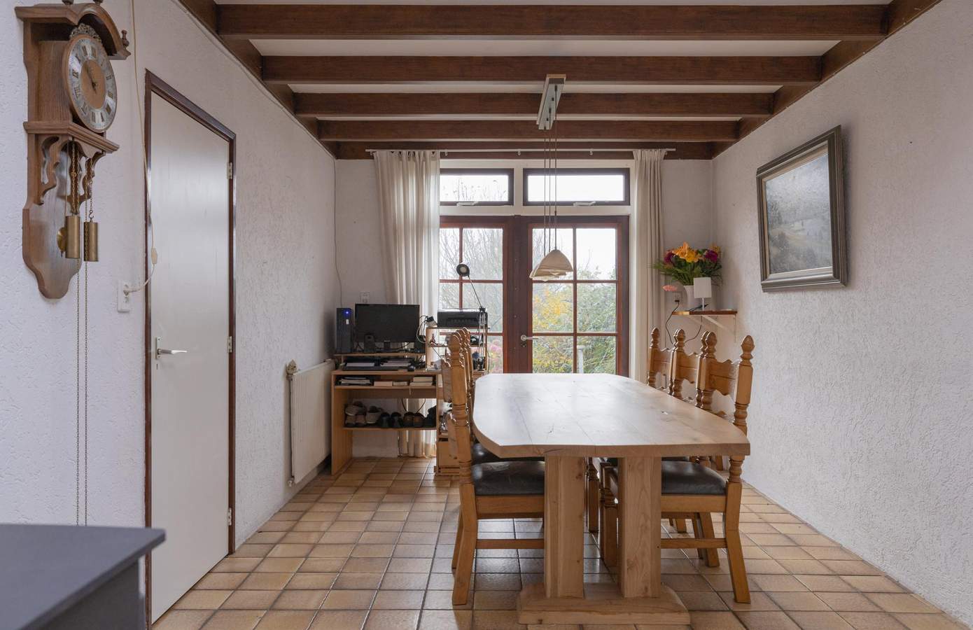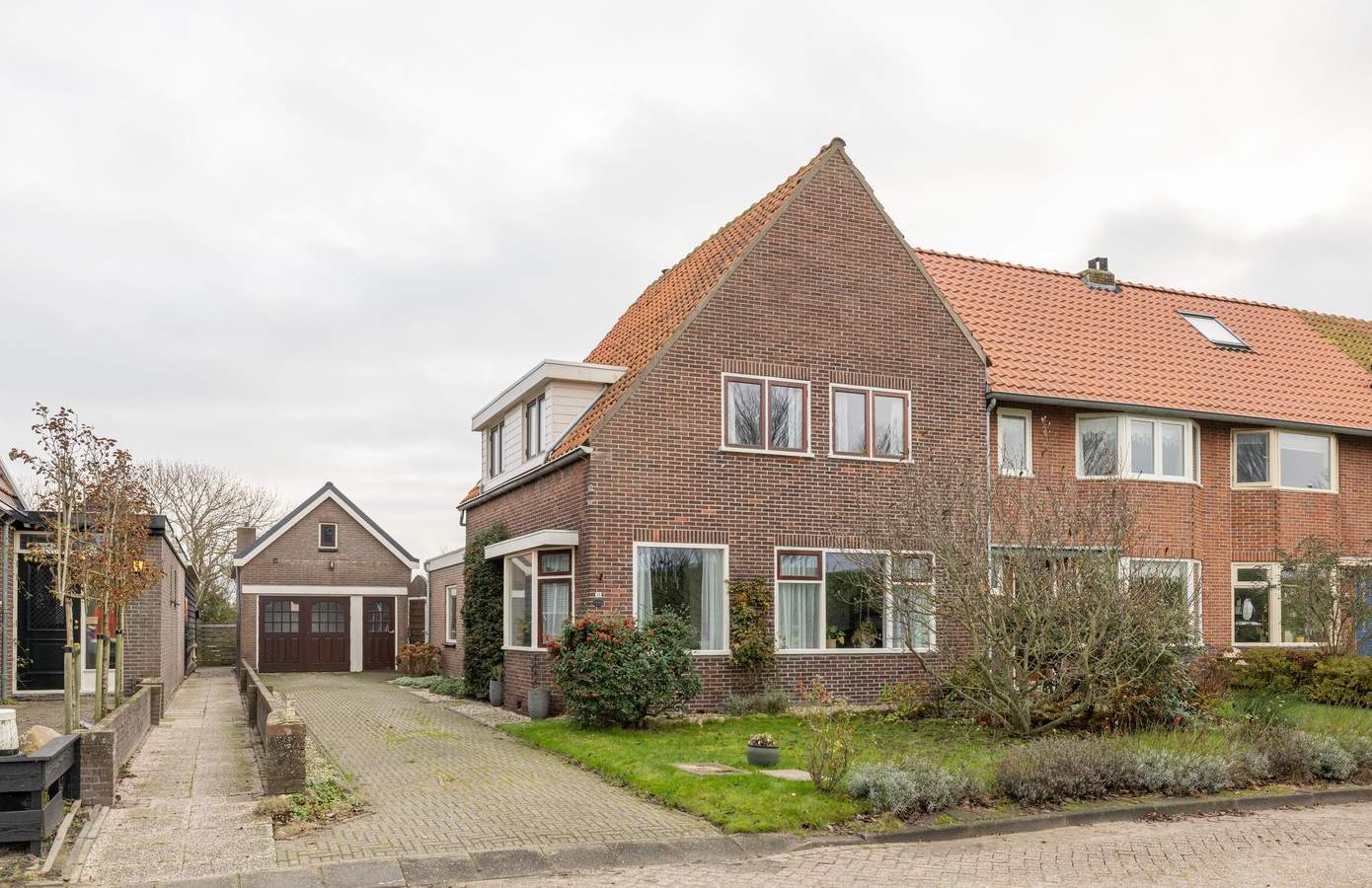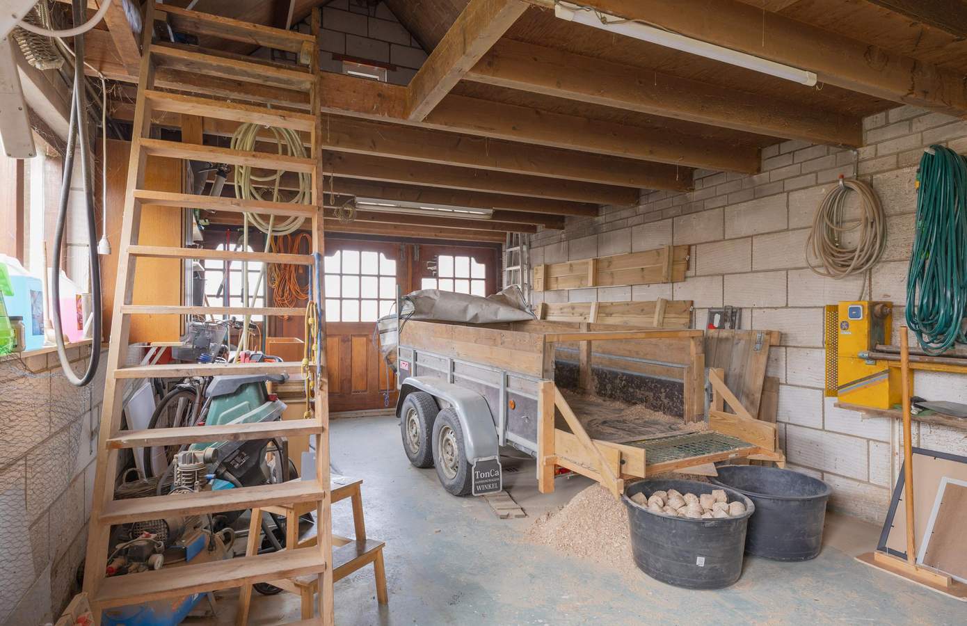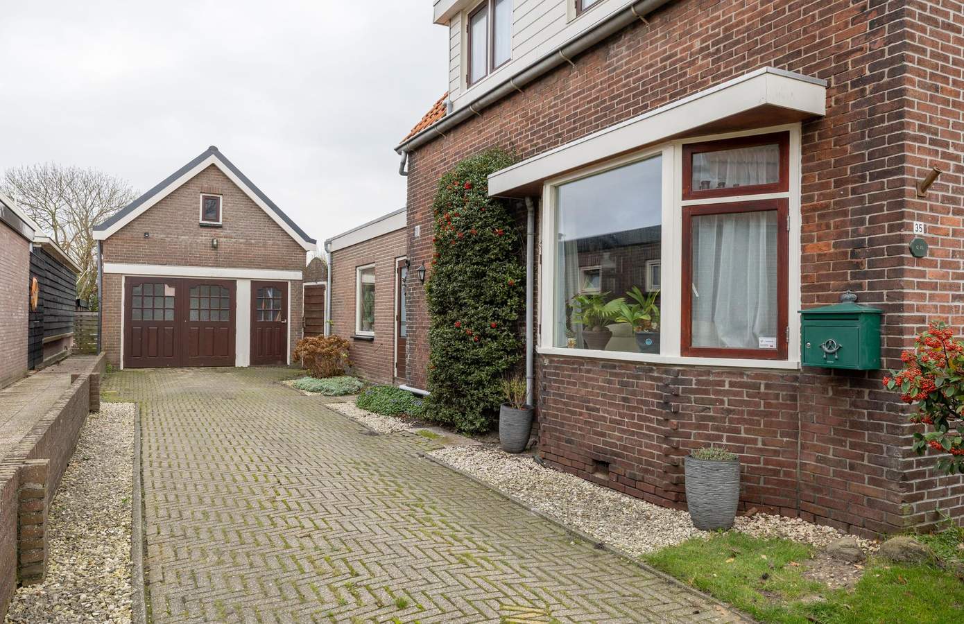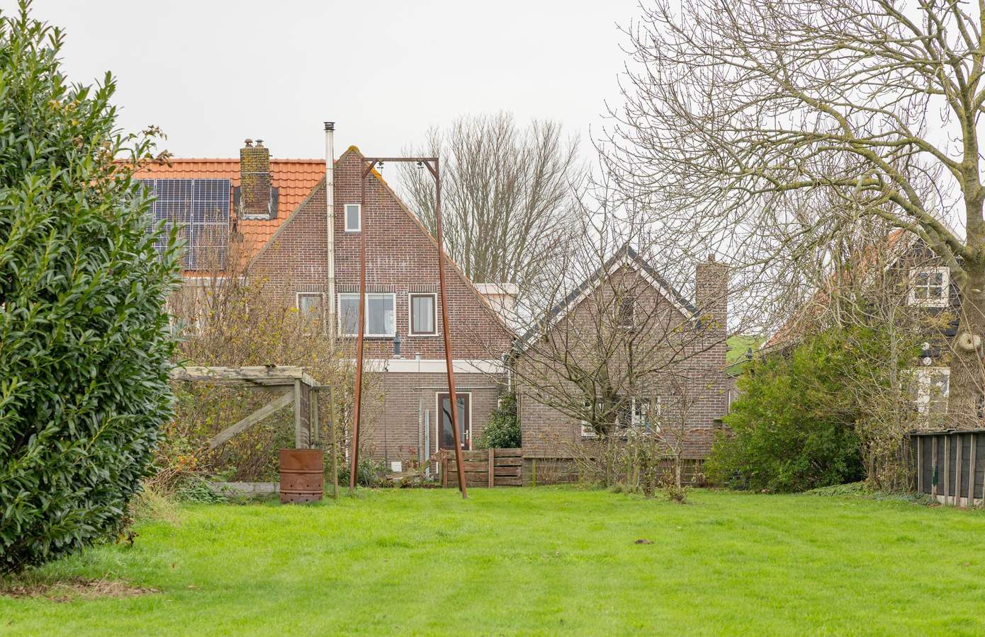 Zodra u de deur naar de tuin opent, ziet u een langgerekt perceel waar rust en ruimte de hoofdrol spelen. Het grootste deel bestaat uit een brede, groene grasmat die naadloos overgaat in het landelijke landschap achter de woning. Hier kunt u wandelen, tuinieren, spelen of simpelweg genieten van het open uitzicht. Verspreid door de tuin vindt u diverse volwassen beplanting en fruitdragende bomen, waaronder kersen, appel, peer, framboos en meerdere bessenstruiken. Daarnaast beschikt de woning over een praktische vrijstaande stenen garage, voorzien van elektra en een ruime vliering. De garage is royaal van formaat en biedt ruimte voor één tot twee auto’s, opslag of hobby’s. Het dak is in 2022 vernieuwd, waardoor de basis op orde is en u hier met gemak verder kunt klussen of opbergen. Op het eigen pad is bovendien plaats voor nog eens één tot twee auto’s, waardoor parkeren altijd zorgeloos verloopt.