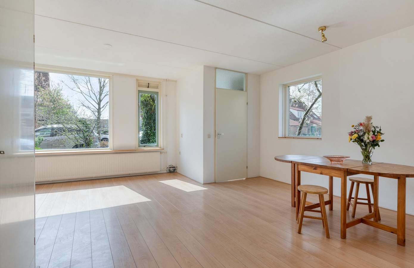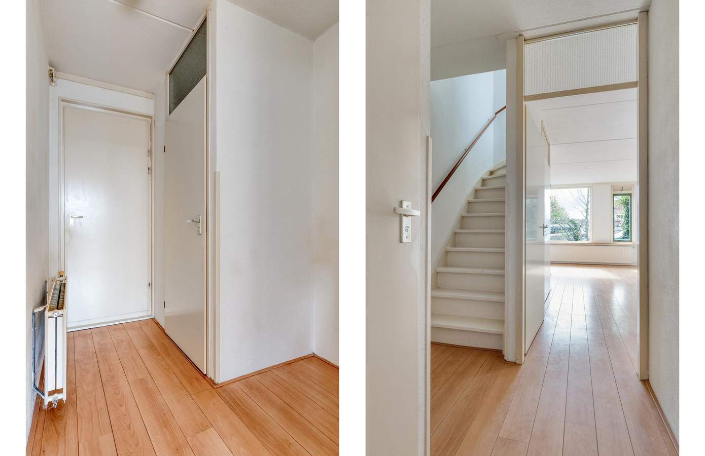 Via de entree komt u binnen in de hal met garderobe en meterkast. Vanuit hier loopt u de lichte woonkamer in, waar de grote raampartijen zorgen voor een warme en ruimtelijke sfeer. Door de hoekligging is er ook aan de zijkant van de woning een raam wat zorgt voor een licht en open karakter in de ruimte. De keuken bevindt zich aan de achterzijde en is opgesteld in een praktische hoekopstelling. Vanuit hier is er een mooi uitzicht op de diepe achtertuin. Via de hal waar ook het toilet zich bevindt, komt u op de eerste verdieping en treft u drie slaapkamers van goed formaat en de badkamer, voorzien van ligbad, wastafel en tweede toilet. De ruimtes bieden een perfecte basis om naar eigen smaak te benutten, in te richten en eventueel te moderniseren. De tweede verdieping is een zeer lichte, verrassend ruime en open zolderverdieping. Door de hoogte, het dakraam en extra zijraam is dit een volwaardige verdieping, die u naar eigen behoefte kunt gebruiken als extra slaapkamer, werk- en of hobbykamer.