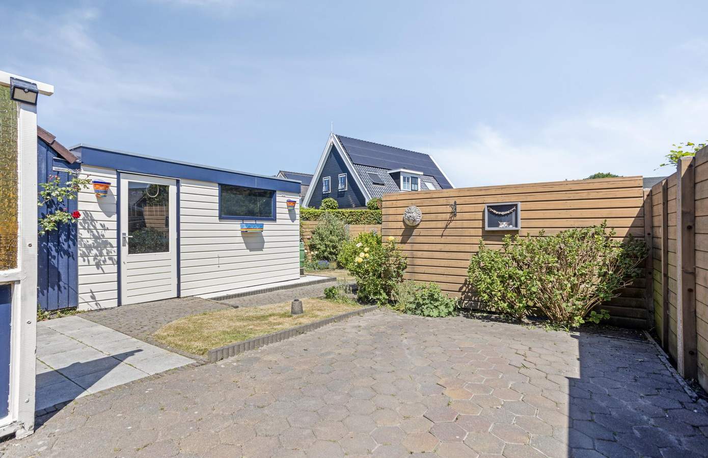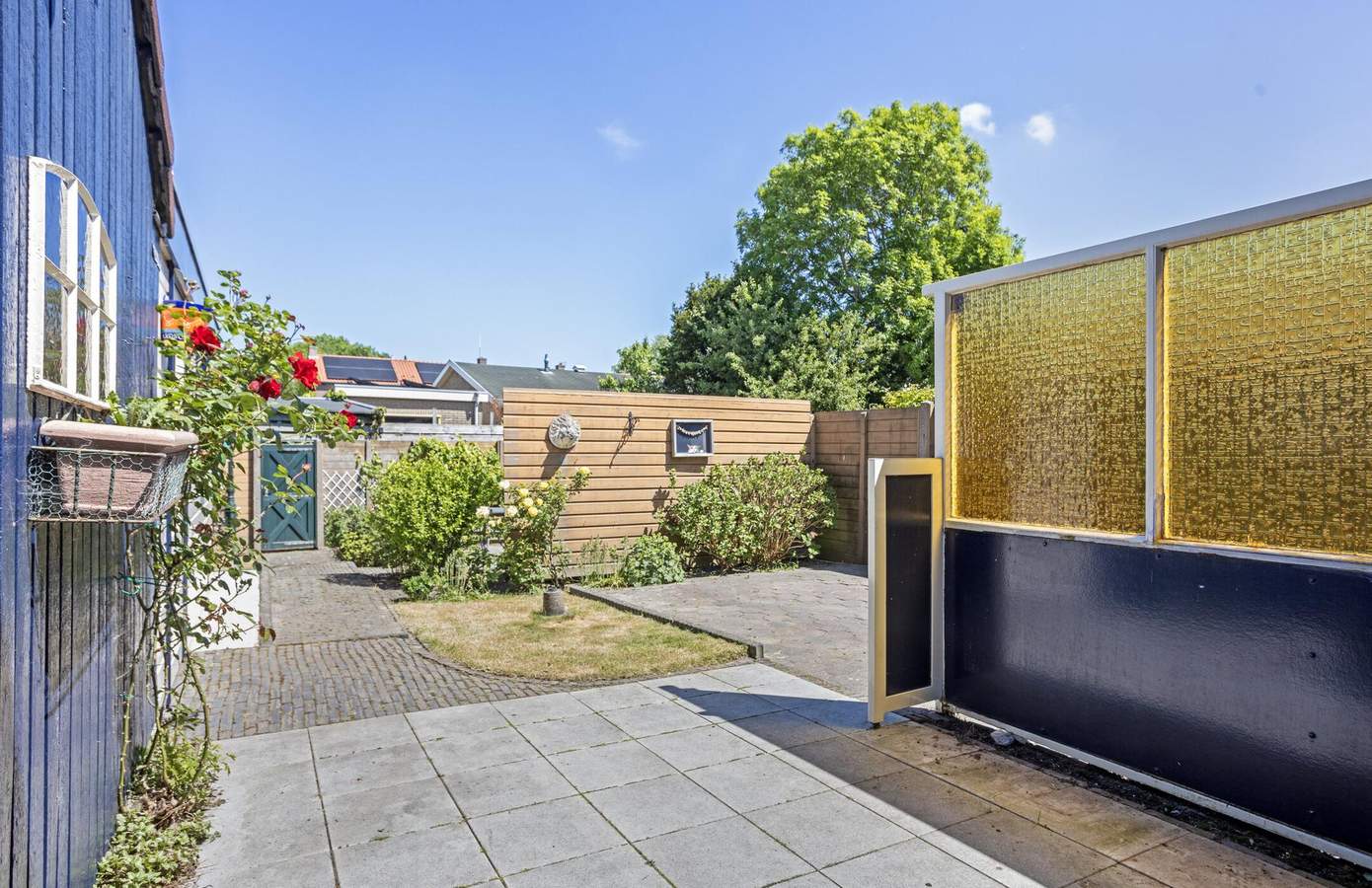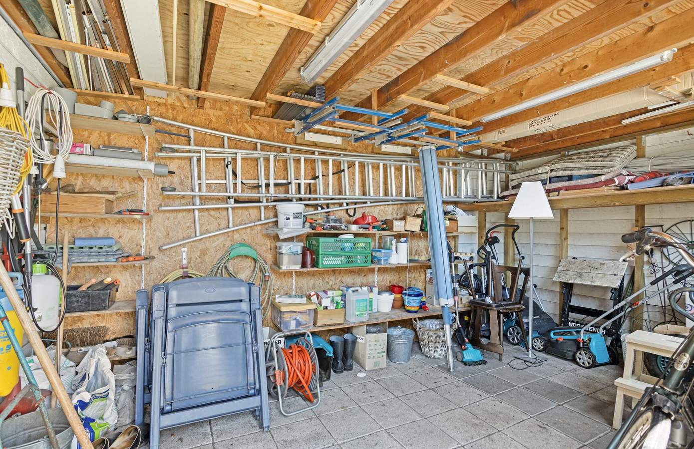 De fraai aangelegde achtertuin, gelegen op het noorden, is een heerlijke plek om buiten te leven. Direct achter de woning ligt een royaal terras met windscherm, waar u al vroeg in het jaar beschut van de zon kunt genieten. Dieper in de tuin staan borders vol kleurige bloemen en planten, waar zich ook nog een tweede terras bevindt. Aangrenzend aan de woning staat een houten berging met elektra, ideaal voor het veilig opbergen van fietsen en tuingereedschap. Langs de zijkant van het huis ligt een ruime oprit met plaats voor meerdere auto’s en dankzij de poort is de tuin ook achterom bereikbaar.