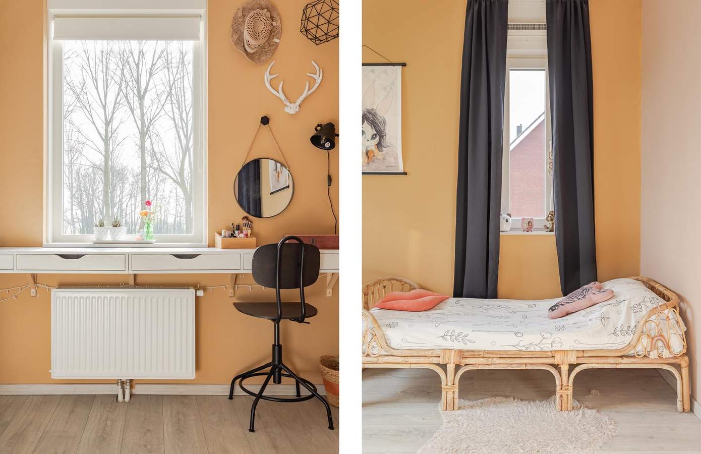 Een vaste trap leidt naar de tweede verdieping, waar nog twee slaapkamers te vinden zijn. Daarnaast is hier een praktische washoek ingericht. Boven deze kamers is een vliering gecreëerd, ideaal voor extra opbergruimte.