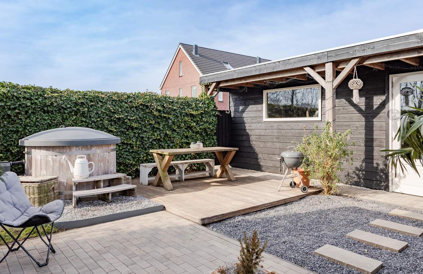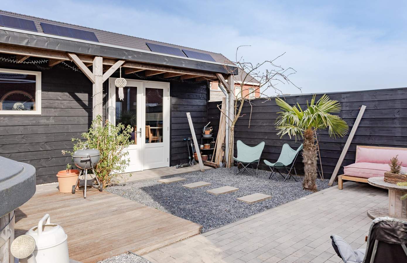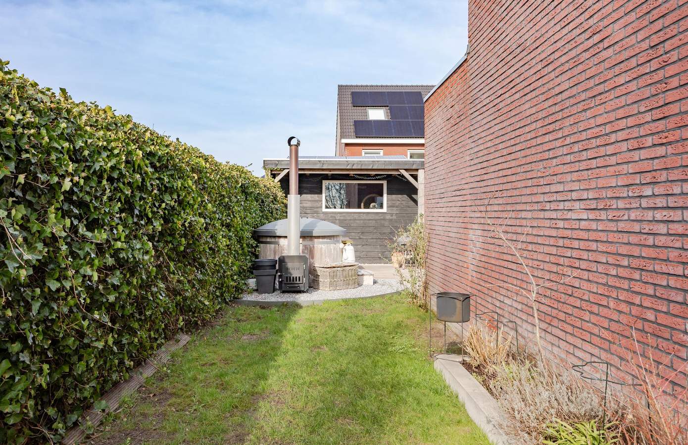 Via de schuifpui in de woonkamer betreedt u de sfeervolle achtertuin, die met zorg en aandacht is onderhouden. Dankzij de gunstige zonligging geniet u hier de hele dag van de zon. De zij- en achtertuin bieden volop ruimte om te ontspannen of om diverse buitenactiviteiten te ondernemen. De tuin is tevens toegankelijk via een poort aan de zijkant van schutting, waardoor u de tuin eenvoudig vanaf de straatzijde kunt bereiken. De garage biedt tal van mogelijkheden voor hobbyisten en beschikt over voldoende ruimte. Daarnaast heeft de garage een eigen ingang aan de straatzijde en biedt deze de mogelijkheid om een auto binnen te parkeren. Aan de voorzijde van de woning bevindt zich nog een elektrische laadpaal.