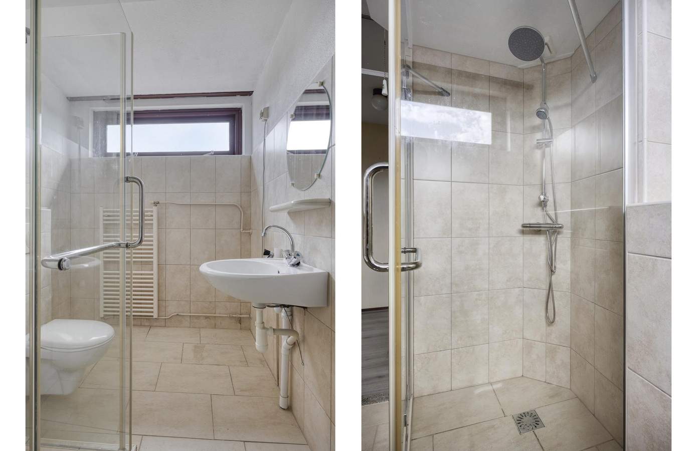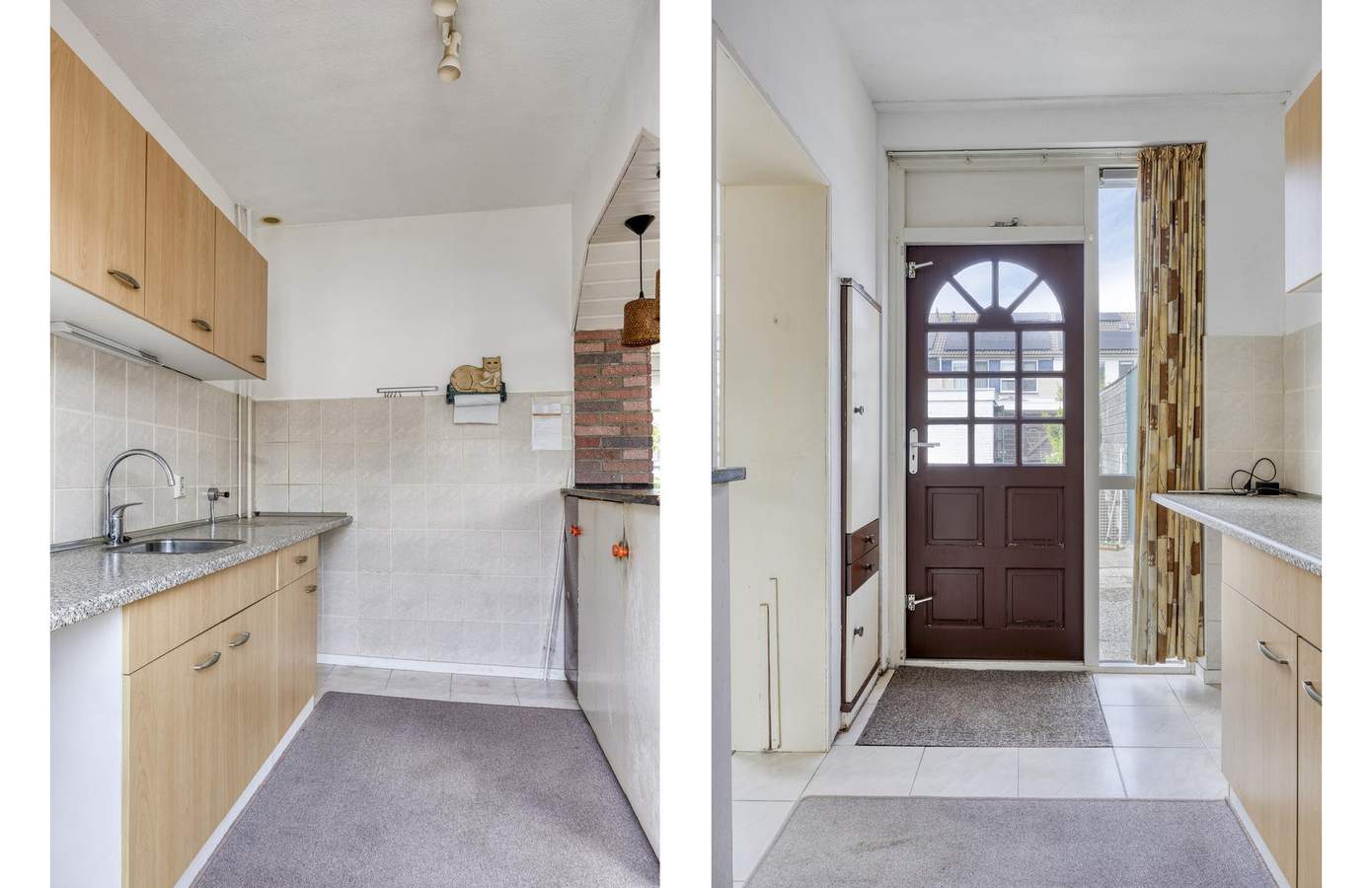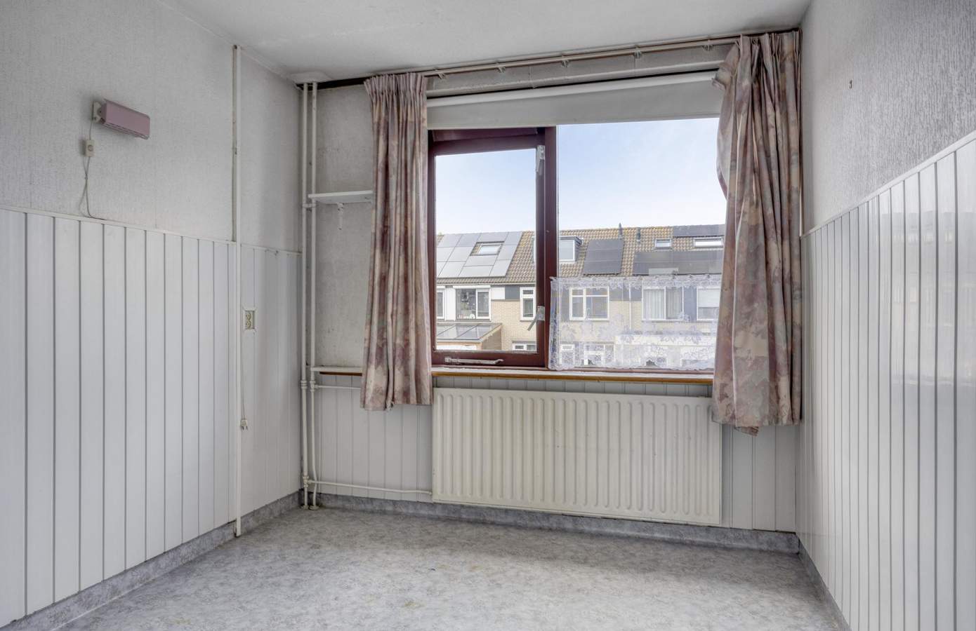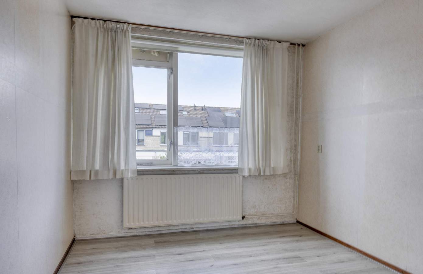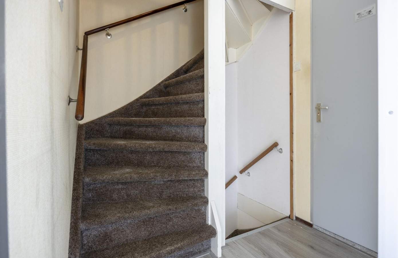 U komt binnen in de hal met toilet, meterkast en trapopgang naar de eerste verdieping. Vanuit de hal loopt u door naar de lichte doorzonwoonkamer, waar de grote ramen aan zowel de voor- als achterzijde zorgen voor een prettige lichtinval gedurende de hele dag. De halfopen keuken is eenvoudig maar functioneel, voorzien van boven- en onderkasten en een aanrechtblad met dubbele spoelbak. Vanuit de keuken heeft u direct toegang tot de achtertuin, waardoor koken en buiten tafelen in de zomermaanden hand in hand gaan. Op de eerste verdieping bevinden zich drie slaapkamers, waarvan twee ruime kamers en één kamer die ideaal is als werk- of hobbykamer. De badkamer is betegeld en beschikt over een inloopdouche, wastafel, aansluiting voor de wasmachine en tweede toilet. Op de tweede verdieping vindt u via een vaste trap de vierde slaapkamer, compleet met een kantelraam en extra bergruimte achter de knieschotten.