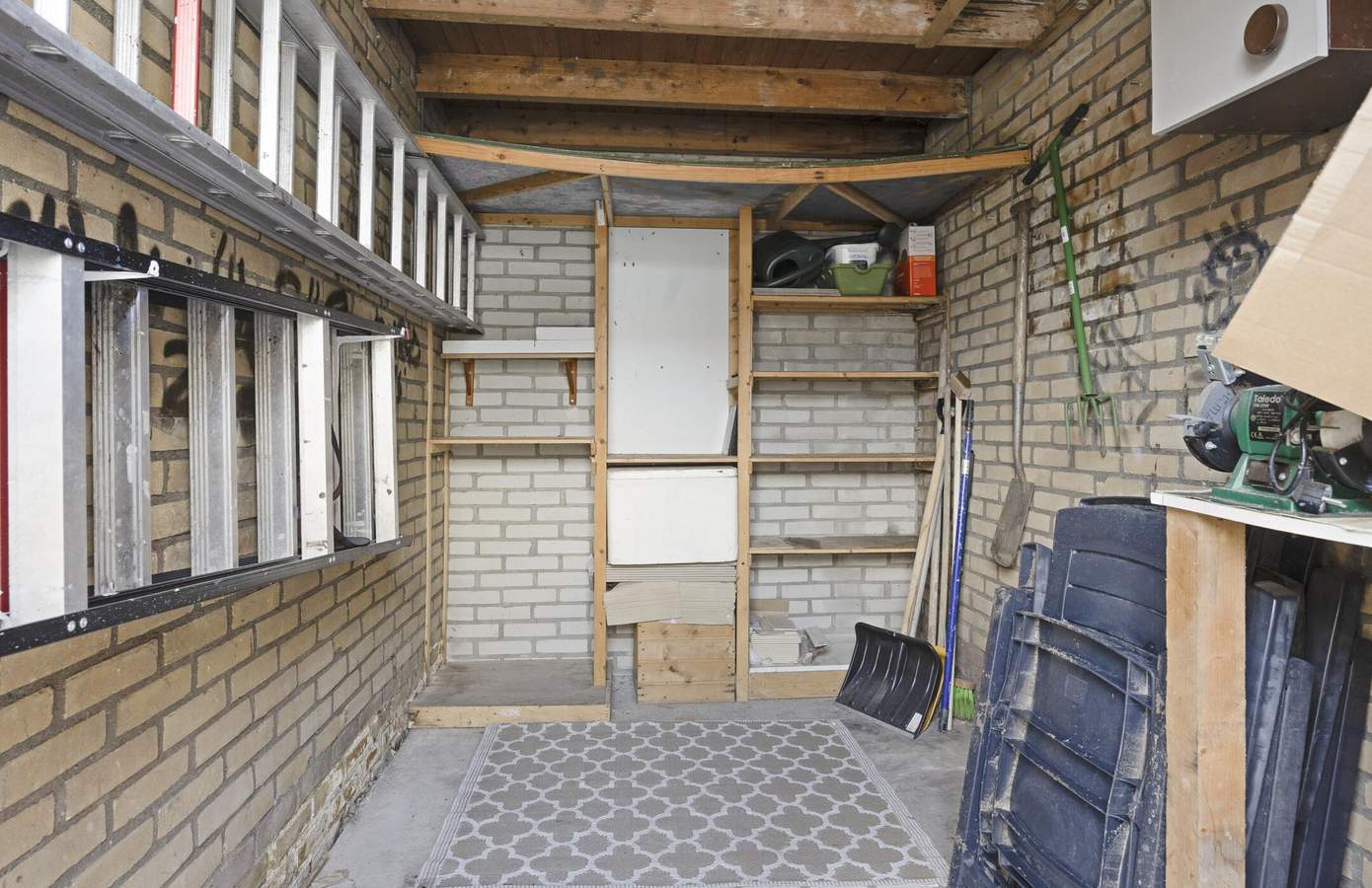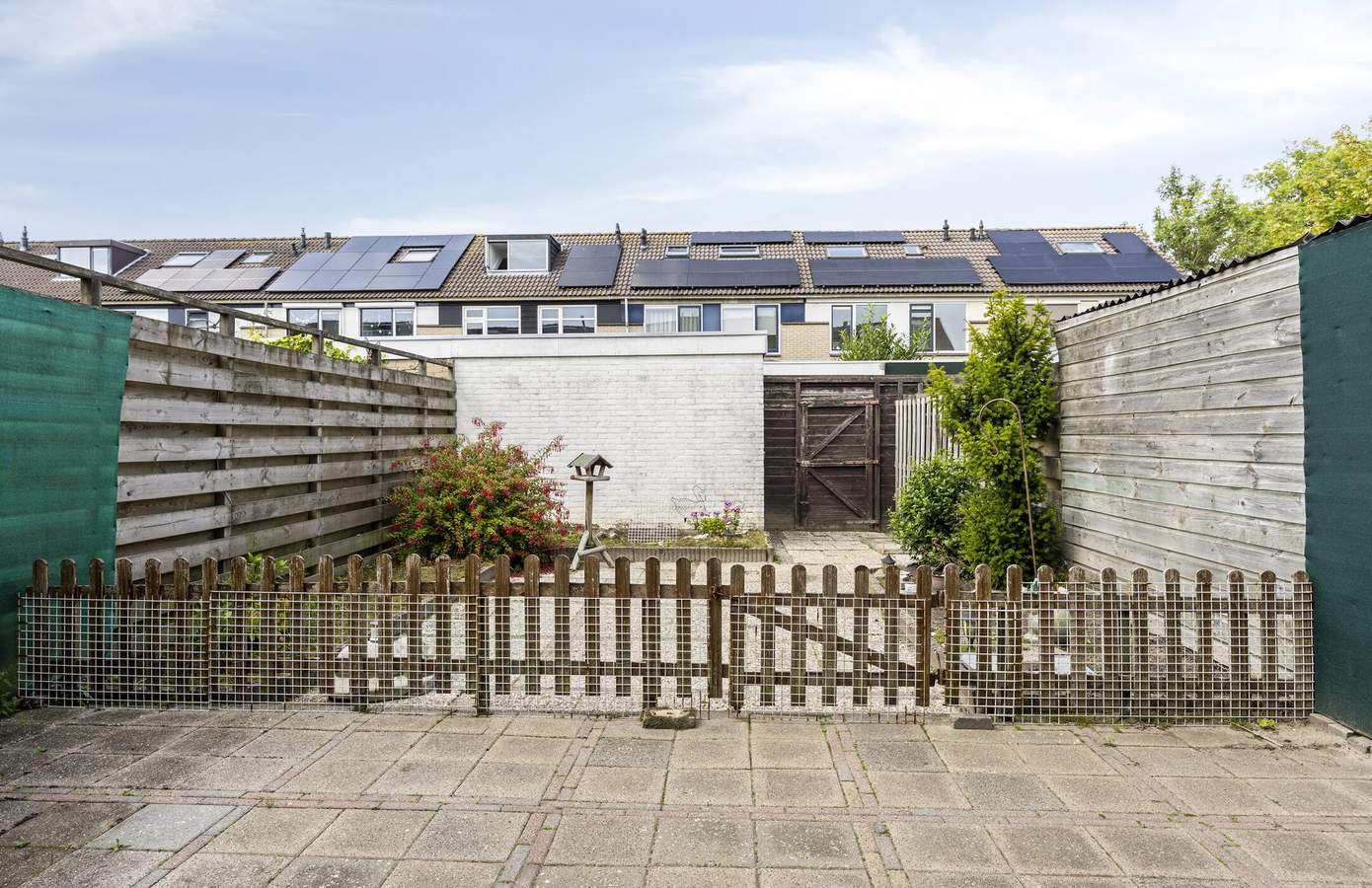 De achtertuin is onderhoudsvriendelijk aangelegd met bestrating en deels beplanting, en is ideaal gelegen op het zuiden. Hierdoor kunt u de hele dag door van de zon genieten. Achter in de tuin staat een stenen berging met ruimte voor fietsen, gereedschap en opslag. De tuin is bereikbaar via een handige achterom. Aan de voorzijde van de woning beschikt u over een eigen oprit met plaats voor uw auto, wat zorgt voor extra gemak.