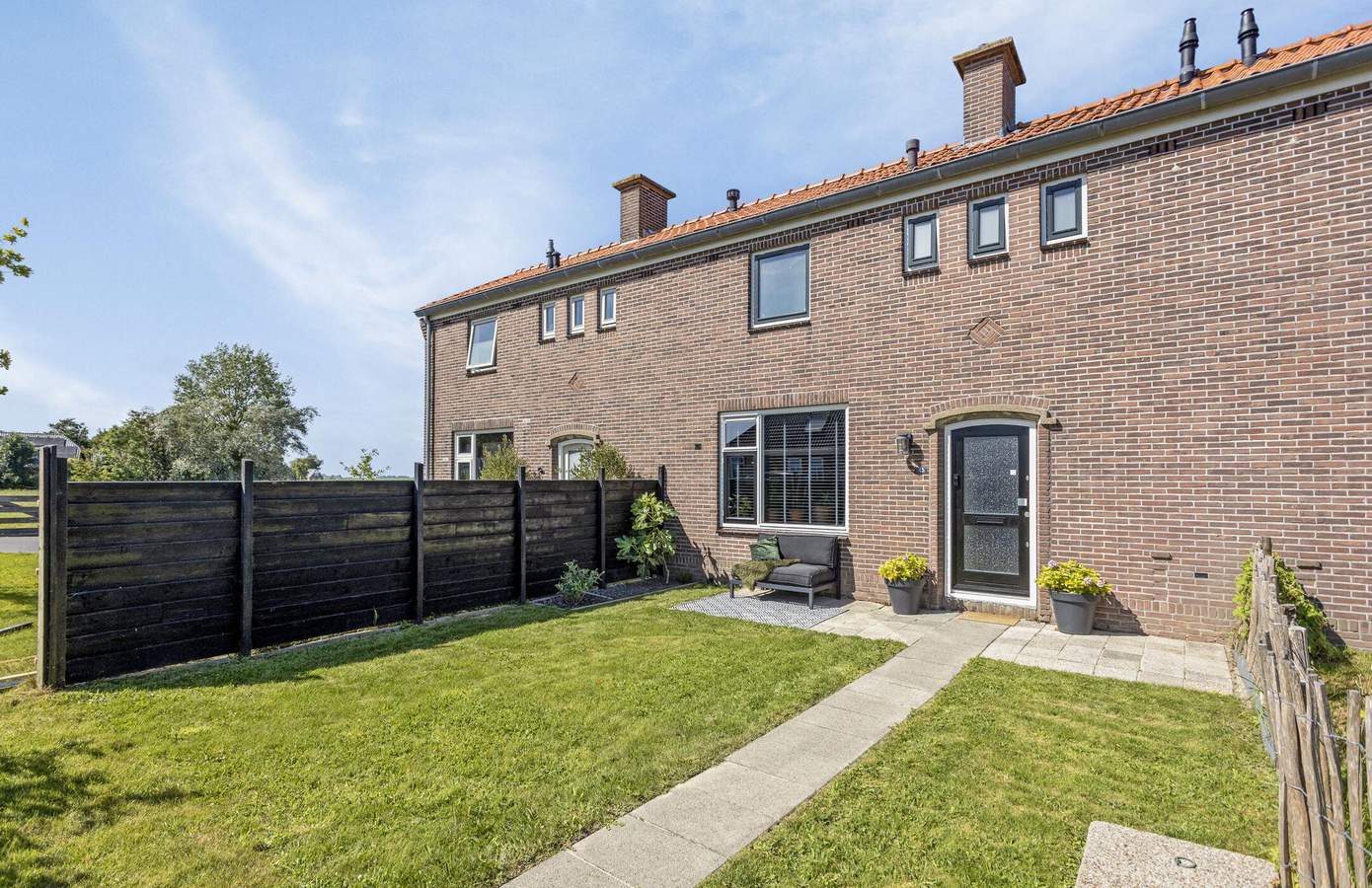 Buiten geniet je volop van deze landelijke plek. Aan de achterzijde is het van vroeg in het voorjaar tot ver in het najaar heerlijk onder de veranda (13 m²). Verder is de tuin ruim 20 meter diep met gazon en het vrijstaande bijgebouw. In het verlengde van de veranda is een tuinberging aanwezig.