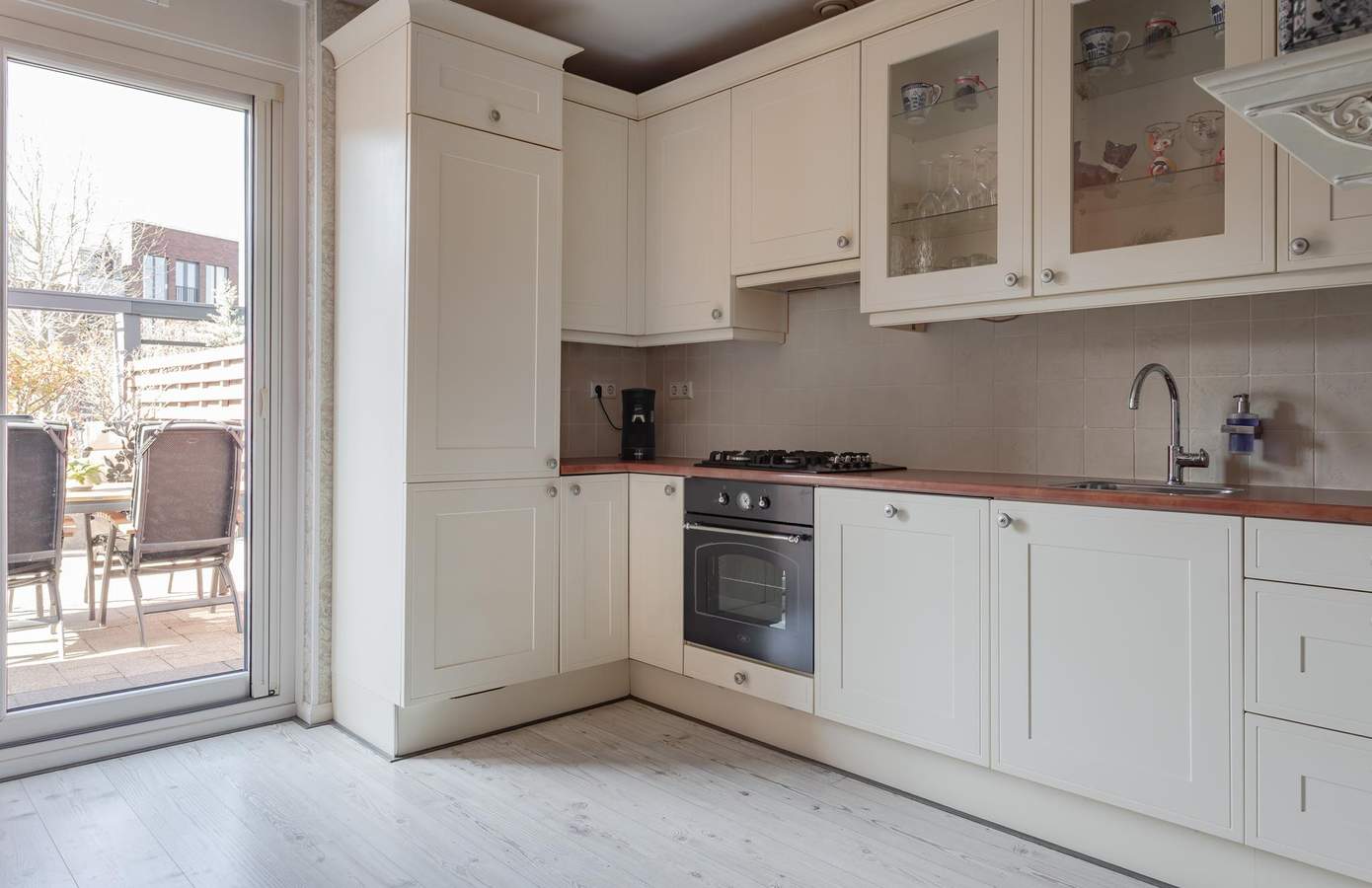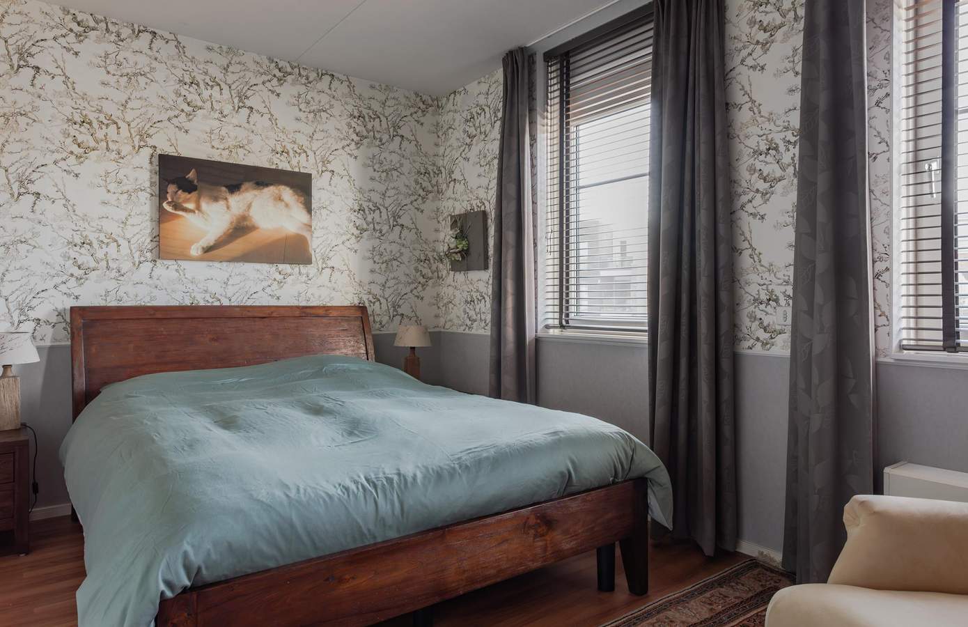 De woning is heerlijk licht dankzij de vele grote raampartijen, die een ruimtelijk en open gevoel creëren. Aan de voorzijde bevindt zich de entree en de keuken met diverse inbouwapparatuur. De praktische provisiekast onder de trap geeft extra bergruimte. Aan de waterzijde ligt de sfeervolle woonkamer, met ramen die doorlopen tot aan de vloer, waardoor u optimaal geniet van het uitzicht en de natuurlijke lichtinval. Voor alle deuren en ramen zijn horren geplaatst, wat zorgt voor een prettige ventilatie zonder insecten in uw woning. Op de eerste verdieping bevinden zich drie royale slaapkamers en een complete badkamer. De ruime tweede verdieping biedt talloze mogelijkheden: hier kunt u eenvoudig extra slaapkamers creëren of een royale werkruimte inrichten.