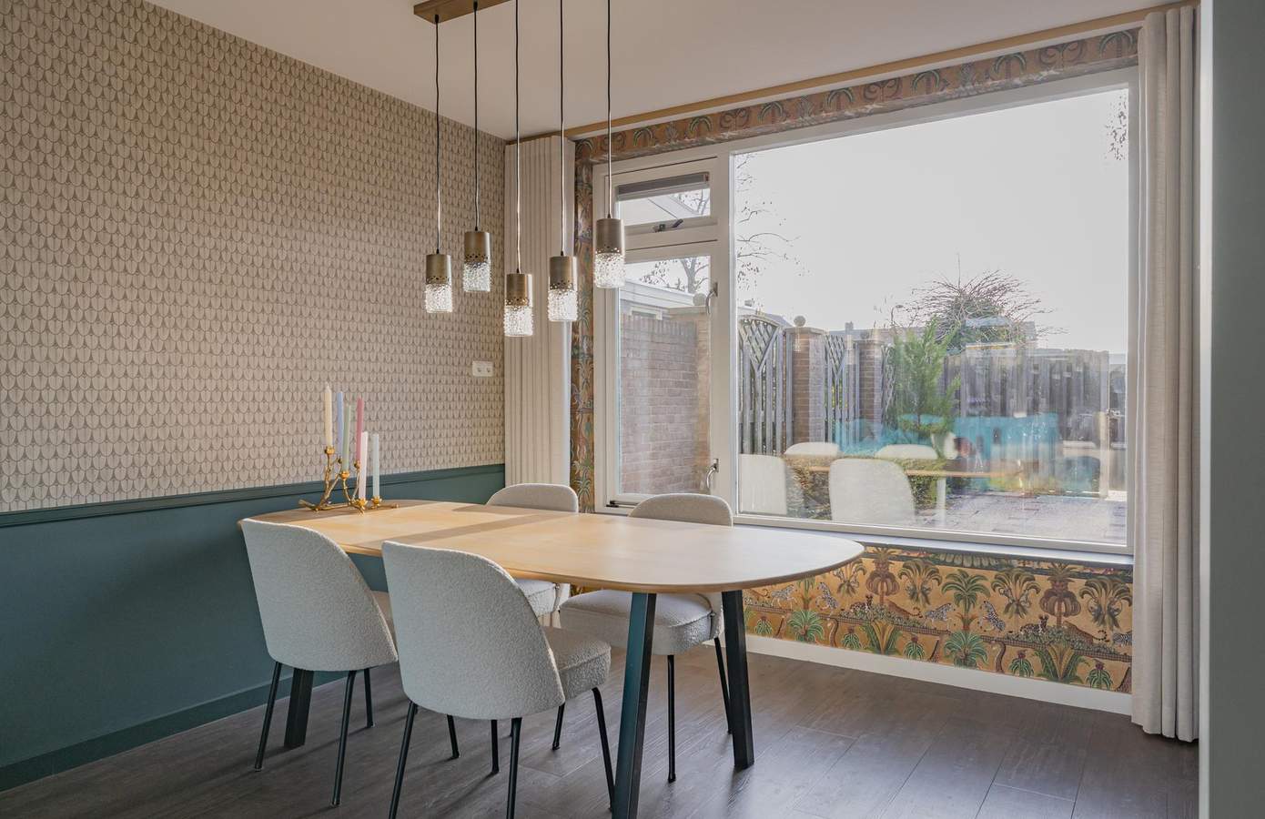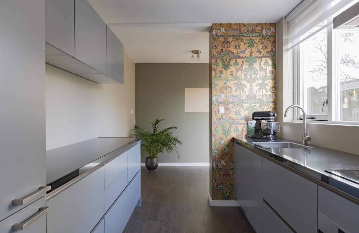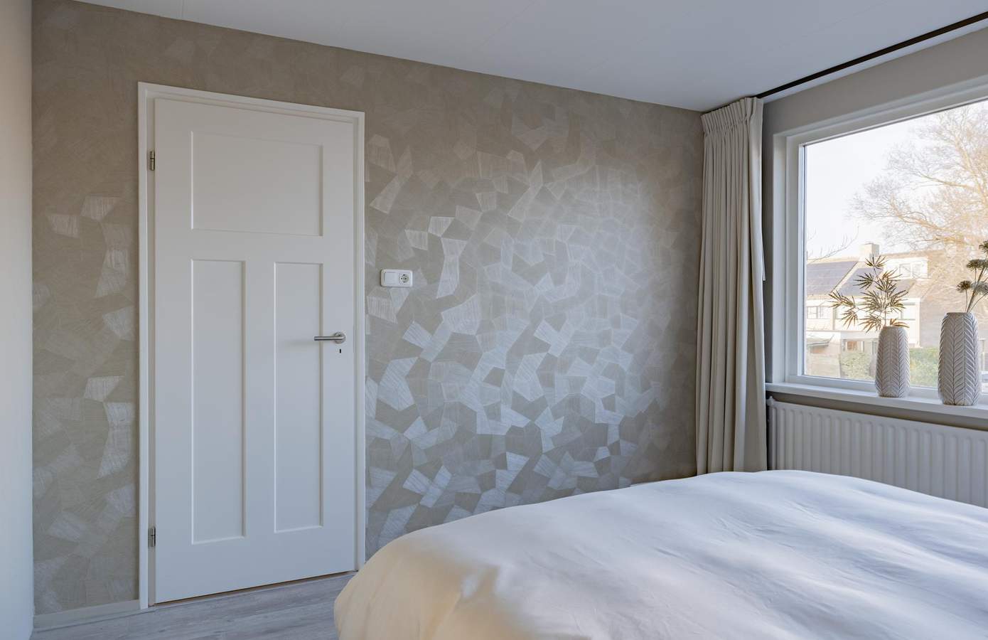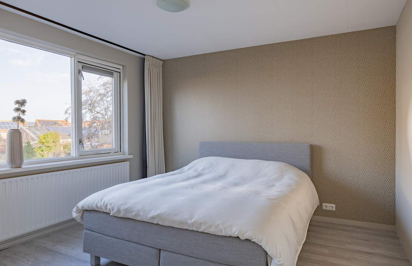 U komt binnen in de hal met de meterkast, trapopgang met trapkast en een moderne toiletruimte met modern wandcloset. Vanuit hier loopt u door naar de woonkamer, waar direct het licht en de rust opvallen. Grote raampartijen aan zowel de voor- als achterzijde zorgen voor een fijne lichtinval, terwijl de strak gestuukte wanden en plafonds de ruimte een rustige uitstraling geven. De PVC-vloer met vloerverwarming maakt het geheel comfortabel en ook praktisch. De halfopen keuken is in een rechte opstelling geplaatst en uitgevoerd met een granieten werkblad en diverse inbouwapparatuur. Zo vindt u hier onder andere: een vaatwasmachine, inductieplaat, afzuigkap, oven en koel-/vriescombinatie. Aansluitend bevindt zich de bijkeuken, een waardevolle toevoeging met extra bergruimte en een doorgang naar de achtertuin. Op de eerste verdieping zijn drie slaapkamers van goed formaat, allen netjes afgewerkt met een laminaatvloer en strakke wanden en plafonds. De badkamer is modern en compleet, met een ruime douche, wastafelmeubel, tweede toilet en vloerverwarming. Via een vaste trap bereikt u de tweede verdieping. Hier vindt u de voorzolder met cv-opstelling en wasmachineaansluiting en aangrenzend een royale vierde slaapkamer. Dankzij de knieschotten is er ook volop bergruimte aanwezig.