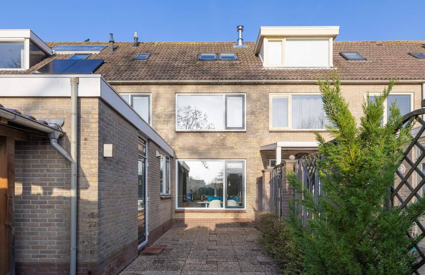 De achtertuin is een fijne, beschutte plek waar u volop van de zon kunt genieten, dankzij de ligging op het zuidwesten. De tuin is onderhoudsvriendelijk ingericht en heeft voldoende ruimte voor een comfortabele zithoek. Of u nu graag buiten eet, ontspant of kinderen laat spelen: dit is een tuin die prettig aanvoelt en makkelijk in gebruik is.