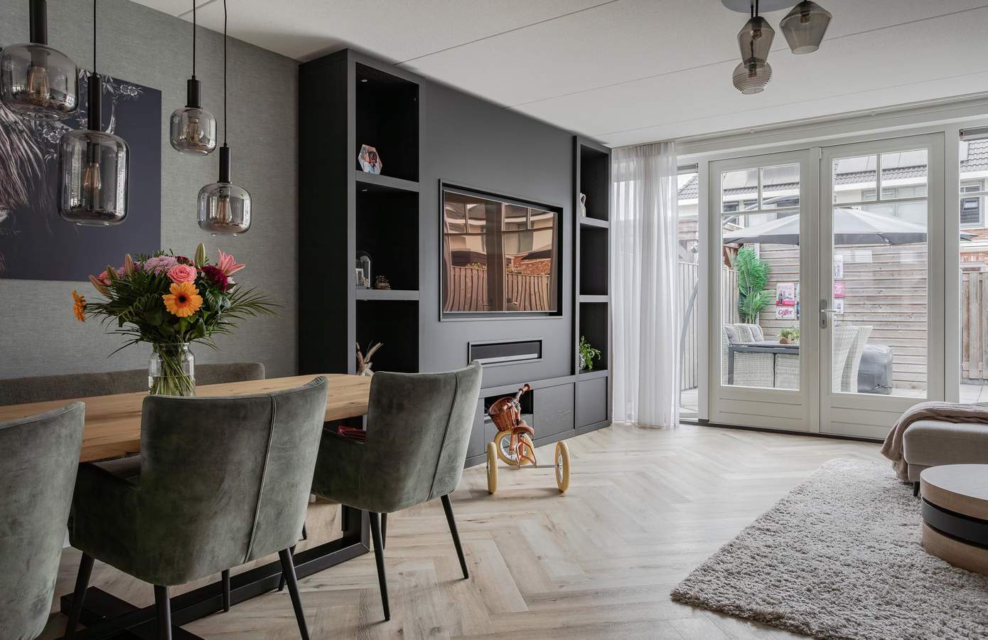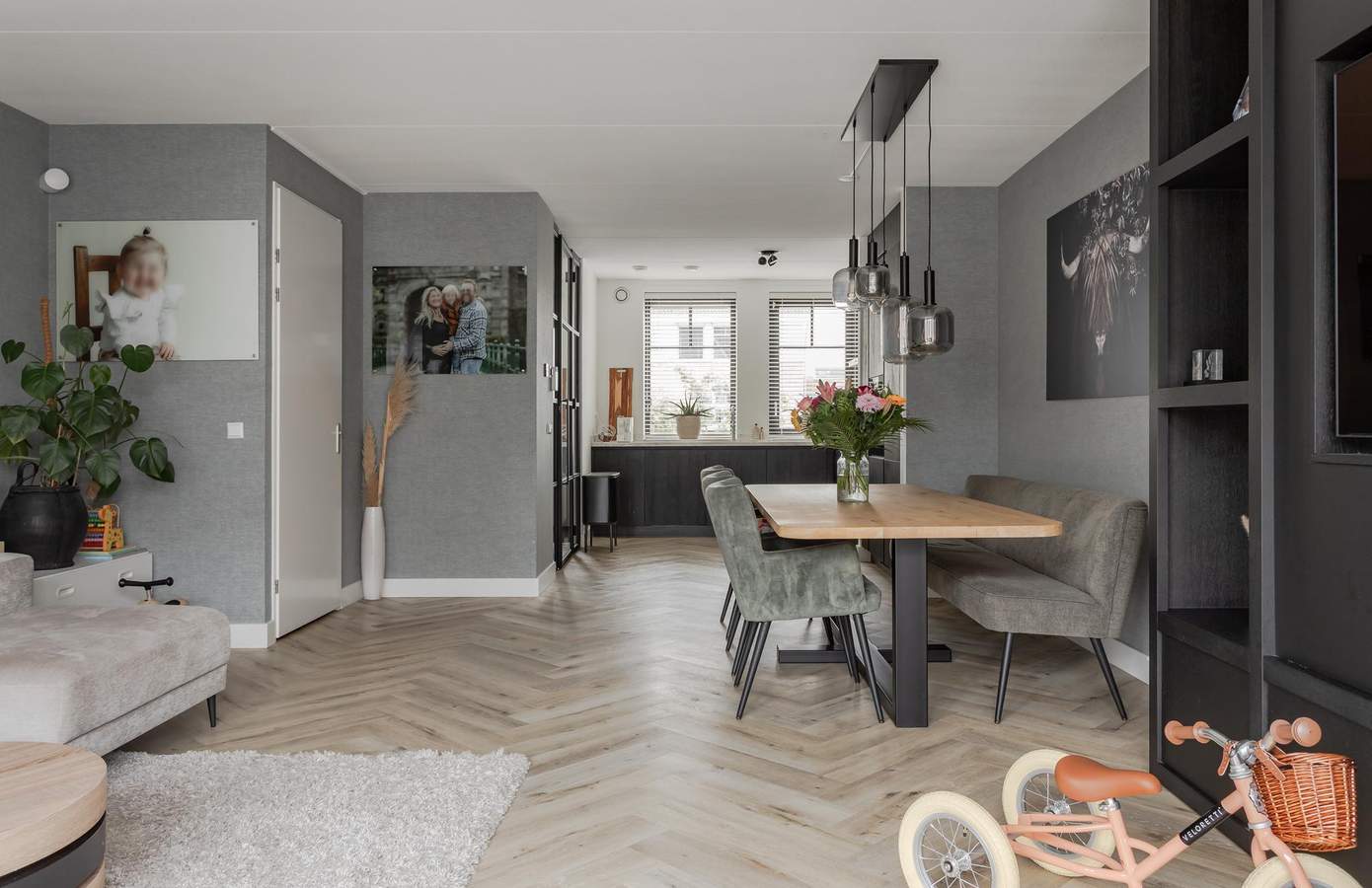 Vanuit de hal komt u via een prachtige stalen taatstsdeur binnen in de lichte keuken, die aansluit op de eetkamer en de woonkamer met toegang tot de achtertuin. De keuken is voorzien van een natuurstenen blad en diverse apparatuur. De gehele begane grond is afgewerkt met een stijlvolle visgraat PVC vloer en is voorzien van vloerverwarming, waardoor het hier altijd comfortabel aanvoelt. Aan de achterzijde van de woning zorgen openslaande deuren voor een aangename lichtinval en een directe verbinding met de achtertuin. In de woonkamer staat een fraaie op maatgemaakte kast waar de tv stijlvol in wordt opgenomen, een fraai stuk meubelmaatwerk. Op de eerste verdieping zijn twee slaapkamers en de badkamer. De slaapkamer aan de achterzijde is zeer ruim en kan eenvoudig worden omgebouwd tot twee kamers. De badkamer heeft een inloopdouche, een schitterend op maat gemaakt wastafelmeubel, designradiator, vloerverwarming en een tweede toilet. Op de tweede verdieping is een derde zeer ruime slaapkamer met kastenwand en nog een multifunctionele ruimte die momenteel in gebruik is als werkplek. Hier vindt u ook de wasapparatuur en de cv-opstelling. Via een luik op de voorzolder komt u met een vlizotrap op de bergzolder. Kortom, een instapklare woning met een hoogwaardig afwerkingsniveau waar u zich zeker thuis voelt.