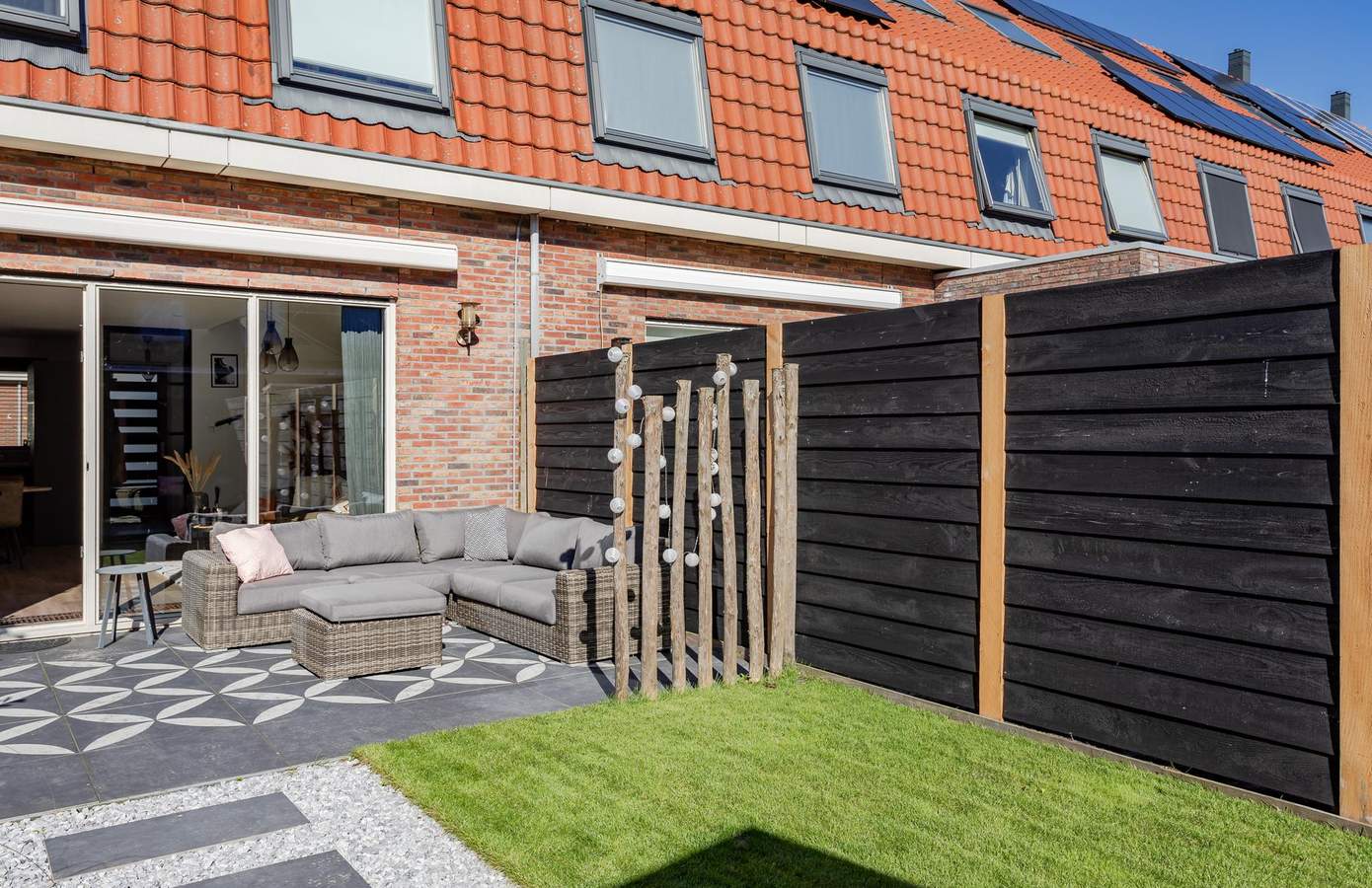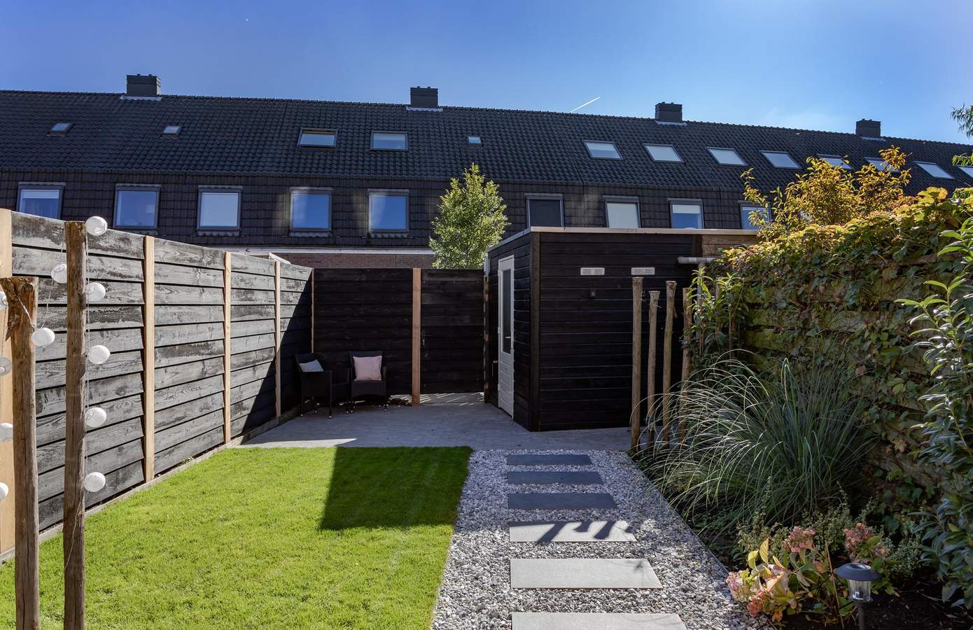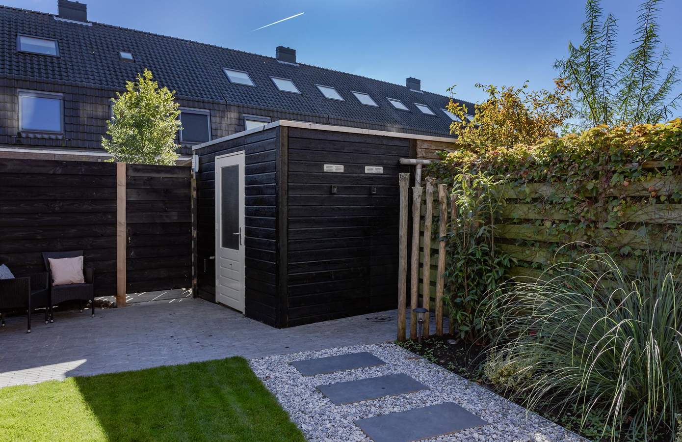 Vanuit de woonkamer betreedt u de sfeervolle achtertuin, die met zorg en aandacht is onderhouden. De tuin wordt omheind door een gepotdekselde schutting en berging. Met een combinatie van gras en bloemperken, én de gunstige ligging op het zuidoosten, geniet u hier de hele dag van de zon. De tuin is tevens bereikbaar via een achterom, waardoor de vrijstaande berging uitstekend te gebruiken is voor het stallen van uw fietsen en het opbergen van al uw tuinspullen.