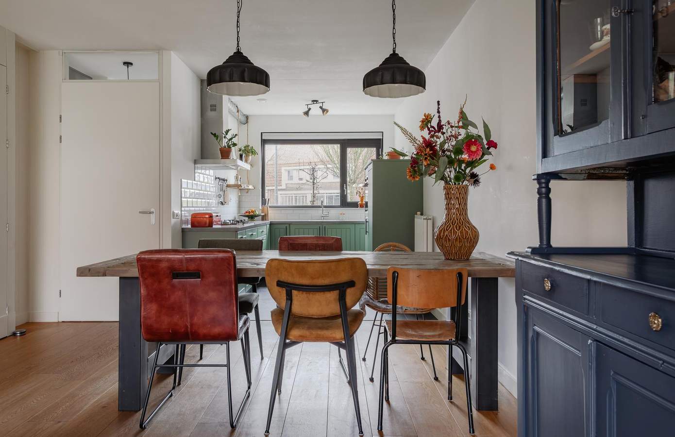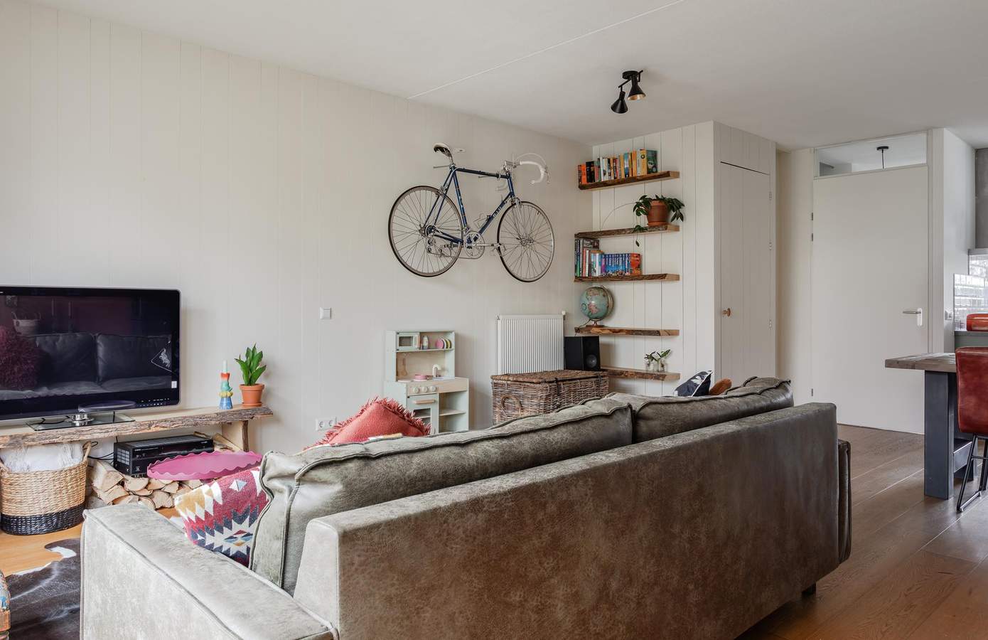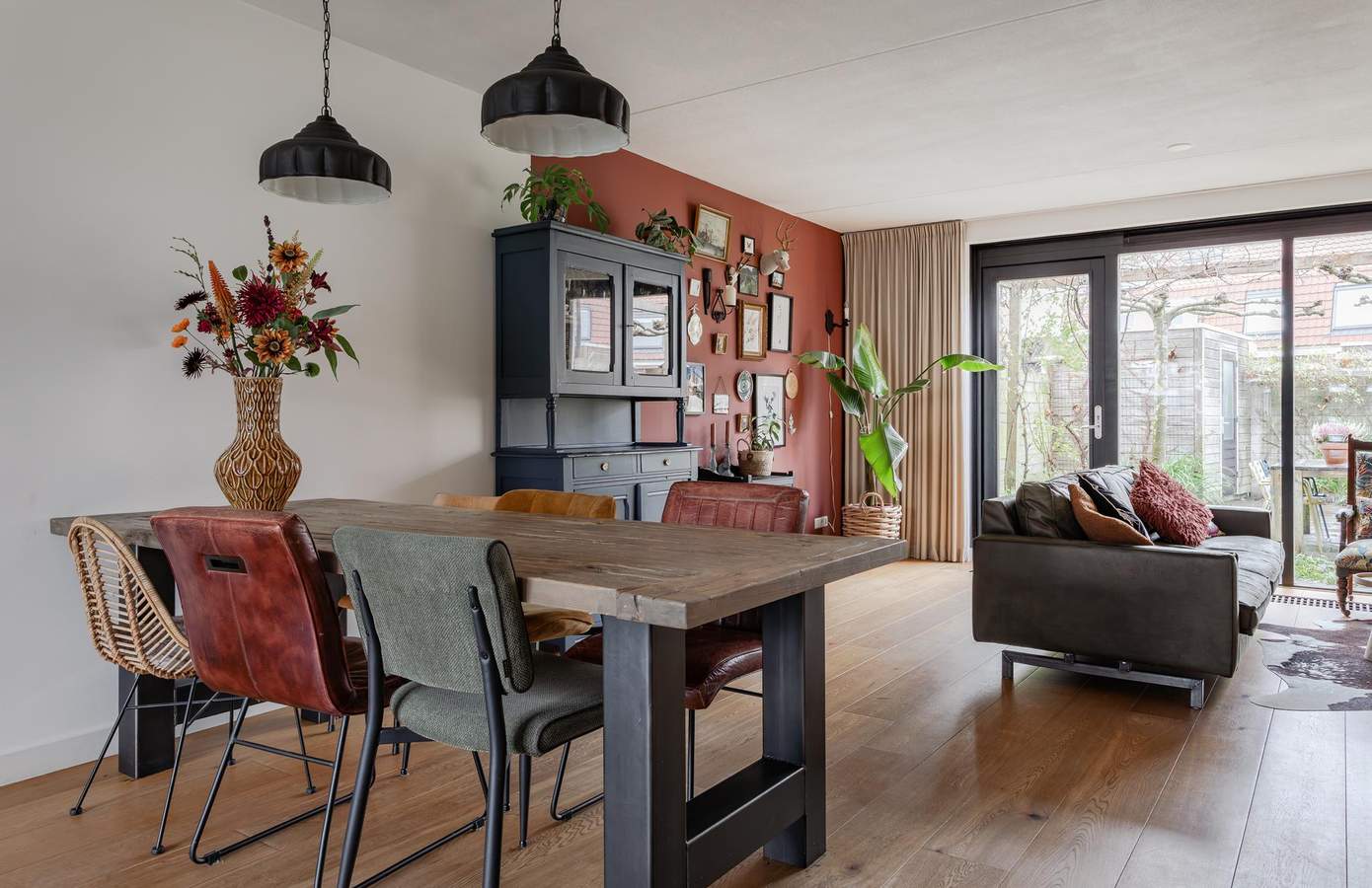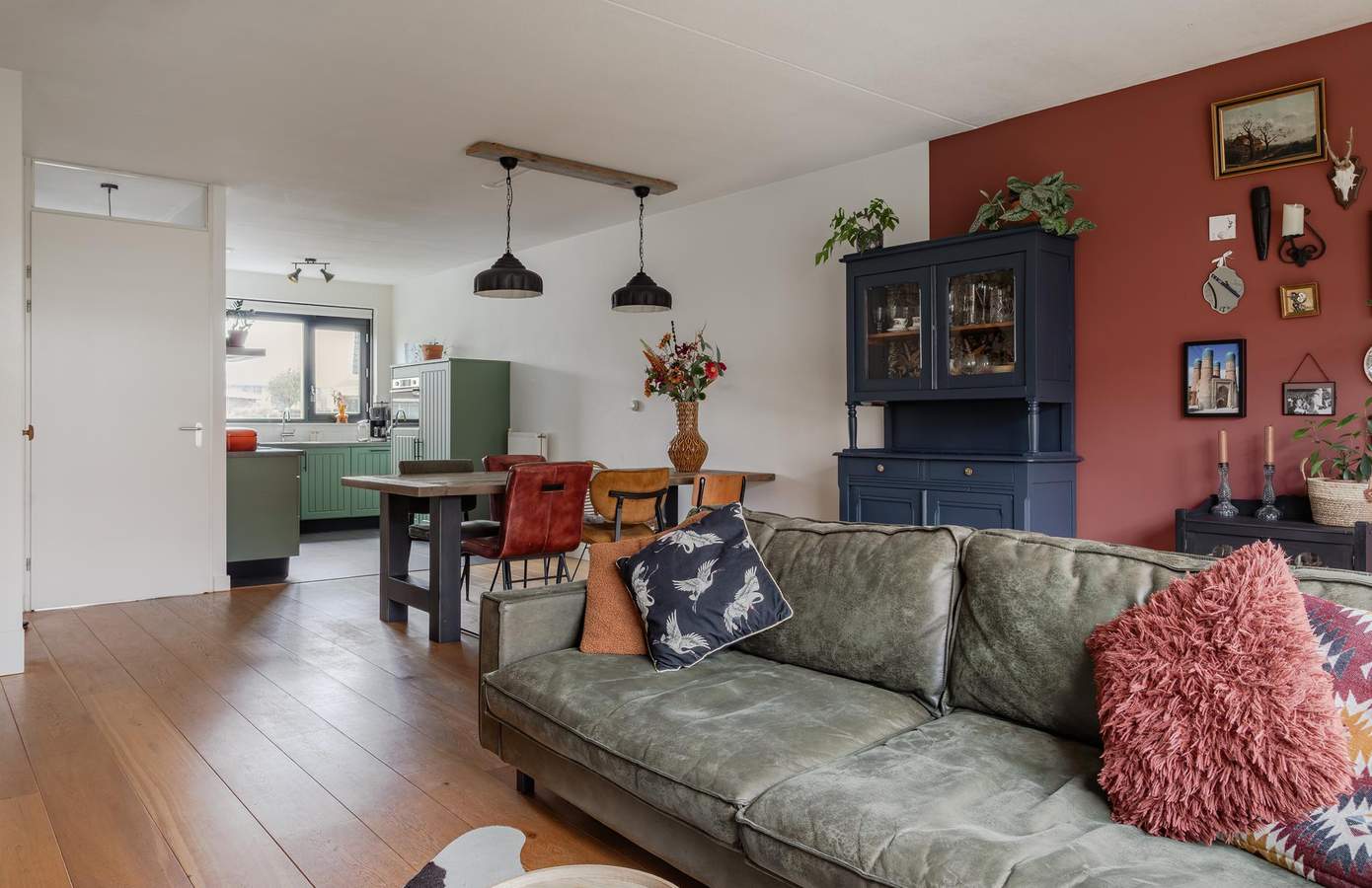 Via de voortuin betreedt u de woning en komt u in de hal, waar u toegang heeft tot de meterkast, het toilet en de woonkamer. Aan de voorzijde van de woning bevindt zich de keuken, uitgevoerd met een stenen vloer en groene accenten. De keuken beschikt over diverse vernieuwde inbouwapparatuur, waaronder een 5-pits gasfornuis met wokbrander, een vriezer (2024), vaatwasser (2023), combi-oven (2024) en een koelkast. De woonkamer ligt aan de achterzijde en wordt gekenmerkt door een grote glazen pui, die zorgt voor veel daglicht én een directe verbinding met de achtertuin. Eén wand is stijlvol bekleed met houten panelen, dit geeft de woonkamer een warme uitstraling. De woning is aan de achterzijde vergroot met een uitgebouw van 2,5 meter. Op de eerste verdieping geeft de overloop toegang tot de drie slaapkamers en de badkamer. De kamers aan de achterzijde hebben Velux-dakramen met geïntegreerde verduisterende gordijnen en plissé in één. De badkamer heeft een inloopdouche met zowel een stortdouche als handdouche, een wastafel en toilet. Via de vaste trap bereikt u de zolder. Deze open ruimte kunt u benutten als extra slaapkamer, werkplek, hobbyruimte of royale bergruimte. Ook hier zorgen Velux-dakramen voor een prettige lichtinval. Daarnaast vindt u hier de cv-opstelling.