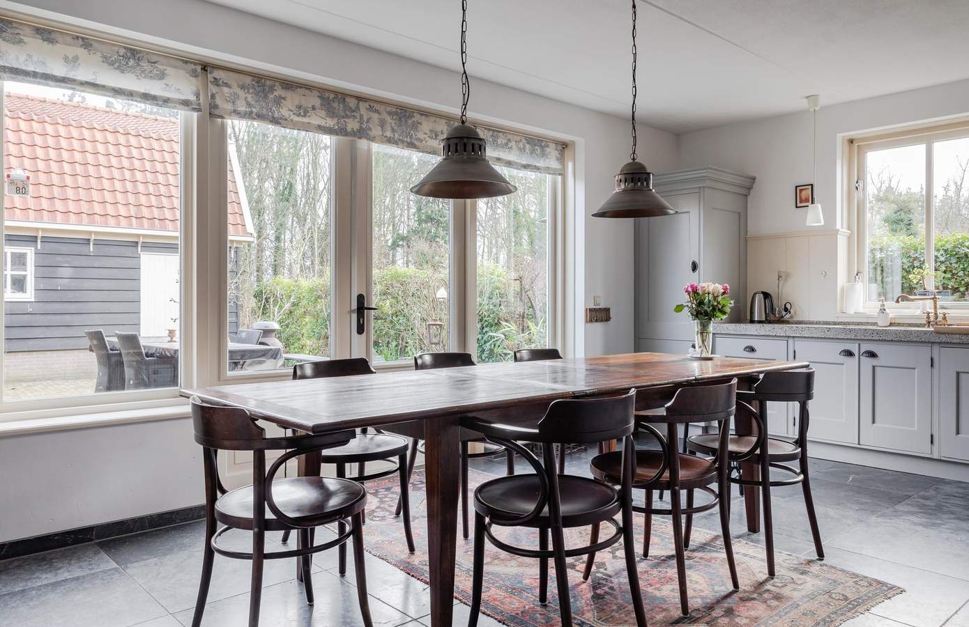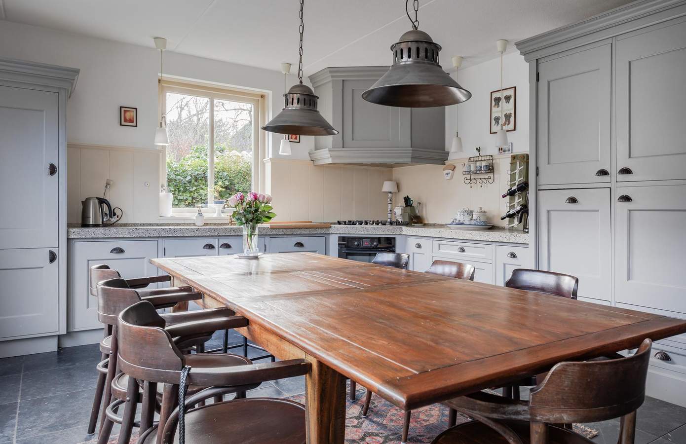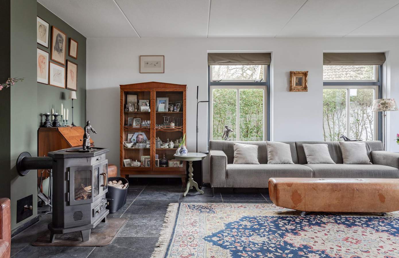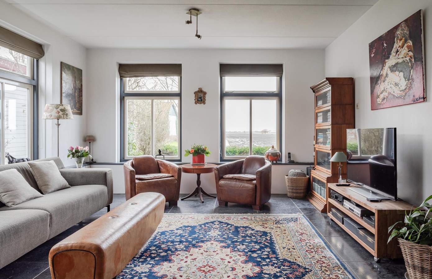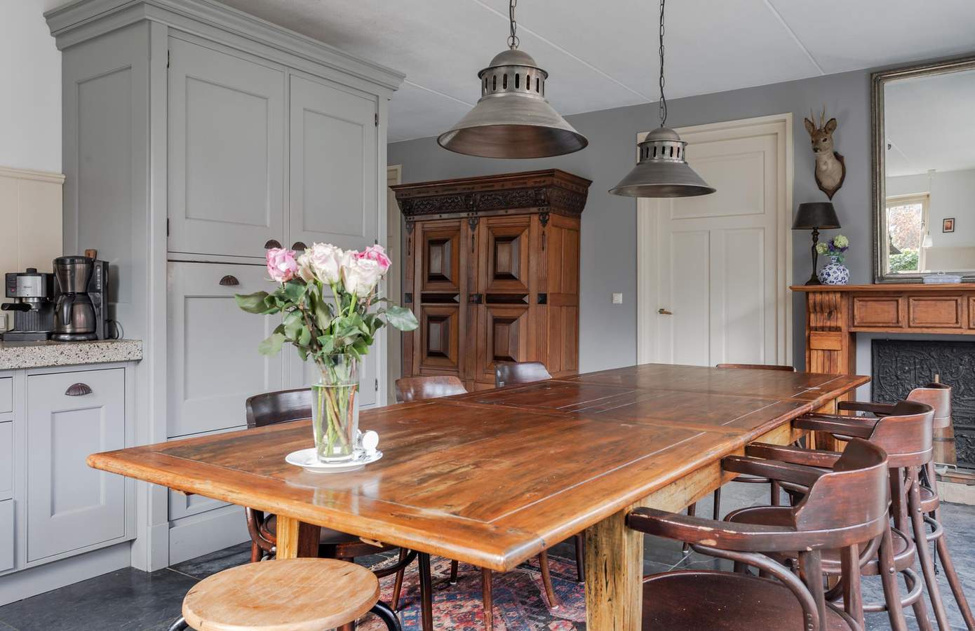 Bij binnenkomst komt u in een ontvangsthal met de meterkast en de trap naar de eerste verdieping. Vanuit de hal heeft u toegang tot de ruime, lichte en sfeervolle woonkamer, die dankzij de grote raampartijen een heerlijk vrij uitzicht over de landerijen biedt. Centraal in de woonkamer staat een sfeervolle haard (houtkachel) welke behaaglijke warmte en gezelligheid geeft. De vloer is afgewerkt met Turks natuursteen en voorzien van vloerverwarming. Aan de voorzijde bevindt zich ook een werk-/studeerkamer. Ideaal wanneer u ruimte nodig heeft voor thuiswerken of studerende kinderen. De woonkamer loopt over in de royale woonkeuken, die voorzien is van een landelijke keuken met schouw en openslaande deuren naar het terras. In de woonkeuken is voldoende ruimte voor een grote eettafel wat het tot een sfeervolle plek maakt. Grenzend aan de keuken is de bijkeuken, deze is uitgerust met een handige boerendeur (in twee te delen) naar de achtertuin. In de bijkeuken is de garderobe, het ruime toilet, plus een aanrechtblad en de wasmachine-aansluiting. Vanuit de bijkeuken is toegang tot de kelder. De indeling biedt niet alleen comfort en functionaliteit, maar ook een fijne balans tussen open leefruimtes en privacy. Op de eerste verdieping zijn in totaal drie ruime slaapkamers en de badkamer. De badkamer is van alle gemakken voorzien, zo is er een ruime douche, een ligbad en een stijlvol badkamermeubel met een dubbele wastafel en het toilet. Aan de voorzijde van de woning zijn twee slaapkamers, waarvan één met een inloopkast. De slaapkamer aan de achterzijde is zeer ruim en indien gewenst zijn hier twee slaapkamers van te maken. Op de overloop heeft u ook toegang tot een tweede inloopkast. Via een vaste trap bereikt u de zolderverdieping, waar een slaapkamer en veel bergruimte aanwezig is. Desgewenst kan hier een vijfde slaapkamer worden gerealiseerd.