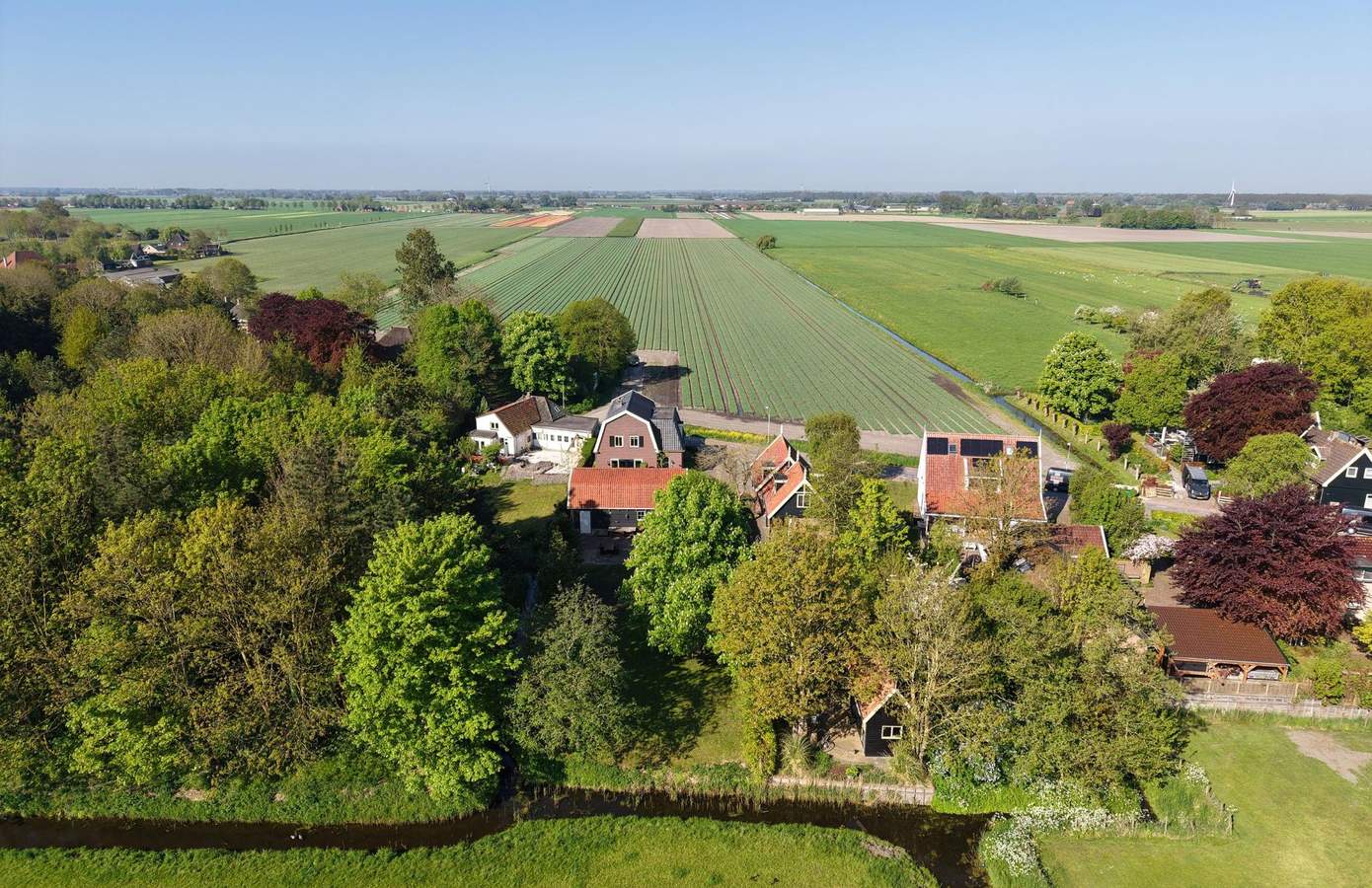 Dit alles is gelegen in het dorp Aartswoud, een landelijke omgeving waar rust en ruimte centraal staan, terwijl uitvalswegen naar de Randstad eenvoudig bereikbaar zijn. Tegenwoordig zoeken mensen meer dan ooit naar plekken waar stilte heerst en de hectiek van het dagelijks leven ver weg lijkt. Aartswoud biedt precies dat, met een rijke historie, uitgestrekte weilanden en schitterende vergezichten. Het dorp heeft een actief en hecht verenigingsleven, een kleine basisschool (een kindcentrum bevindt zich in Hoogwoud), een actieve voetbalvereniging, een dorpscafe en de kerk. Jaarlijkse evenementen zoals Jazz in Aartswoud en Kerstfeer in Aartswoud trekken veel bezoekers. Voor dagelijkse boodschappen kunt u terecht in Hoogwoud, terwijl de winkelcentra in Spanbroek en Nieuwe Niedorp eveneens dichtbij zijn. De nabijgelegen A7 zorgt ervoor dat steden als Hoorn en Amsterdam goed bereikbaar zijn. Ook Alkmaar ligt op 25 minuten met de auto. Natuurliefhebbers kunnen genieten van het fraaie Westfriese land met prachtige wandel- en fietsroutes. Aartswoud combineert landelijke rust en historische charme met moderne voorzieningen en uitstekende bereikbaarheid, waardoor het een ideale plek is om te wonen.