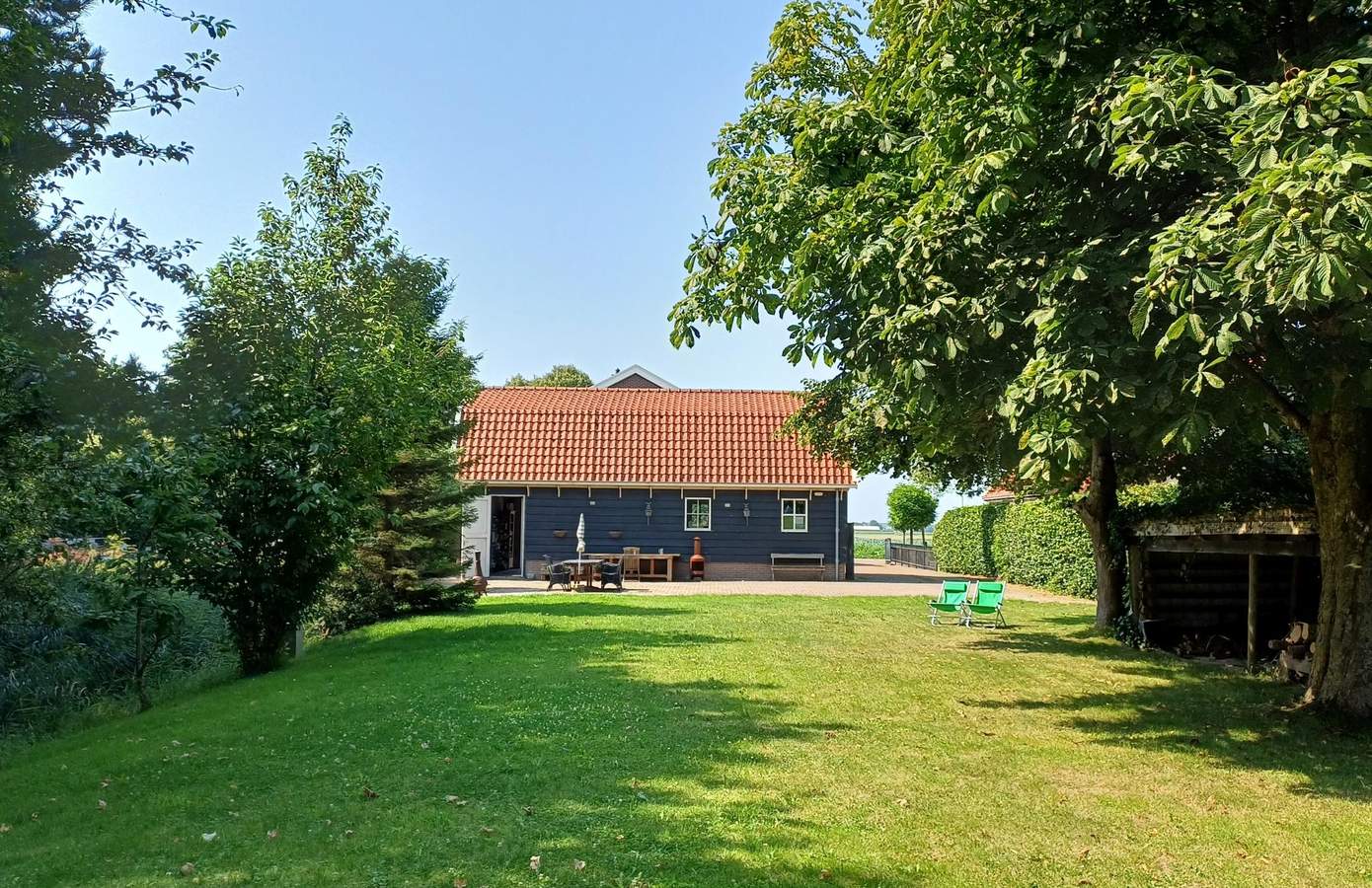U betreedt het perceel via de oprit waar plaats is om meerdere auto’s te parkeren. Het geheel wordt afgesloten met een stijlvol hek, dit zorgt voor extra privacy en veiligheid. Direct grenzend aan de woonkeuken bevindt zich een beschut terras gelegen op het zuiden. Perfect voor lange zomeravonden, fraai afgewerkt met hoogwaardige bestrating en een sierlijke combinatie van groen en beplanting. Achter de woning staat de in 2000 gebouwde schuur annex garage. Hier heeft u de mogelijkheid om uw auto droog te parkeren en daarnaast is er veel opbergruimte. Dit is ook een fijne ruimte om hobby’s te beoefenen of te klussen. Er is krachtstroom aanwezig, de begane grond is voorzien van een betonvloer, en de verdieping (houten vloer) is bereikbaar via een steektrap. Aan de achterzijde van de schuur vindt u een uitgestrekt gazon, dat aan beide zijden wordt begrensd door volwassen bomen en een watergang, wat het gevoel van rust en ruimte extra versterkt. Hier is ook een tweede ruim terras waar u volop geniet van deze landelijke plek.