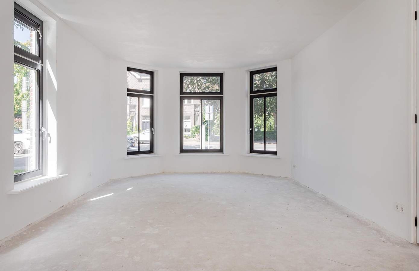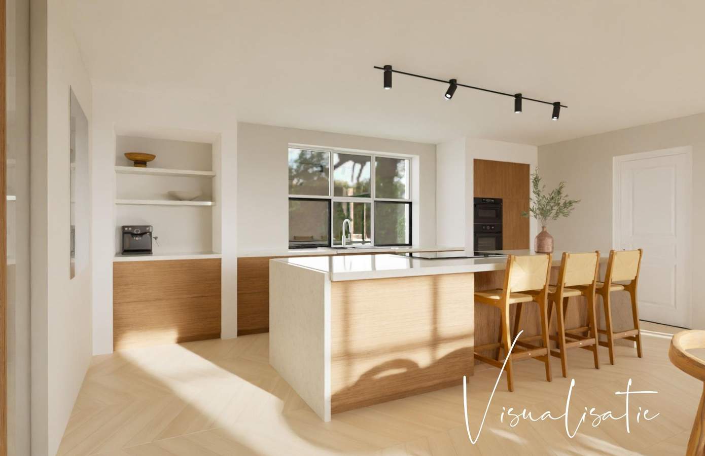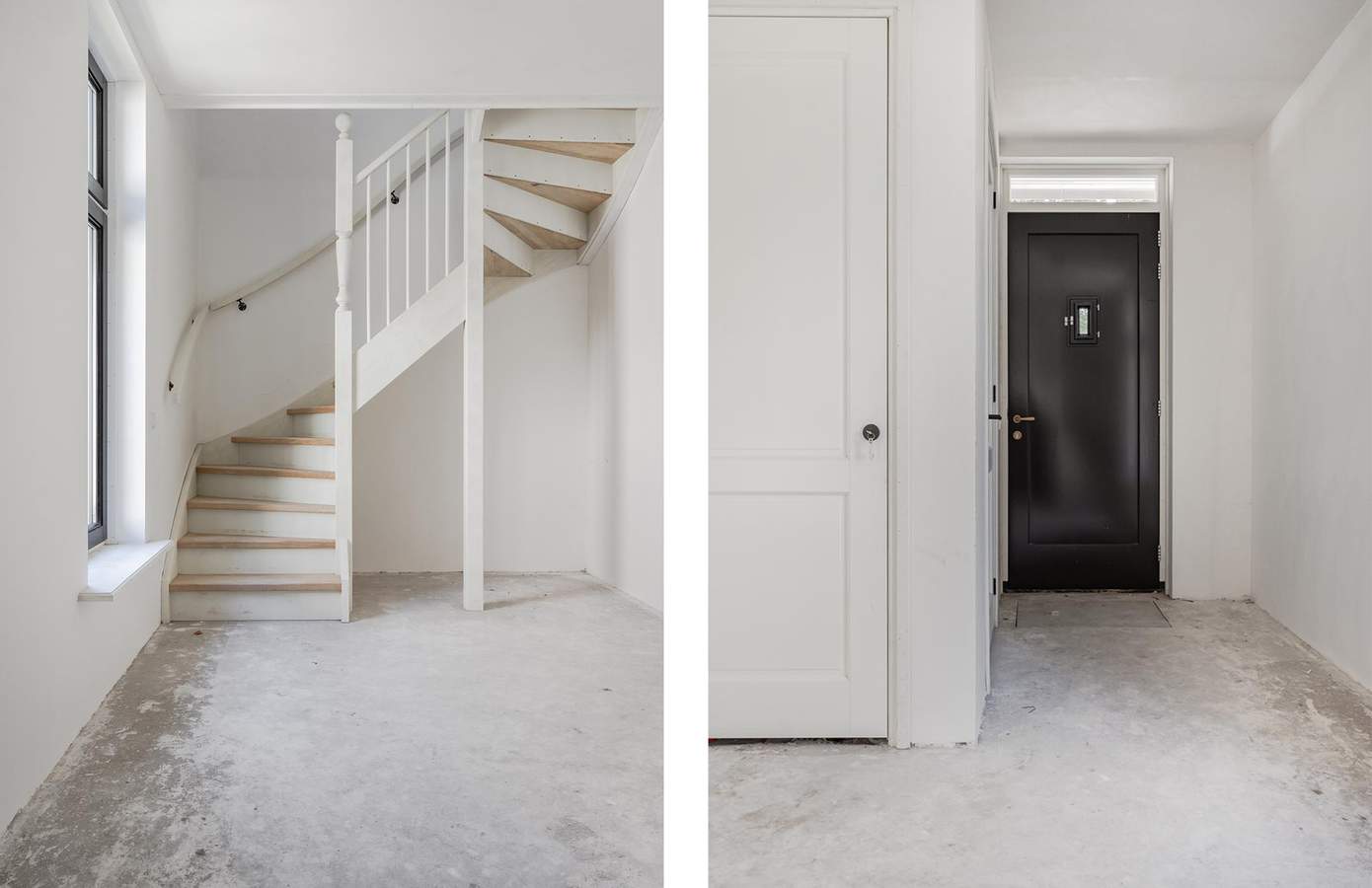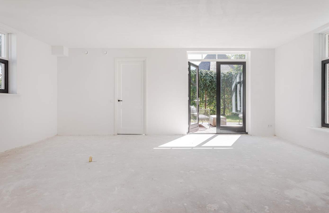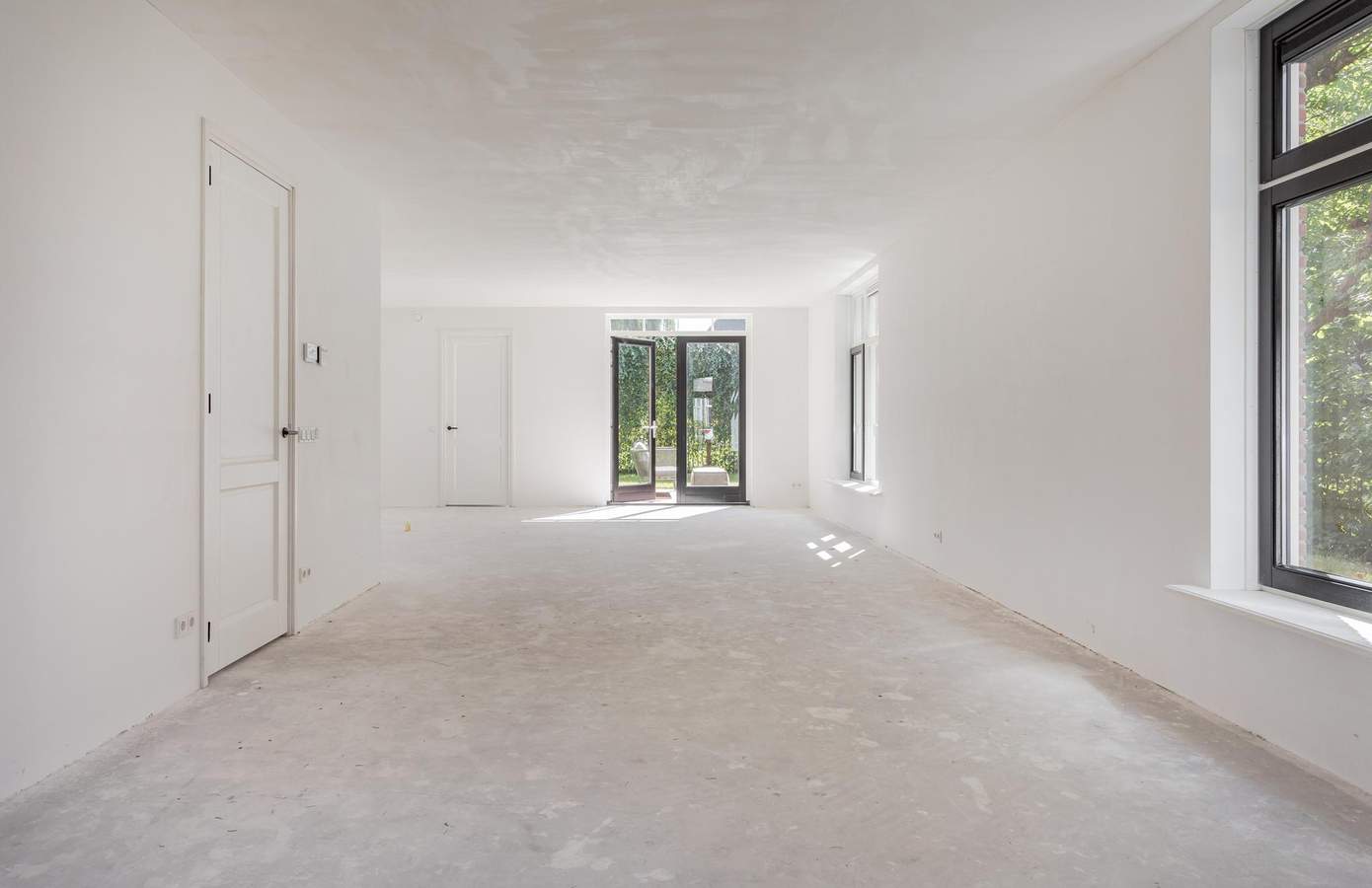 Achter de royale voordeur met karakteristieke ringklopper wacht een ruime hal, waarin de indrukwekkende eikenhouten trap direct de toon zet. Vanuit hier betreedt u de L-vormige living met een erker aan de straatkant, die zorgt voor volop lichtinval. Aan de achterzijde ligt de plek voor een royale woonkeuken met aansluitingen voor een kookeiland. De openslaande tuindeuren maken de verbinding met het terras en de tuin.