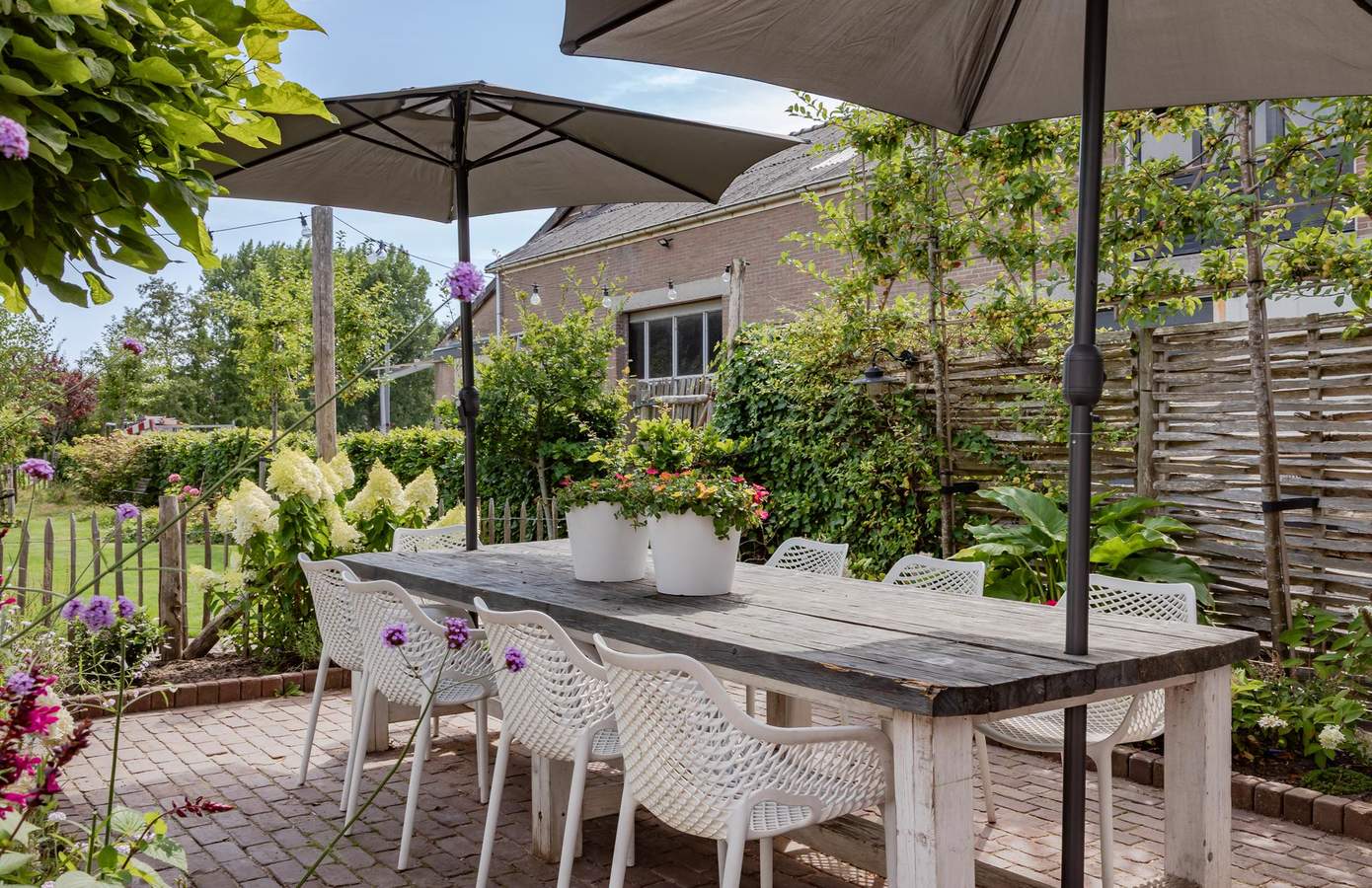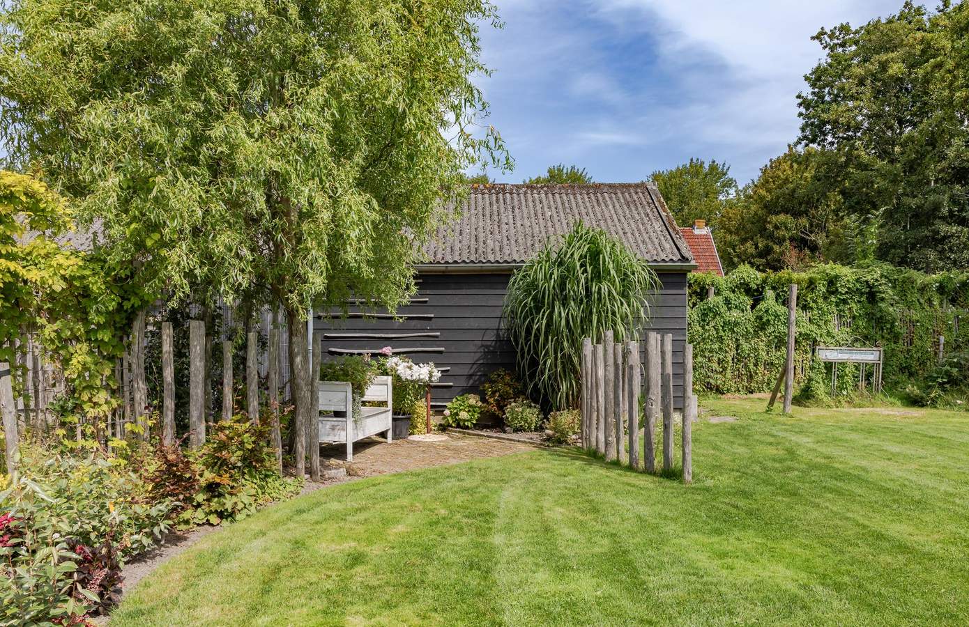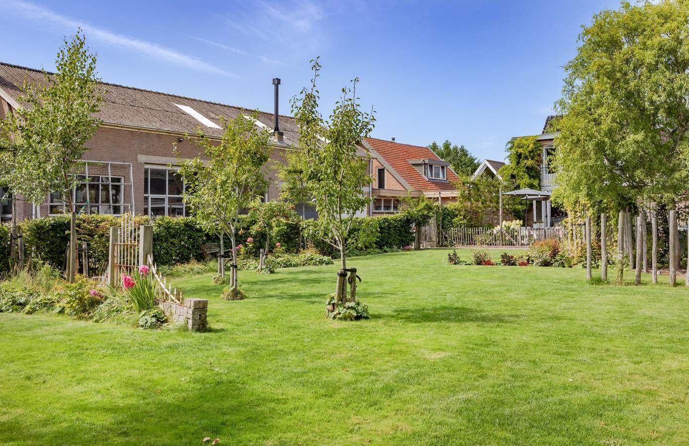 De tuin is een groen paradijs voor tuinliefhebbers en een veilige speelplek voor kinderen. Op het terras aan de achterkant van de woning, kunt u van ’s ochtends vroeg tot ’s avonds laat genieten van buiten eten, borrels en ontspannen momenten. De tuin is aangelegd met een combinatie van strak gazon, bloeiende borders en volgroeide beplanting die elk seizoen een ander kleurenspel biedt. Hier ervaart u de luxe van ruimte en rust, midden in het dorp.