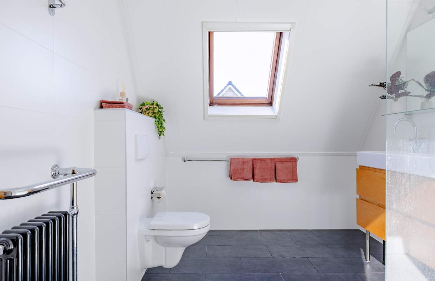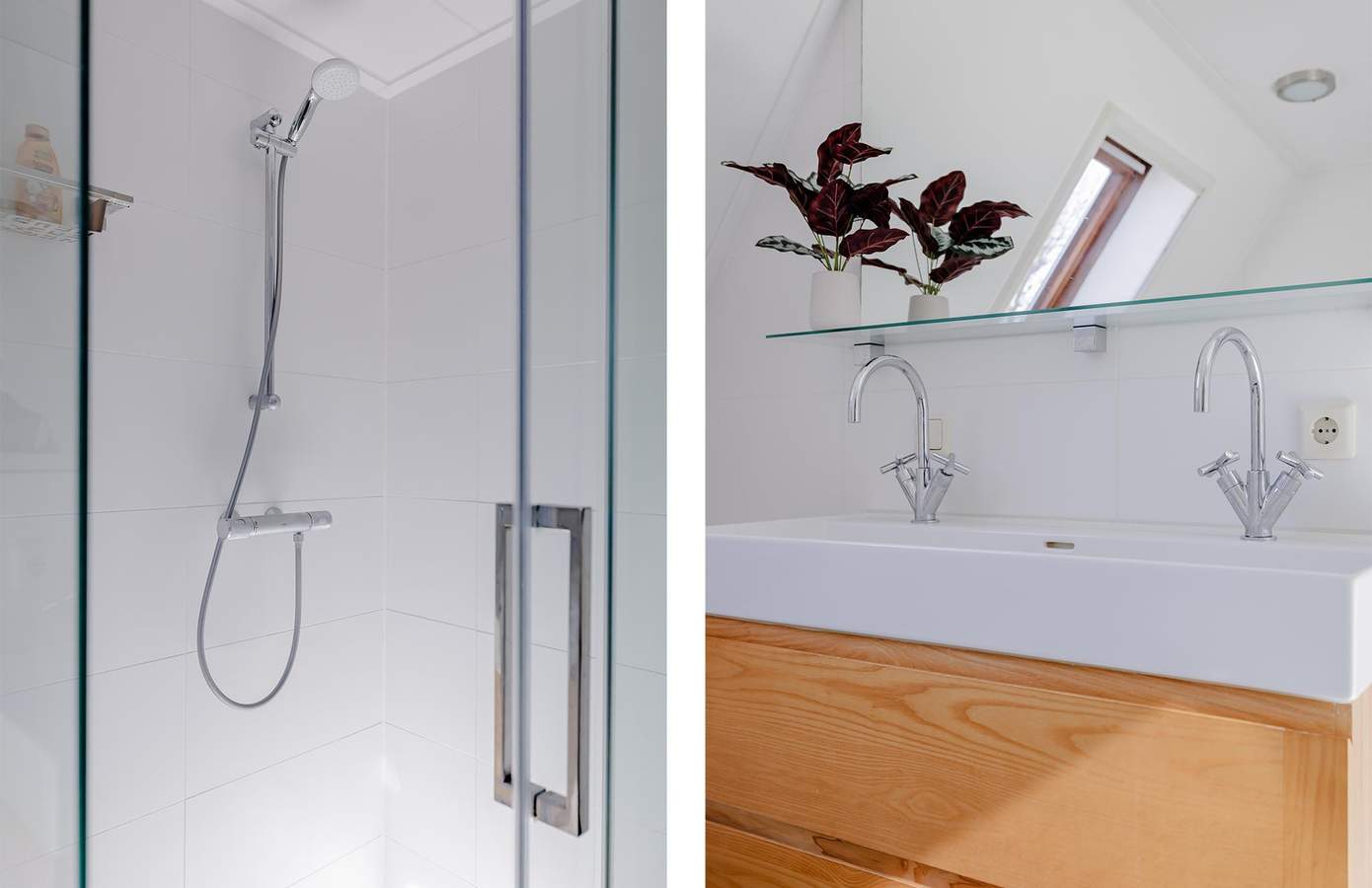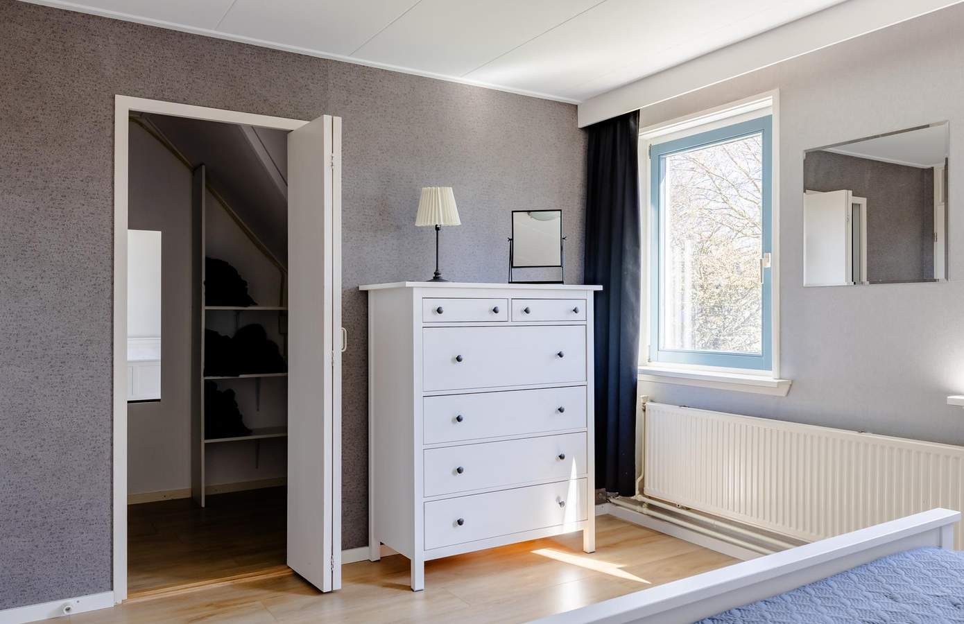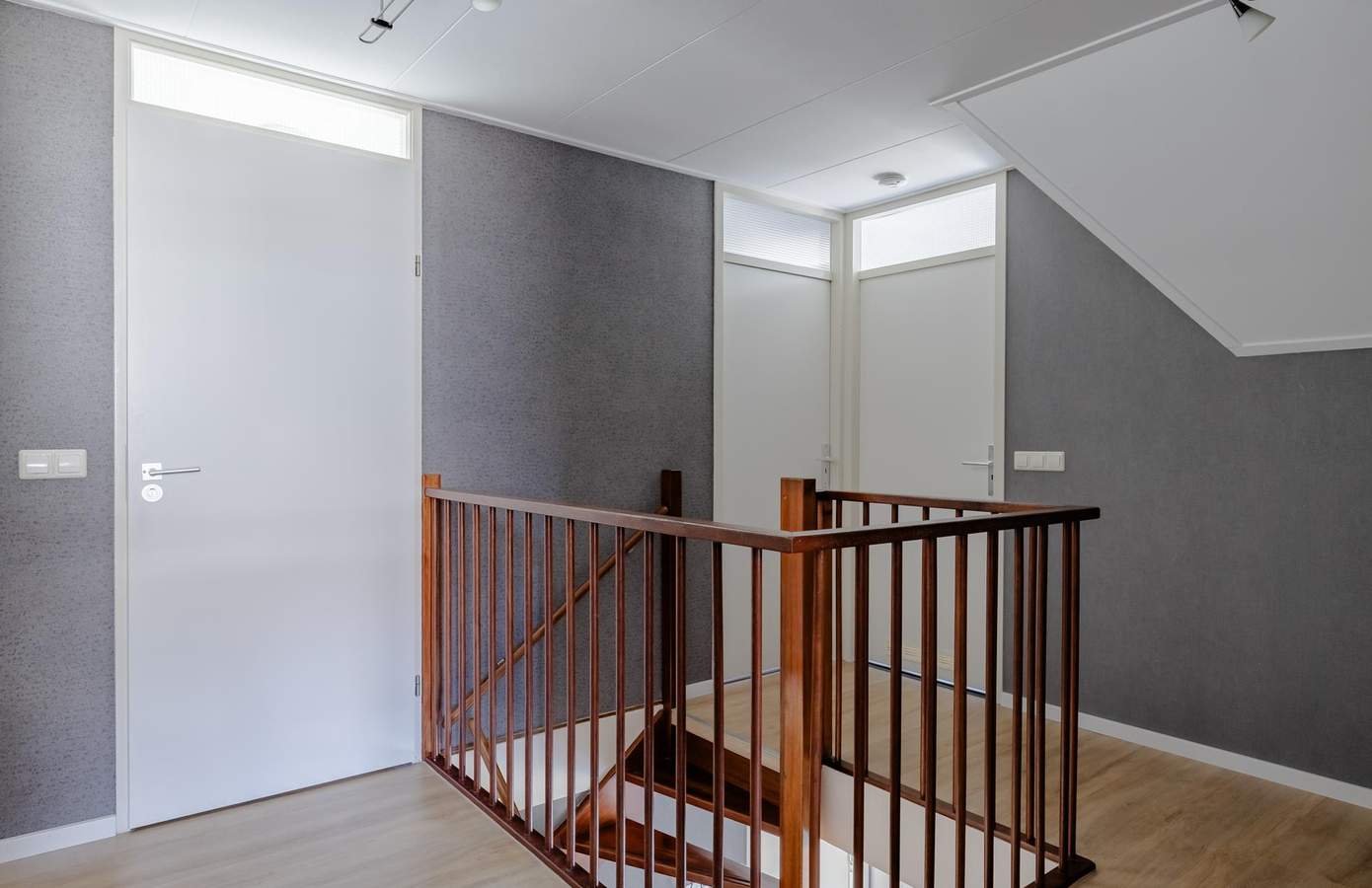 Op de eerste verdieping treft u vier slaapkamers, allen voorzien van draai-kiepramen met hor en een prettige lichtinval. De master bedroom beschikt over een walk in closet. Daarnaast beschikt deze verdieping over een praktische wasruimte met vaste wasrekken, ideaal voor het drogen van uw was en het creëren van extra gemak in het dagelijks gebruik. De badkamer is in 2020 vernieuwd en heeft een ruime douche, toilet en een dubbele wastafel. De zolder is bereikbaar via een uitschuifbare trap en biedt extra bergruimte.
